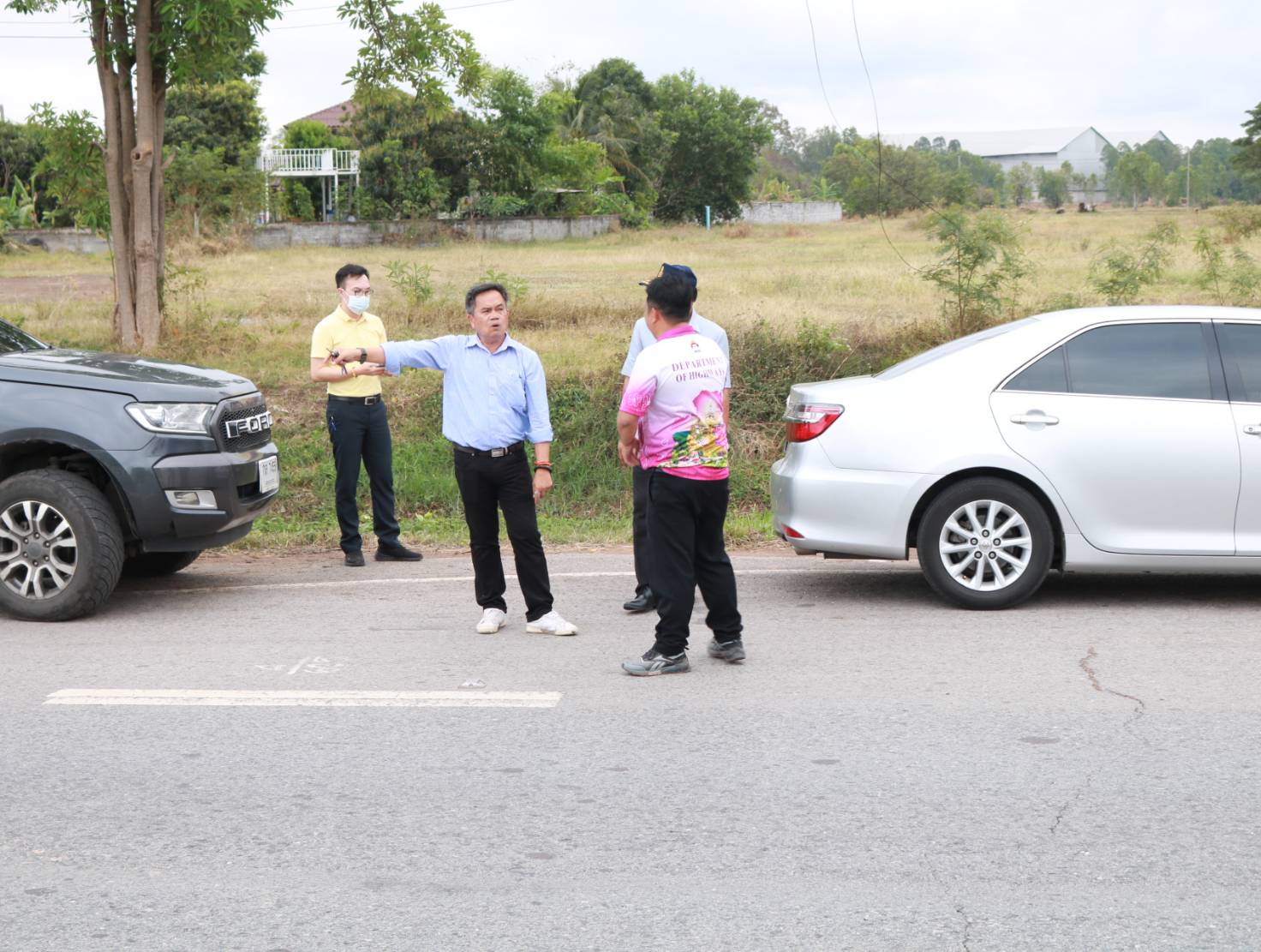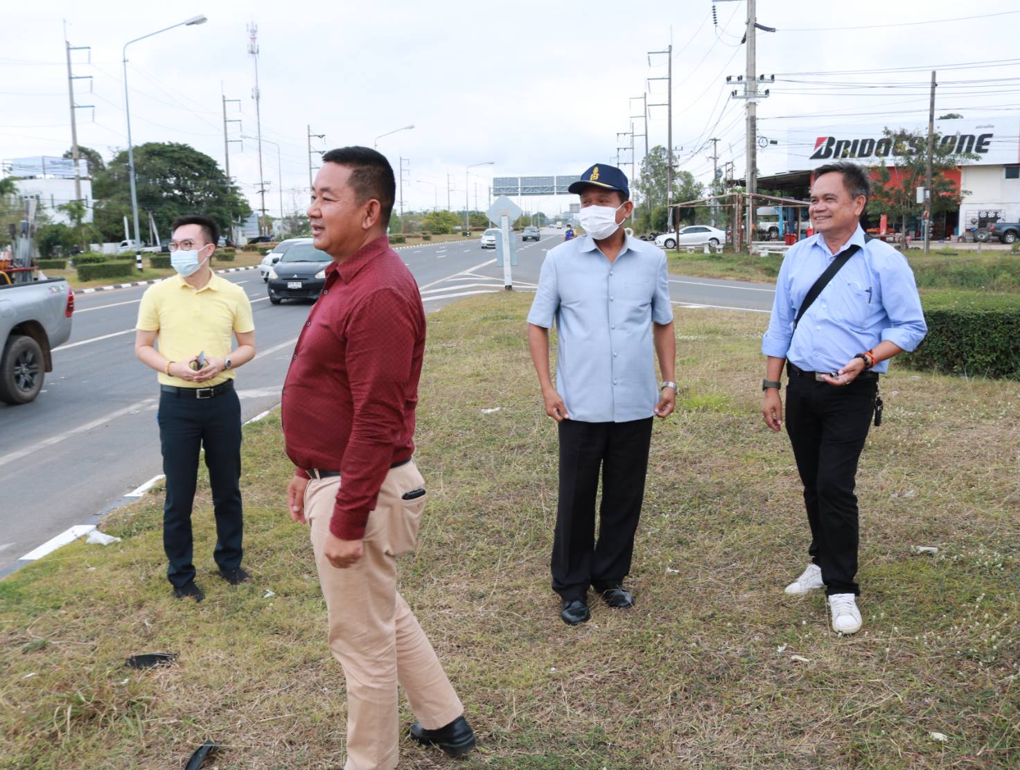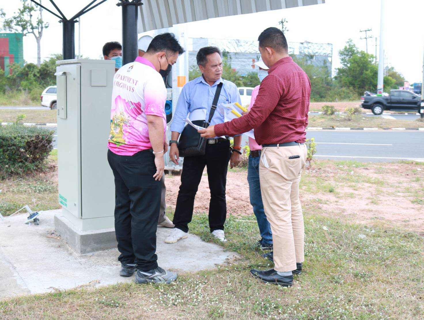"ร่วมตรวจงานก่อสร้าง งวดที่ 2 (งวดสุดท้าย) งานจ้างเหมาโครงการเพิ่มประสิทธิภาพและพัฒนาระบบจราจรเพื่อเพิ่มความปลอดภัยทางถนนจังหวัดร้อยเอ็ด (งานจังหวัด) ทล.214 ตอน ลำชี – ร้อยเอ็ด ที่กม.42+591 (แยกบ้านบัว)"