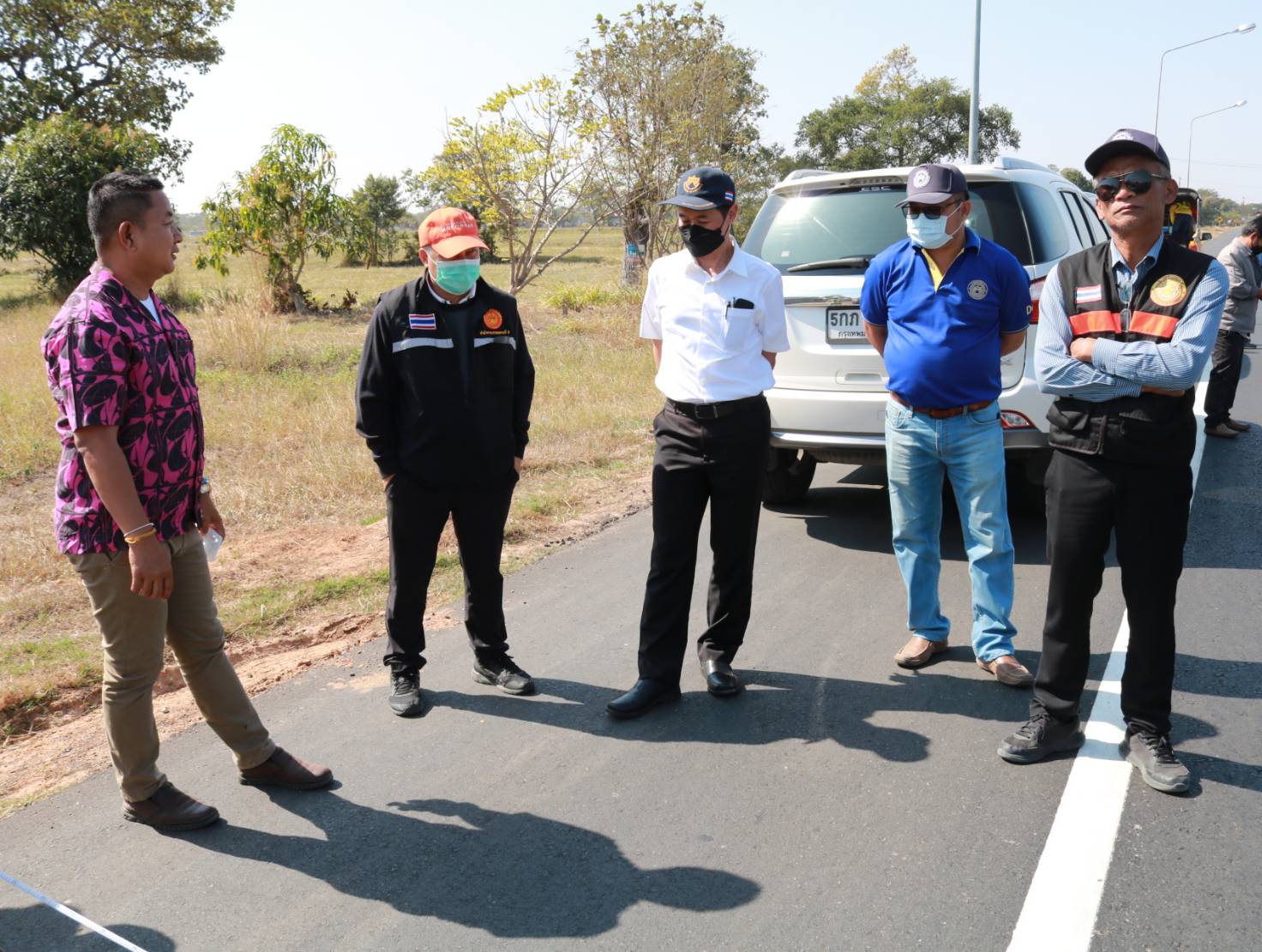 นายชาญพินิจ พินิจศักดิ์ รองผู้อำนวยการสำนักงานทางหลวงที่ 8 (มหาสารคาม) ประธานกรรมการตรวจรับพัสดุ ,นายมงคล แสนวงษา ผู้อำนวยการแขวงทางหลวงร้อยเอ็ด กรรมการตรวจรับพัสดุ ,นายศุภพรชัย ขามรัตน์ หัวหน้าหมวดทางหลวงเมืองสรวง ช่างผู้ควบคุมงาน พร้อมด้วยคณะกรรมการฯ ร่วมตรวจงานก่อสร้าง (งวดที่ 2) ตามสัญญาเลขที่ รอ.13/2566 ลงวันที่ 4 พฤศจิกายน 2565 งานเสริมผิวแอสฟัลต์คอนกรีต ในทางหลวงหมายเลข 2043 ตอน ร้อยเอ็ด - ยางเฌอ (ตอน1) ระหว่าง กม.12+180 - กม.15+020 โดยมี หจก. ศรีแก่นเพชรเมยวดี 99 เป็นผู้รับจ้าง