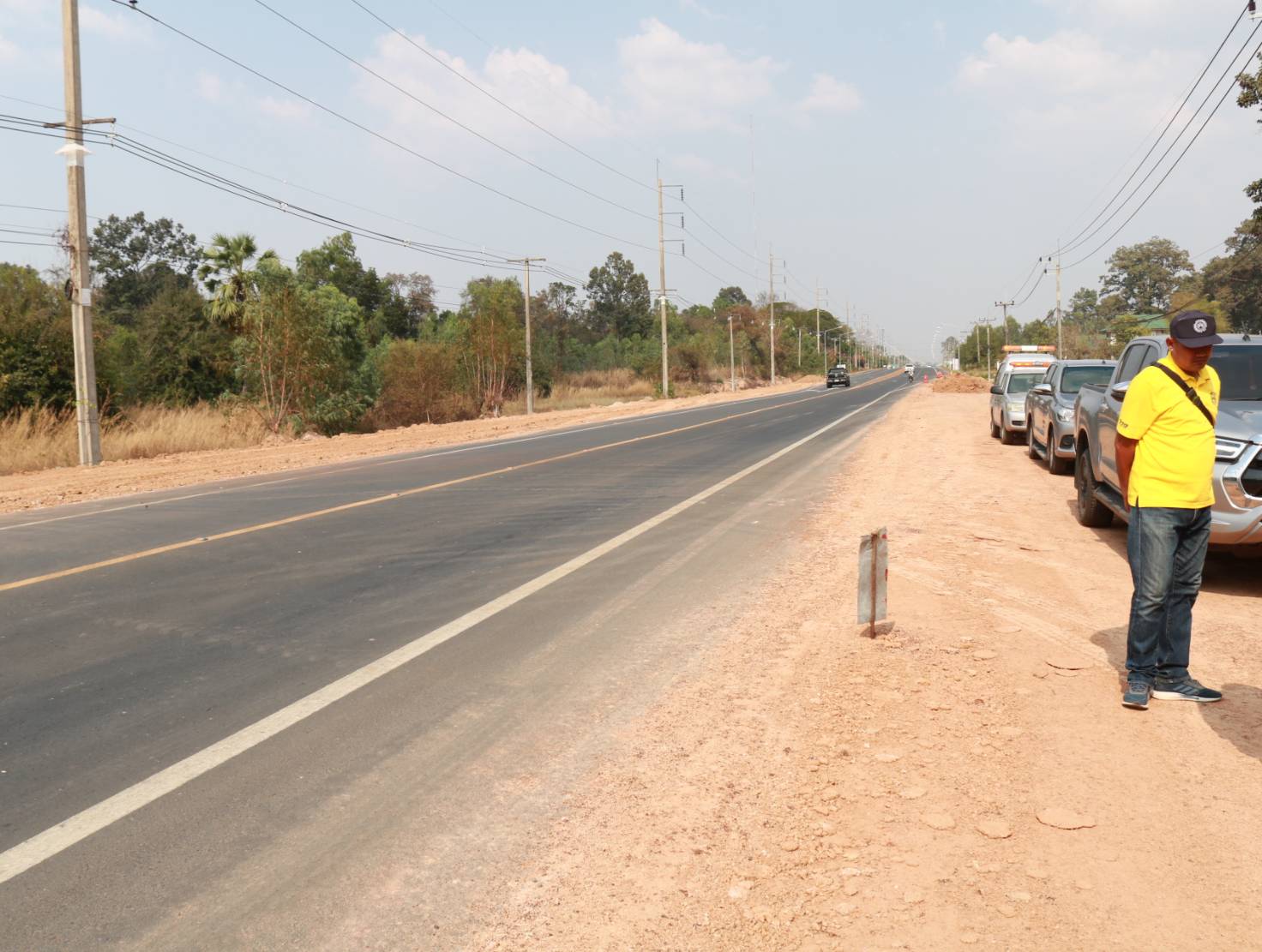 นายมงคล แสนวงษา ผู้อำนวยการแขวงทางหลวงร้อยเอ็ด พร้อมด้วยนายสมัย คะนะมะ รองผู้อำนวยการแขวงทางหลวงร้อยเอ็ด ฝ่ายวิศวกรรม ,นายสถิต คำพิชิต รองผู้อำนวยการแขวงทางหลวงร้อยเอ็ด ฝ่ายปฏิบัติการ และนายสุพรรณ ปากวิเศษ หัวหน้าหมวดทางหลวงจตุรพักตรพิมาน ร่วมลงพื้นที่ตรวจสอบแนะนำการปฏิบัติงาน การควบคุมงานก่อสร้าง วิธีการตรวจสอบคุณสมบัติวัสดุเบื้องต้น งานวัสดุมวลรวมชั้นรองพื้นทาง “ลูกรัง ” เพื่อประสิทธิภาพ และคุณภาพการปฏิบัติงาน ตามสัญญาเลขที่ รอ.14/2566 ลงวันที่ 8 พฤศจิกายน 2565 ในทางหลวงหมายเลข 2045 ตอน ร้อยเอ็ด - หนองคูโคก ระหว่าง กม.7+900 – กม.9+600