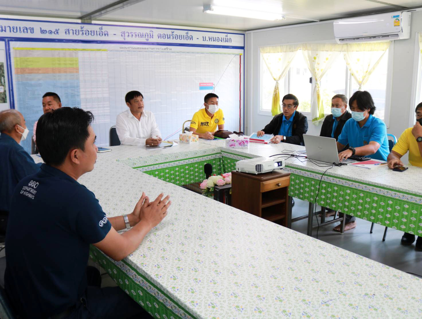 นายสมบูรณ์ แก้วลมัย วิศวกรใหญ่ด้านบำรุงรักษา กรมทางหลวง ,นายชัยธวัช พรหมวิชัย ผู้อำนวยการสำนักงานทางหลวงที่ 8 (มหาสารคาม) ,นายมงคล แสนวงษา ผู้อำนวยการแขวงทางหลวงร้อยเอ็ด และนายศักดิพงษ์ ธีรเนตร ผู้อำนวยการแขวงทางหลวงยโสธร เข้าร่วมติดตามและให้การต้อนรับเข้าตรวจติดตามผลการปฏิบัติงาน ปัญหาและอุปสรรคในการดำเนินการโครงการก่อสร้างขนาดใหญ่ในพื้นที่จังหวัดร้อยเอ็ดในเขตควบคุมของแขวงทางหลวงร้อยเอ็ดและแขวงทางหลวงยโสธร ณ สำนักงานโครงการก่อสร้างทางหลวงหมายเลข 215 สาย ร้อยเอ็ด - สุวรรณภูมิ ตอน ร้อยเอ็ด - บ.หนองเม็ก