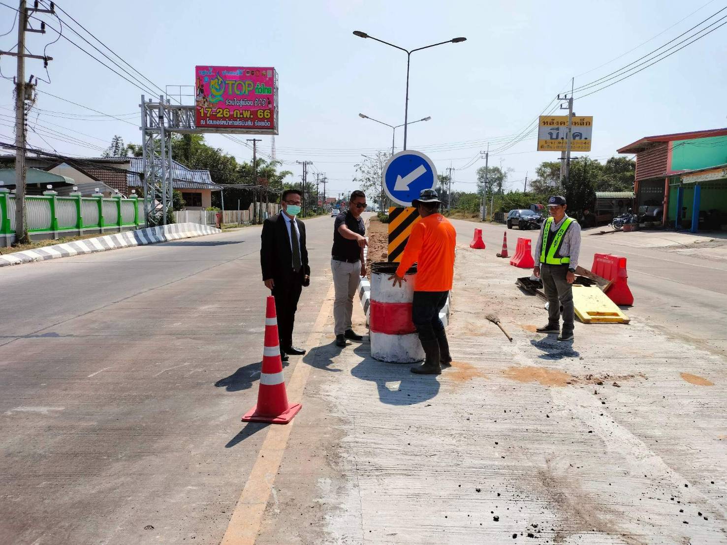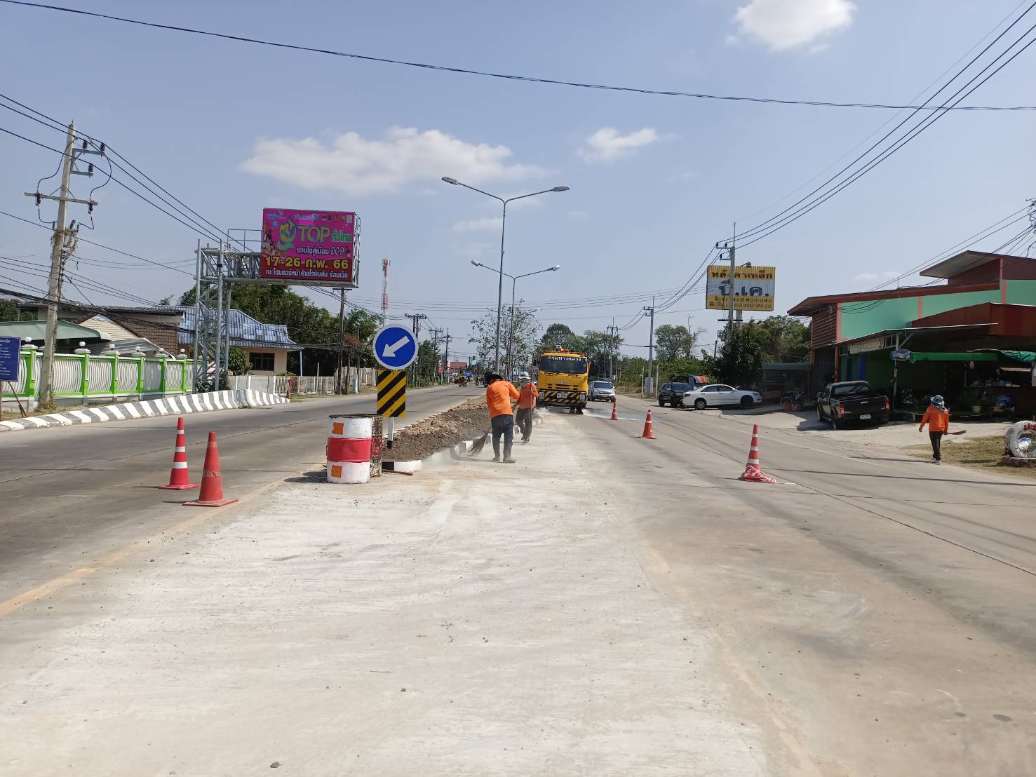 "ร่วมลงพื้นที่ตรวจสอบ แนะนำการปฏิบัติงานแนะนำการปฏิบัติงาน การปรับปรุงจุดเสี่ยงในทางหลวงบริเวณหัวเกาะ ทล.2043 ตอน ร้อยเอ็ด - ยางเฌอ ที่กม.2+400 (ตรงทางเข้าออก สหกรณ์สาธารณสุขจังหวัดร้อยเอ็ด)"