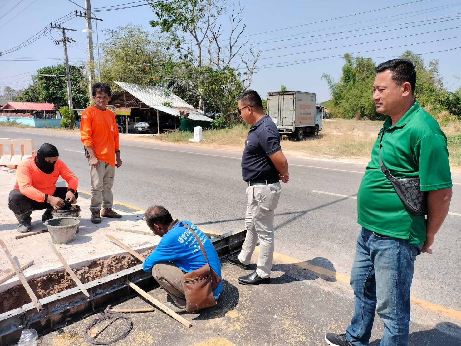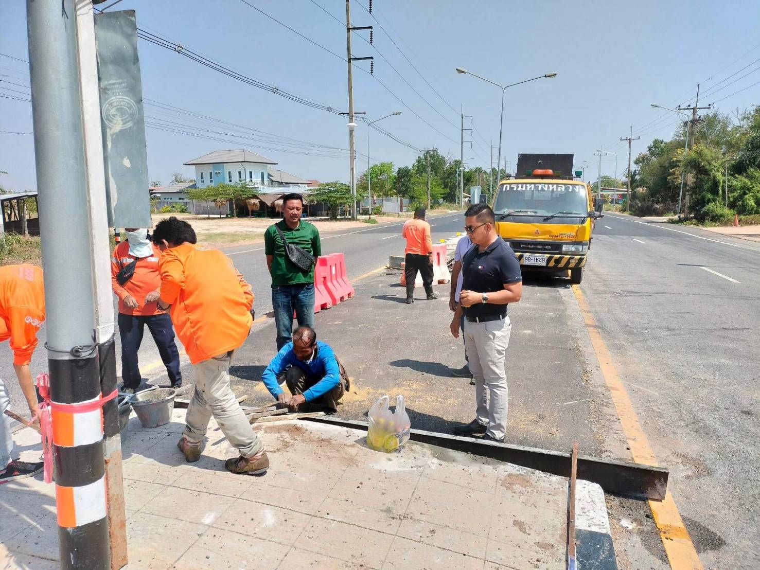 "ร่วมลงพื้นที่สำรวจ แนะนำการปฏิบัติงาน แก้ไขปัญหาและบรรเทาความเดือดร้อนของประชาชนในพื้นที่ การปรับปรุงจุดกลับรถ เพื่อความสะดวก และความปลอดภัยของผู้ใช้ทาง ทล.2045 ตอน ร้อยเอ็ด - หนองคูโคก ที่ กม.17+000 (บ้านหนองแวงควง)"