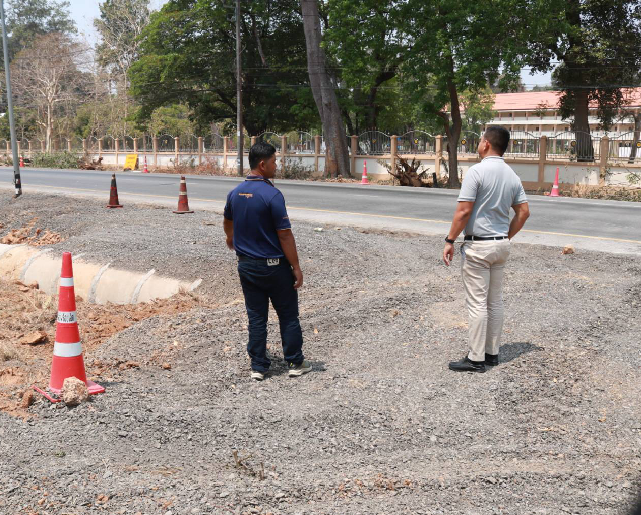 "ลงพื้นเข้าตรวจสอบผลการปฏิบัติงานแนะนำแนวทางการทดลองเปิดจุดกลับรถชั่วคราว เพื่อบรรเทาความเดือดร้อนจากการกลับรถไกล (ด้านหน้าโรงเรียนศึกษาสงเคราะห์ อำเภอธวัชบุรี) ทล.23 ตอน ร้อยเอ็ด - เสลภูมิ ที่ กม.120+500"