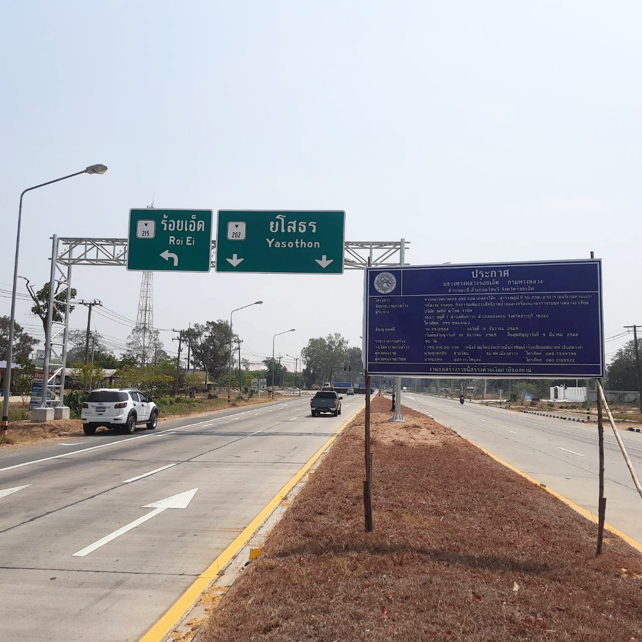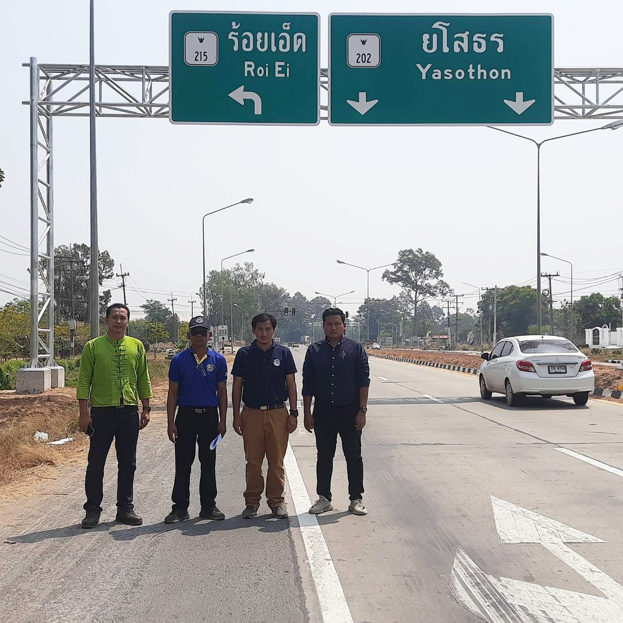 นายมงคล แสนวงษา ผู้อำนวยการแขวงทางหลวงร้อยเอ็ด ประธานกรรมการตรวจรับพัสดุ ,นายสถิต คำพิชิต รองผู้อำนวยการแขวงทางหลวงร้อยเอ็ด ฝ่ายปฏิบัติการ กรรมการตรวจรับพัสดุ ,นายสุนทร ประเสริฐสวัสดิ์ หัวหน้างานวางแผน แขวงทางหลวงร้อยเอ็ด กรรมการตรวจรับพัสดุ และนายศุภพรชัย ขามรัตน์ หัวหน้าหมวดทางหลวงเมืองสรวง ช่างผู้ควบคุมงาน ร่วมตรวจรับงานก่อสร้าง ตามสัญญาเลขที่ รอ.29/2566 ลงวันที่ 9 ธันวาคม 2565 งานจ้างเหมาเพิ่มประสิทธิภาพป้ายและเครื่องหมายจราจรบนทางหลวงอาเซียน ในทางหลวงหมายเลข 202 ตอน เกษตรวิสัย – สุวรรณภูมิ ที่ กม.208+270 (รวมบริเวณทางแยก) โดยมีบริษัท เค ที พี นำโชค เป็นผู้รับจ้าง