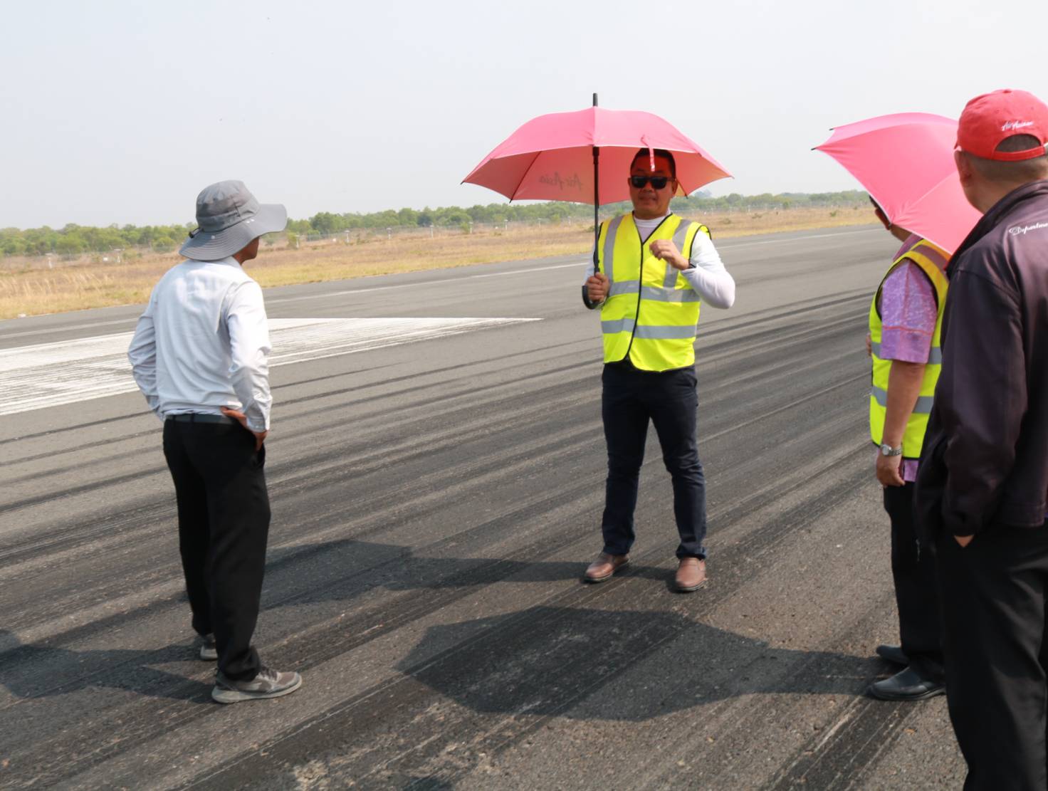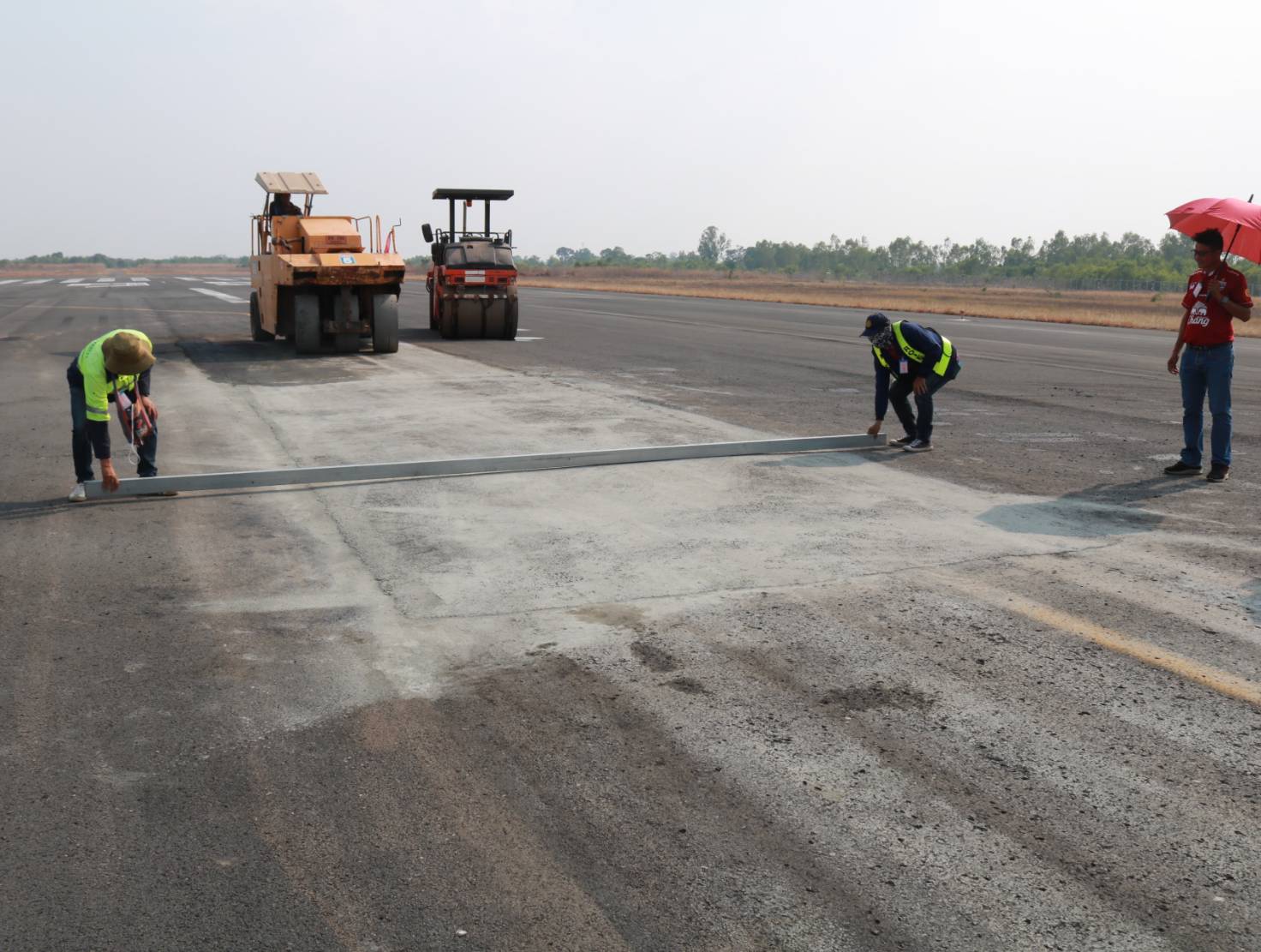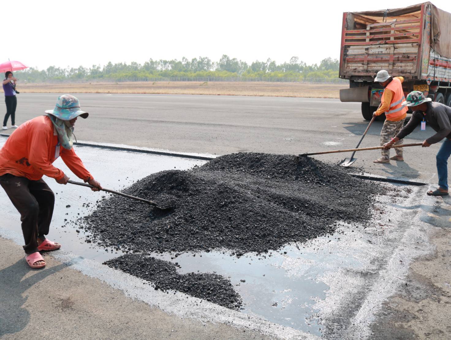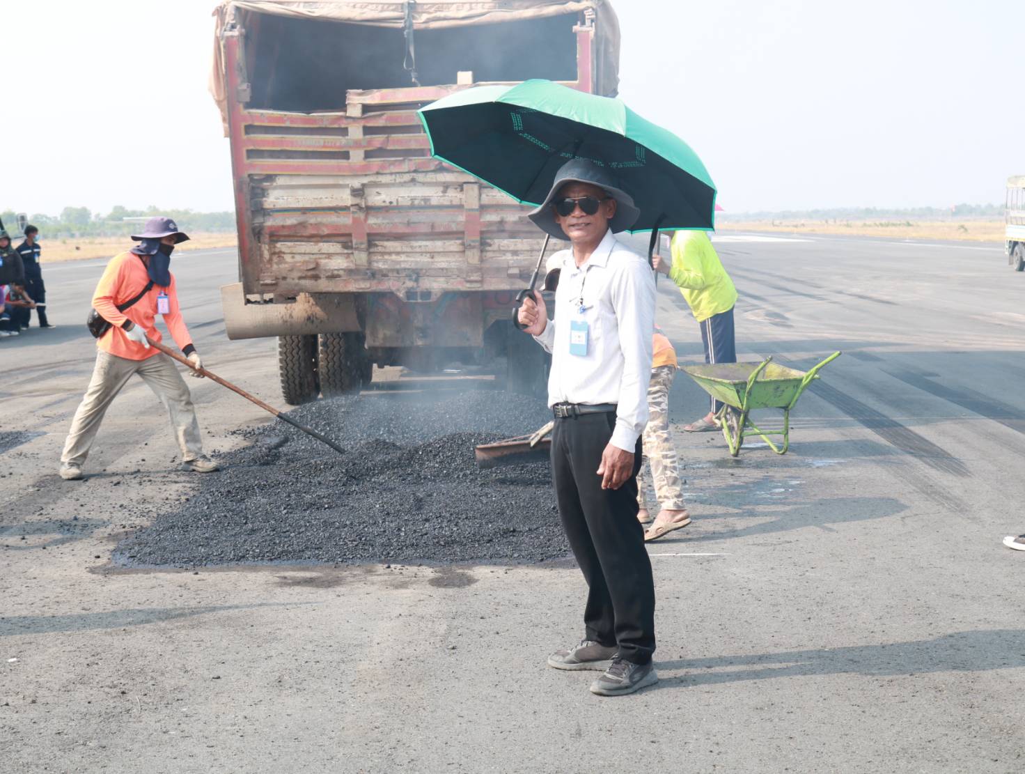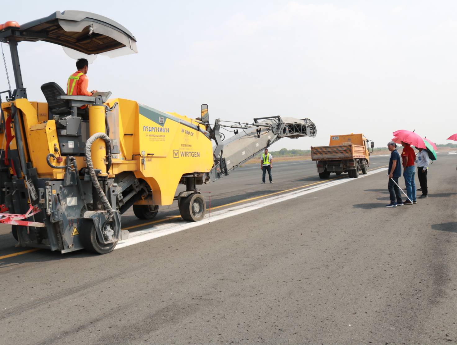 "ร่วมลงพื้นที่อำนวยการตรวจสอบแนะนำวิธีการปฏิบัติงานการขูดไส และซ่อมผิวแอสฟัลต์ ของทางวิ่ง (Runway) บริเวณทางขึ้น - ทางลงที่เกิดหลุดร่อนเสียหายอันจะก่อให้เกิดอันตรายแก่ผู้ใช้บริการ"