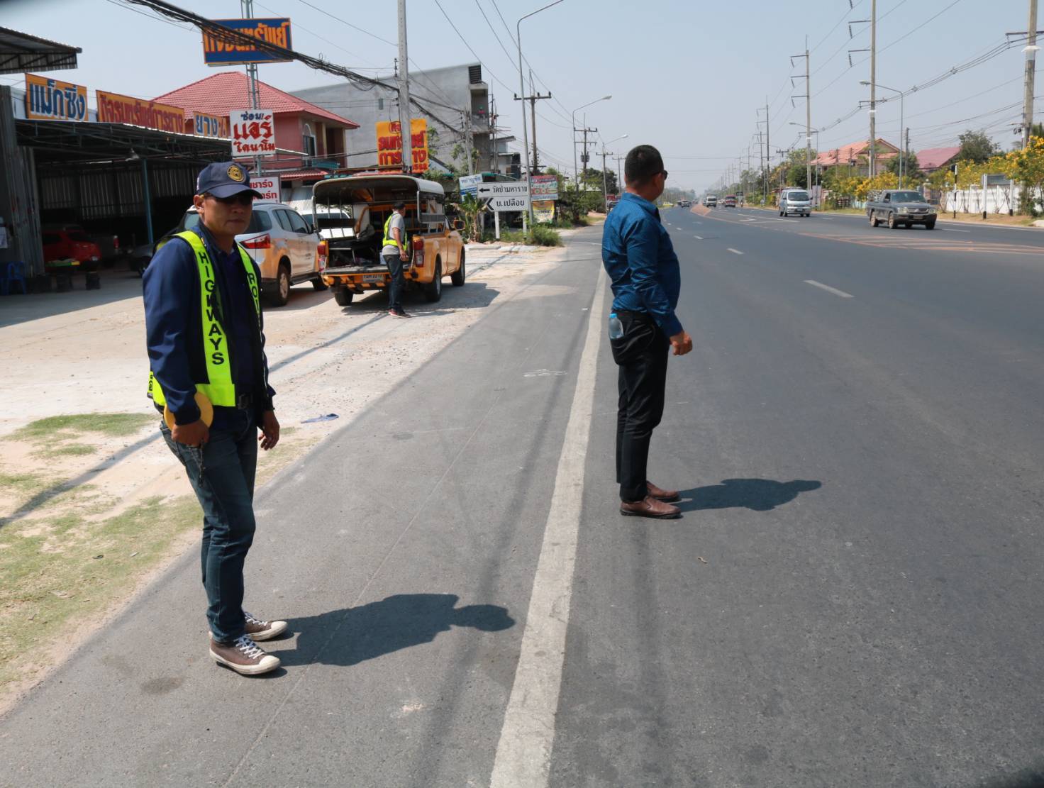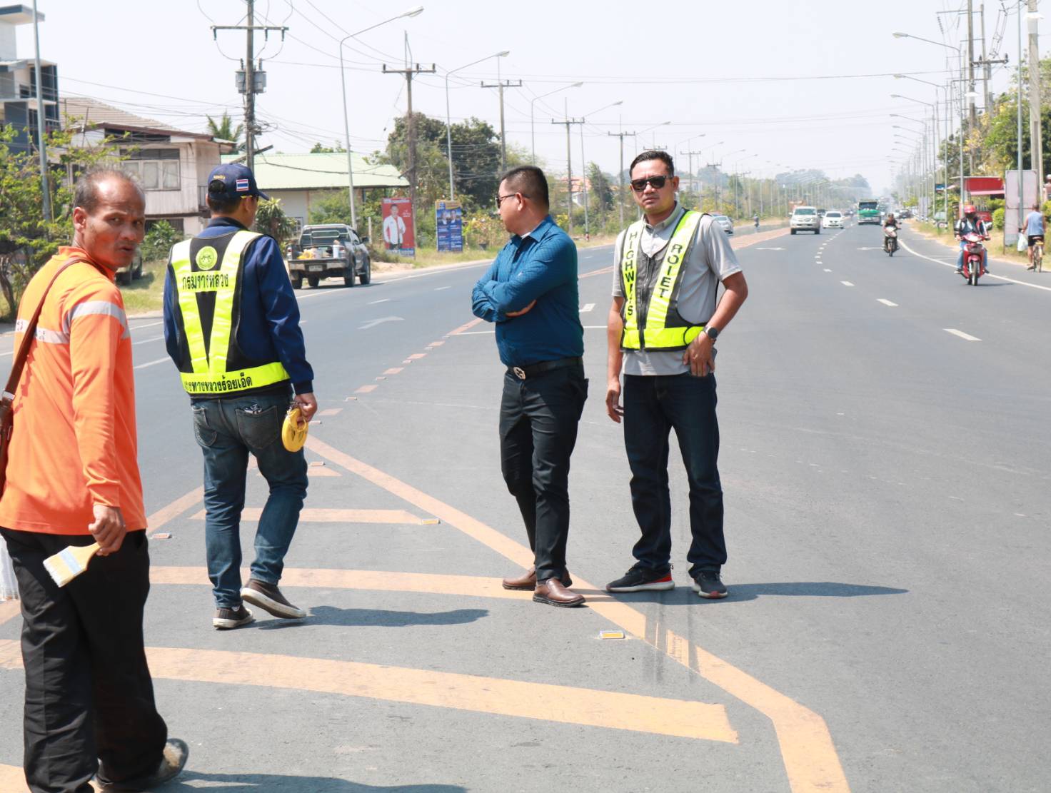 นายมงคล แสนวงษา ผู้อำนวยการแขวงทางหลวงร้อยเอ็ด พร้อมด้วยนายสุพรรณ ปากวิเศษ หัวหน้าหมวดทางหลวงจตุรพักตรพิมาน ร่วมลงพื้นที่ตรวจสอบกายภาพทางหลวง เพื่อแนะนำการวางแผนการปรับปรุงจุดเสี่ยง/จุดอันตรายบริเวณทางแยกที่เกิดอุบัติเหตุบ่อยครั้ง ในทางหลวงหมายเลข 2045 ตอน ร้อยเอ็ด - หนองคูโคก ที่กม. 4+600 (บริเวณชุมชนบ้านขอนแก่น)