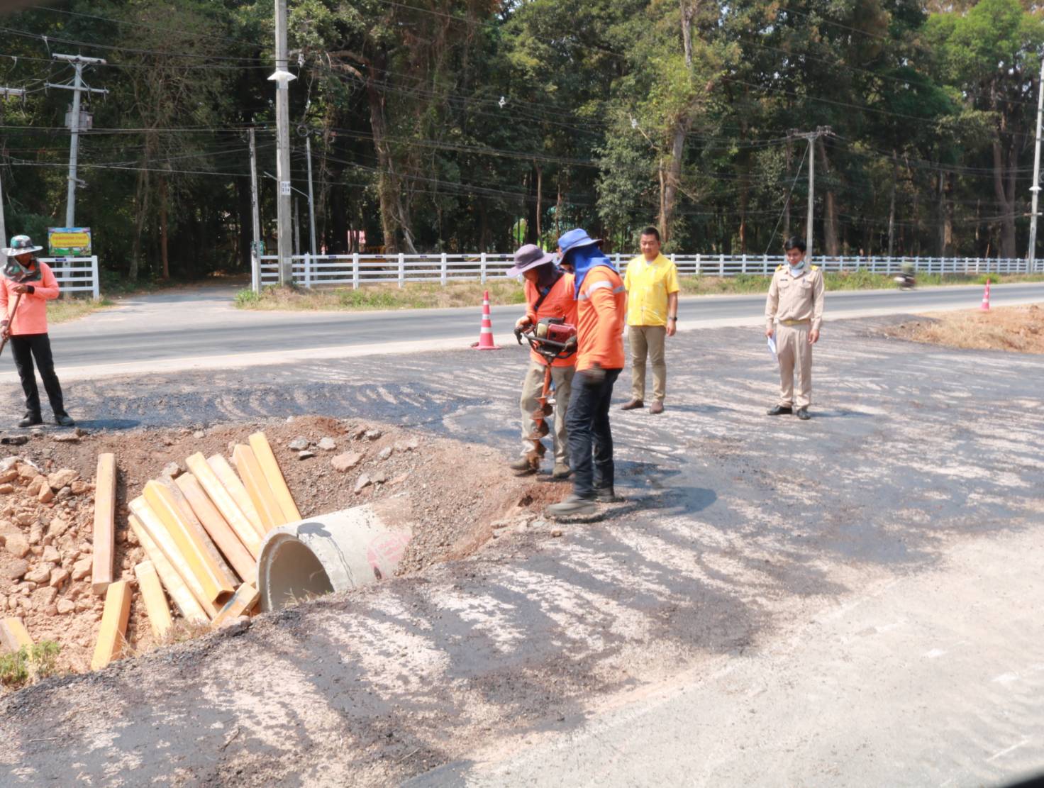 "ร่วมลงพื้นที่เข้าตรวจสอบผลการปฏิบัติงานแนะนำแนวทางการทดลองเปิดจุดกลับรถชั่วคราว เพื่อบรรเทาความเดือดร้อนจากการกลับรถไกล (ด้านหน้าโรงเรียนศึกษาสงเคราะห์ อำเภอธวัชบุรี) ทล.23 ตอน ร้อยเอ็ด - เสลภูมิ ที่ กม.120+500"