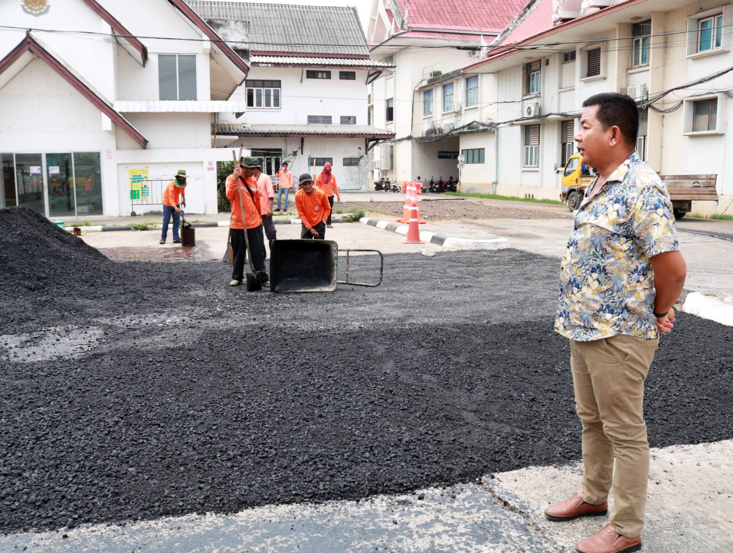 "ร่วมลงพื้นที่ตรวจสอบแนะนำการปฏิบัติงาน การปรับปรุงลานจอดรถบริเวณพื้นที่ศาลากลางจังหวัดร้อยเอ็ด"