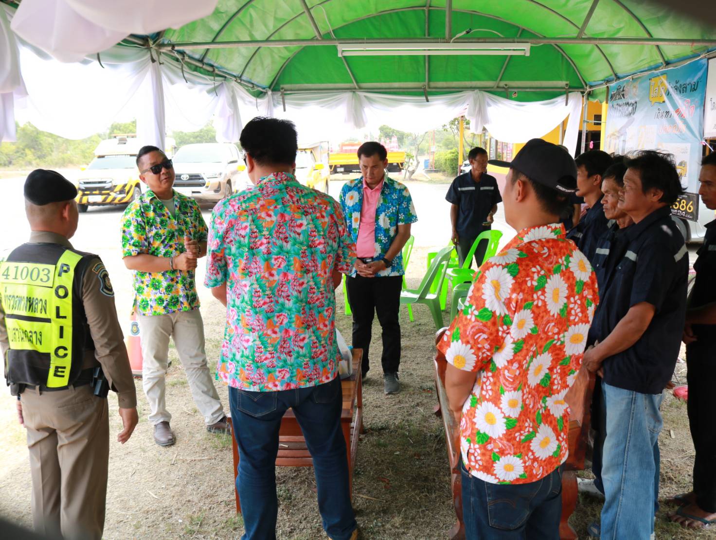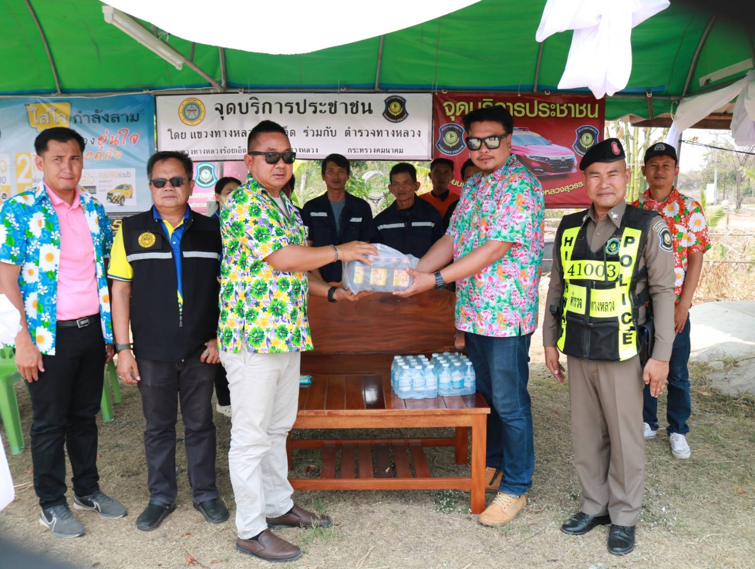 นายมงคล แสนวงษา ผู้อำนวยการแขวงทางหลวงร้อยเอ็ด พร้อมด้วยนายสมัย คะนะมะ รองผู้อำนวยการแขวงทางหลวงร้อยเอ็ด ฝ่ายวิศวกรรม ,นายพิทักษ์ ทาตะนาม หัวหน้าหมวดทางหลวงเกษตรวิสัย และนายศุภพรชัย ขามรัตน์ หัวหน้าหมวดทางหลวงเมืองสรวง ร่วมตรวจเยี่ยมจุดบริการประชาชนช่วงเทศกาลสงกรานต์ 2566 ในทางหลวงหมายเลข 202 ตอน เกษตรวิสัย - สุวรรณภูมิ ที่ กม.194+200 พร้อมมอบสิ่งของเพื่อเป็นขวัญและกำลังใจแก่เจ้าหน้าที่ผู้ปฏิบัติงานในช่วงเทศกาลสงกรานต์ 2566 (ระหว่างวันที่ 11 – 17 เมษายน 2566)