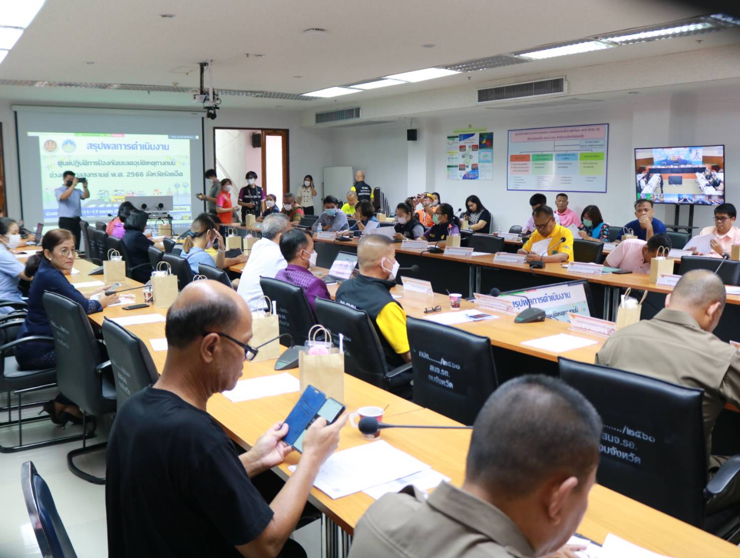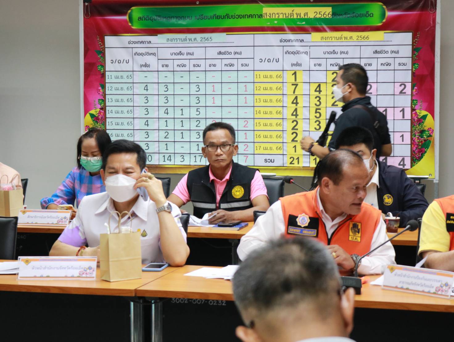 นายมงคล แสนวงษา ผู้อำนวยการแขวงทางหลวงร้อยเอ็ด พร้อมด้วยนายสถิต คำพิชิต รองผู้อำนวยการแขวงทางหลวงร้อยเอ็ด ฝ่ายปฏิบัติการ เข้าร่วมแถลงข่าวสรุปผลการดำเนินการป้องกันและลดอุบัติเหตุทางถนนช่วงเทศกาลสงกรานต์ พ.ศ 2566 ร่วมกับหัวหน้าส่วนราชการในจังหวัดร้อยเอ็ด โดยมีนายทรงพล ใจกริ่ม ผู้ว่าราชการจังหวัดร้อยเอ็ด เป็นประธานในการแถลงข่าวฯ ณ ศูนย์ปฏิบัติการป้องกันและลดอุบัติเหตุทางถนนช่วงเทศกาลสงกรานต์ พ.ศ 2566 ห้องประชุมพระเวสสันดร ชั้น 3 ศาลากลางจังหวัดร้อยเอ็ด