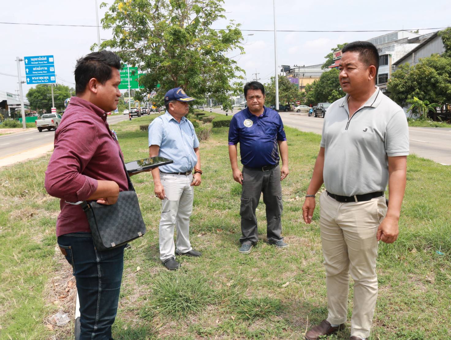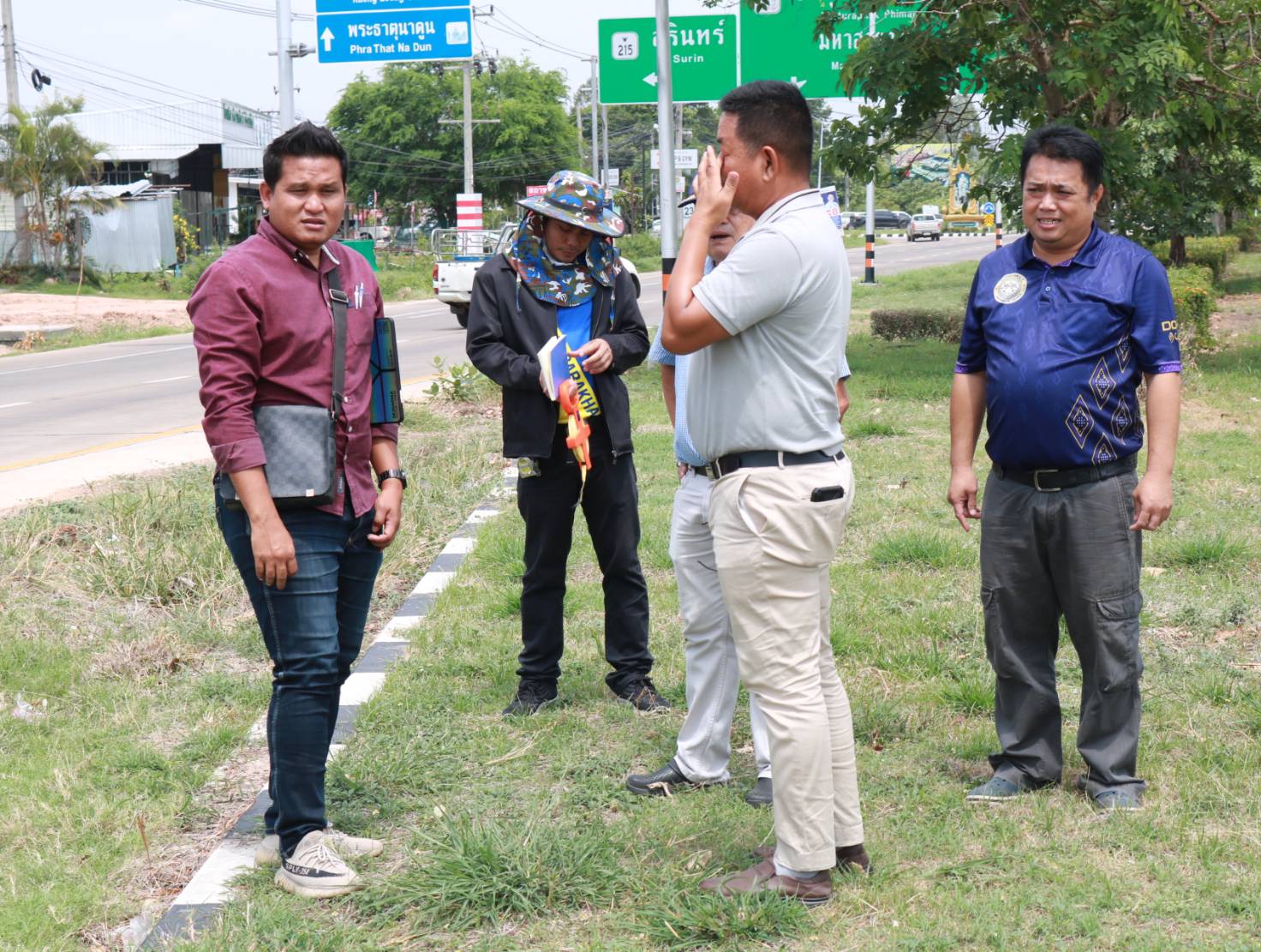 นายมงคล แสนวงษา ผู้อำนวยการแขวงทางหลวงร้อยเอ็ด พร้อมด้วยนายสมัย คะนะมะ รองผู้อำนวยการแขวงทางหลวงร้อยเอ็ด ฝ่ายวิศวกรรม ,นายณัฐพล เยี่ยมชัยภูมิ หัวหน้าหมวดทางหลวงร้อยเอ็ด และนายสุนทร ประเสริฐสวัสดิ์ หัวหน้างานวางแผน ร่วมลงพื้นที่ตรวจสอบความเหมาะสมของโครงการ กิจกรรมก่อสร้างทางหลวงพัฒนาพื้นที่ระดับภาค ในทางหลวงหมายเลข 232 ตอน ถนนวงแหวนรอบเมืองร้อยเอ็ด ที่กม.20+829 (แยกบายพาสสุวรรณภูมิ) เพื่อแก้ไขปัญหาการระบายน้ำจากตัวเมืองร้อยเอ็ด