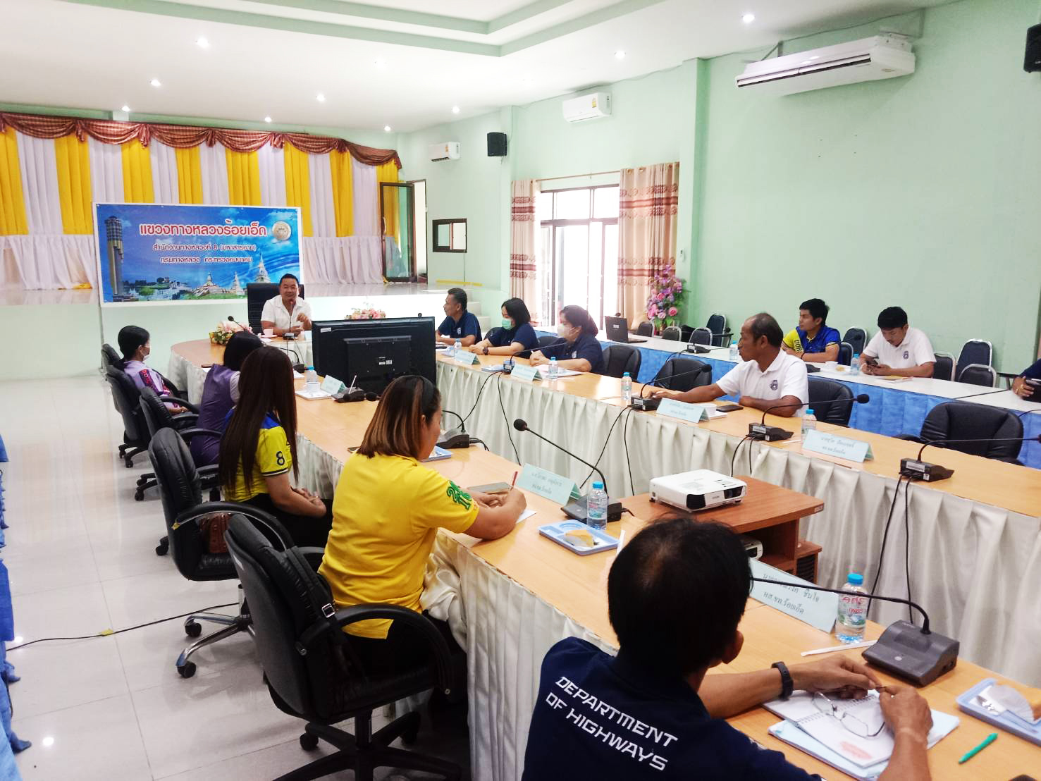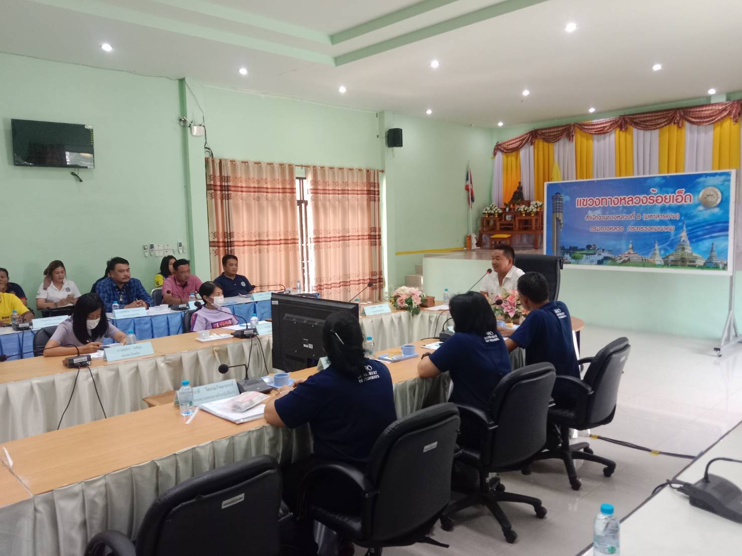 ณ ห้องประชุมจุลละโพธิ แขวงทางหลวงร้อยเอ็ด นายมงคล แสนวงษา ผู้อำนวยการแขวงทางหลวงร้อยเอ็ด ,รองผู้อำนวยการ ,หัวหน้าหมวดทางหลวง ,หัวหน้าหน่วย หัวหน้างานพร้อมเจ้าหน้าที่ในสังกัด ร่วมรับฟังคำชี้แจงการเข้าตรวจสอบงานแขวงทางหลวงร้อยเอ็ด ระหว่างวันที่ 24 พฤษภาคม – 2 มิถุนายน 2566 โดยเจ้าหน้าที่จากสำนักงานตรวจสอบภายใน กรมทางหลวง