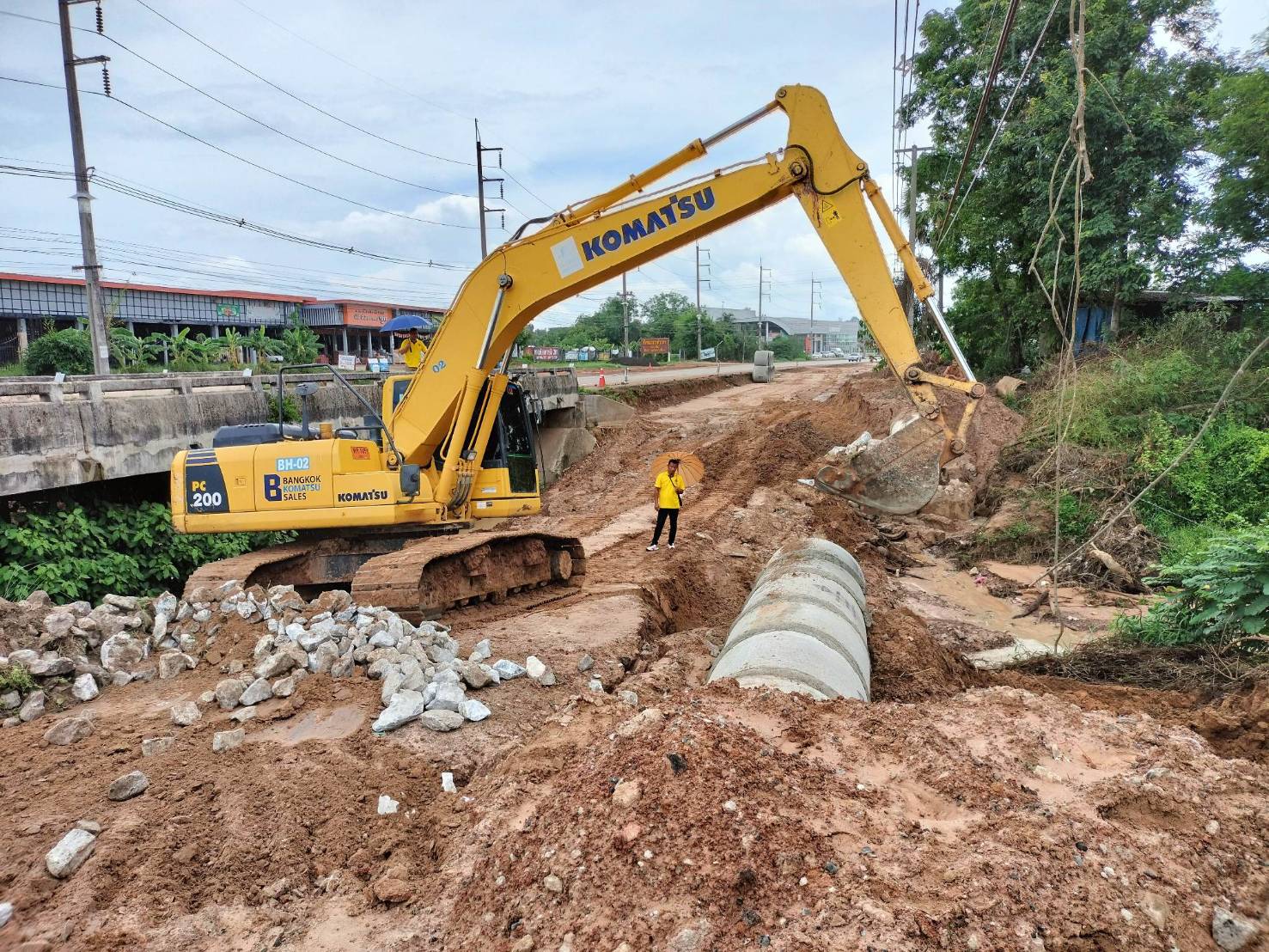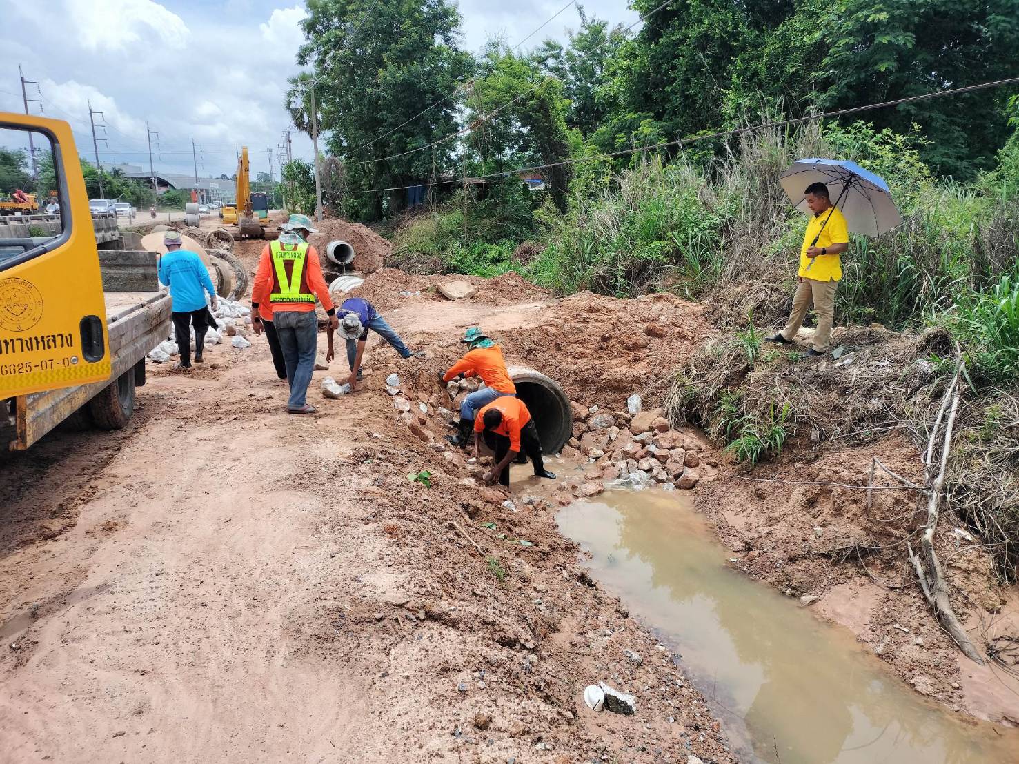 "ร่วมลงพื้นที่สำรวจแนะนำการปฏิบัติงาน แก้ไขปัญหาอุทกภัย คันทางชำรุดจากเหตุการณ์น้ำท่วม กัดเซาะคันทางจากการที่มีฝนตกอย่างหนักอย่างต่อเนื่องตลอดหลายวันที่ผ่านมา ตามสัญญา รอ.37/2566 ทล.2044 ตอน หนองดง - ร้อยเอ็ด ระหว่าง กม.46+338 - กม.47+861"