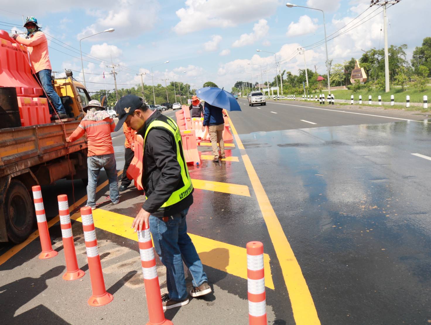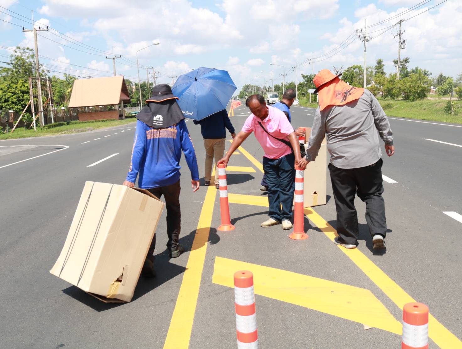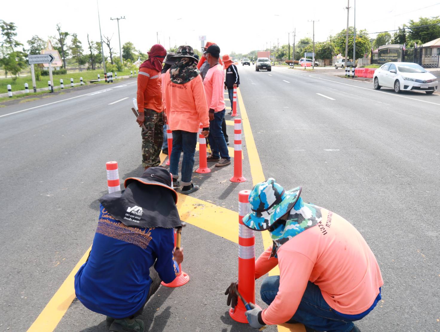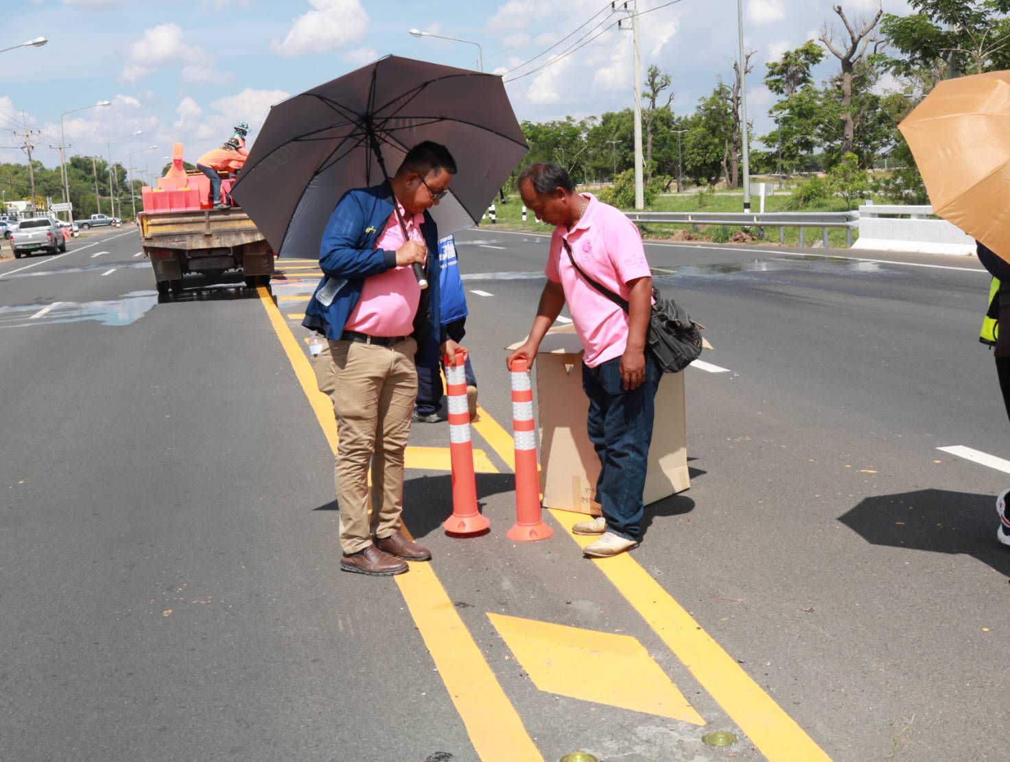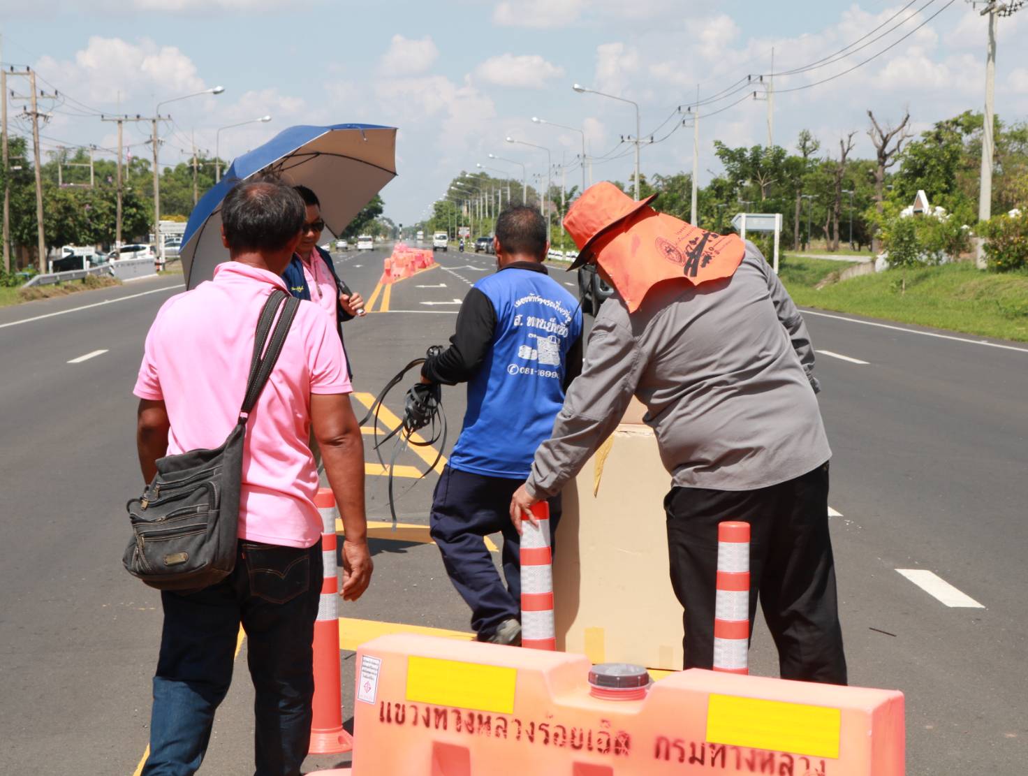 นายมงคล แสนวงษา ผู้อำนวยการแขวงทางหลวงร้อยเอ็ด ,ว่าที่ รต.ธีระศักดิ์ ไค่นุ่นโพธิ์ หัวหน้าหมวดทางหลวงเสลภูมิ ,นายสุวิท ปัดมะฤทธิ์ หัวหน้างานอำนวยความปลอดภัย และนายธนพล พิมพ์ศักดิ์ หัวหน้างานบริเวณและต้นไม้ ได้ร่วมลงพื้นที่ตรวจสอบแนะนำแก้ไขปัญหา การปรับปรุงจุดเสี่ยงบริเวณหน้าแขวงทางหลวงร้อยเอ็ดหน้า สำนักงานทรัพยากรธรรมชาติและสิ่งแวดล้อมจังหวัดร้อยเอ็ด หน้าสำนักงาน ป.ป.ช จังหวัดร้อยเอ็ดและหน้าสำนักงานบังคับคดีจังหวัดร้อยเอ็ด โดยได้ทำการติดตั้งหลักนำทางชนิดอ่อนตัว (หลักล้มลุก) เพื่อจัดระเบียบการใช้ทาง การเลี้ยวเข้า - เลี้ยวออก สำนักงาน เพื่อความสะดวกแก่ผู้ใช้ทาง ในทางหลวงหมายเลข 2044 ตอน ร้อยเอ็ด - หนองดง ระหว่าง กม.6+735 - กม.6+835