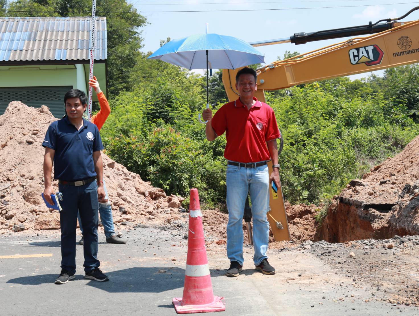 นายมงคล แสนวงษา ผู้อำนวยการแขวงทางหลวงร้อยเอ็ด พร้อมด้วยนายสถิต คำพิชิต รองผู้อำนวยการแขวงทางหลวงร้อยเอ็ด ฝ่ายปฏิบัติการ และนายสุขสันต์ ปากวิเศษ หัวหน้าหมวดทางหลวงโพนทอง ได้ร่วมลงพื้นที่ตรวจสอบแนะนำการปฏิบัติงาน แก้ไขปัญหาน้ำท่วมทาง การวางท่อระบายน้ำ ที่ Cross Drain ขนาด 1.20 เมตร เพื่อแก้ไขปัญหาการระบายน้ำในพื้นที่ ในทางหลวงหมายเลข 2044 ตอน หนองดง - โพนทอง ที่ กม.44+100 (หน้าคูโบต้าโพนทอง)