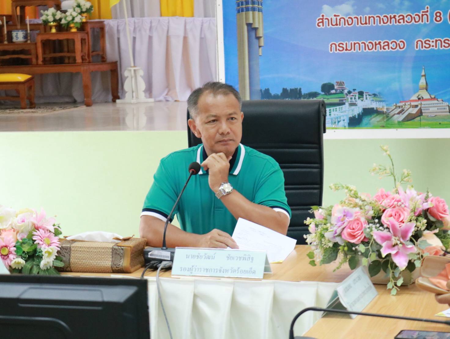 นายชัยวัฒน์ ชัยเวชพิสิฐ รองผู้ว่าราชการจังหวัดร้อยเอ็ด ประธานกรรมการตรวจรับพัสดุ ,นายมงคล แสนวงษา ผู้อำนวยการแขวงทางหลวงร้อยเอ็ด กรรมการตรวจรับพัสดุ พร้อมด้วยคณะกรรมการฯ และนายสถิต คำพิชิต รองผู้อำนวยการแขวงทางหลวงร้อยเอ็ด ฝ่ายปฏิบัติการ ผู้ควบคุมงาน ร่วมประชุมหารือ ปัญหาอุปสรรค แนวทางการแก้ไขปัญหาระหว่างการก่อสร้างฯ ตามสัญญาเลขที่ รอ.37/2566 ลงวันที่ 16 กุมภาพันธ์ 2566 โครงการพัฒนาการค้า การลงทุนอุตสาหกรรมและการท่องเที่ยว กิจกรรมเพิ่มประสิทธิภาพทางหลวง ในทางหลวงหมายเลข 2044 ตอน หนองดง - โพนทอง ระหว่าง กม.46+338 - กม.47+861 โดยมีห้างหุ้นส่วน จำกัด จั่วเซ้งค้าไม้ เป็นผู้รับจ้าง ณ ห้องประชุมจุลละโพธิ แขวงทางหลวงร้อยเอ็ด