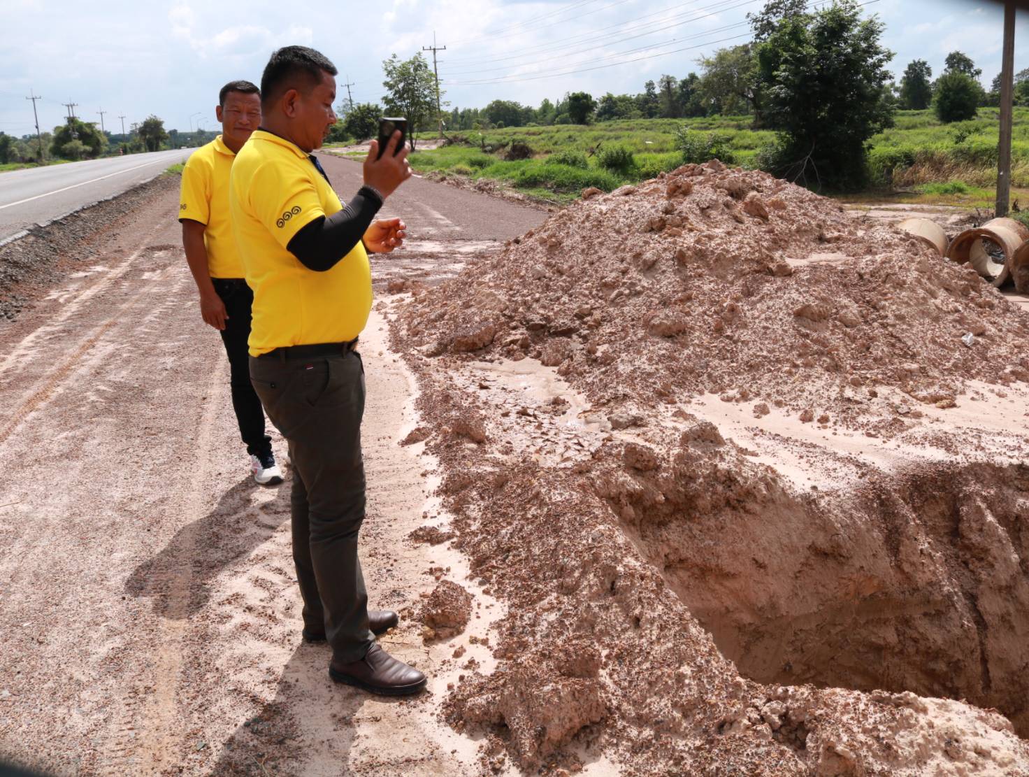 "ลงพื้นที่แนะนำการปฏิบัติงานการวางท่อระบายน้ำ Cross Drain อย่างมีประสิทธิภาพ ตามสัญญา รอ.36/2566 ทล.2116 ตอน ร่องคำ - โพนทอง ระหว่าง กม.54+150 - กม.56+000"