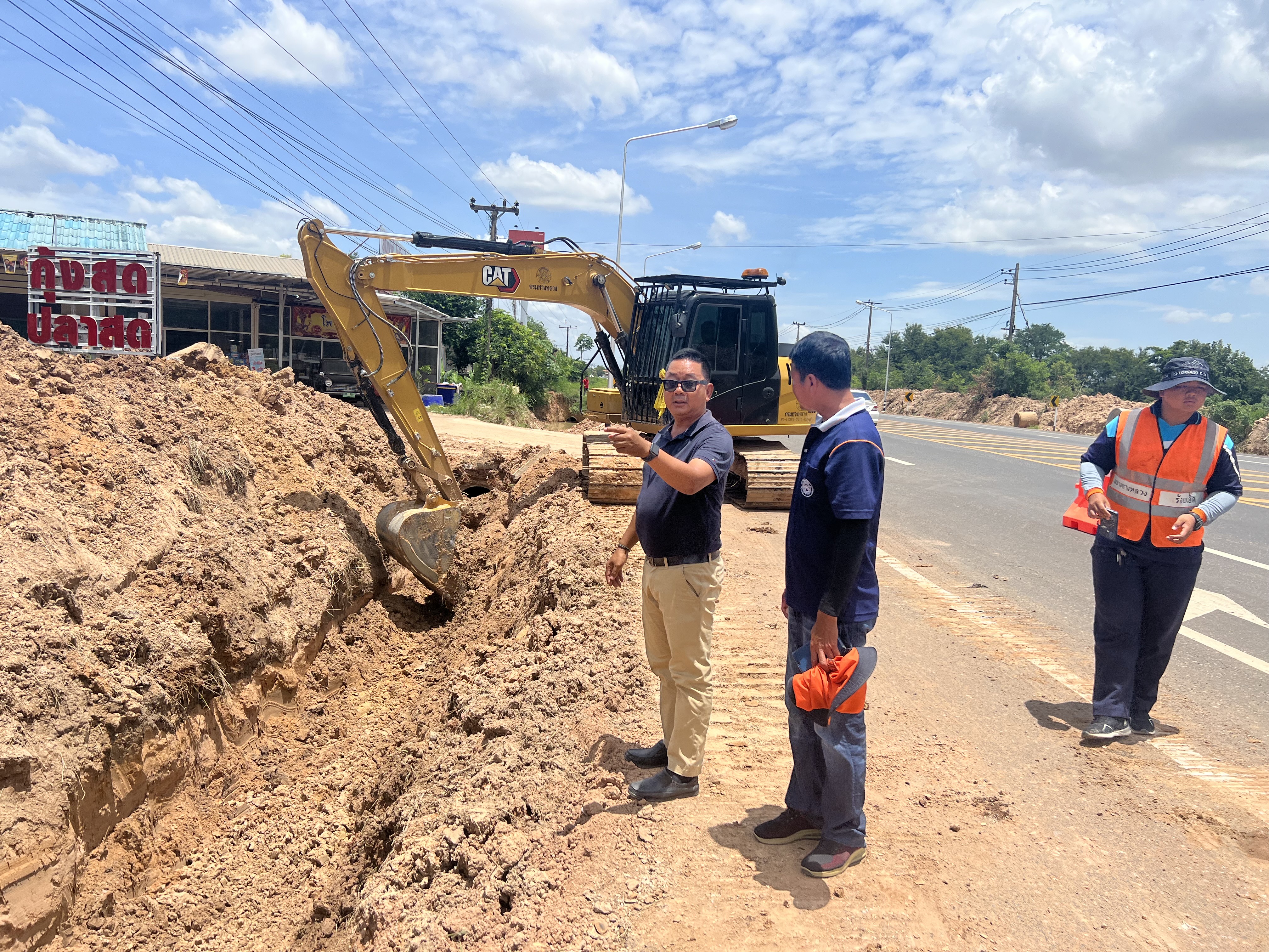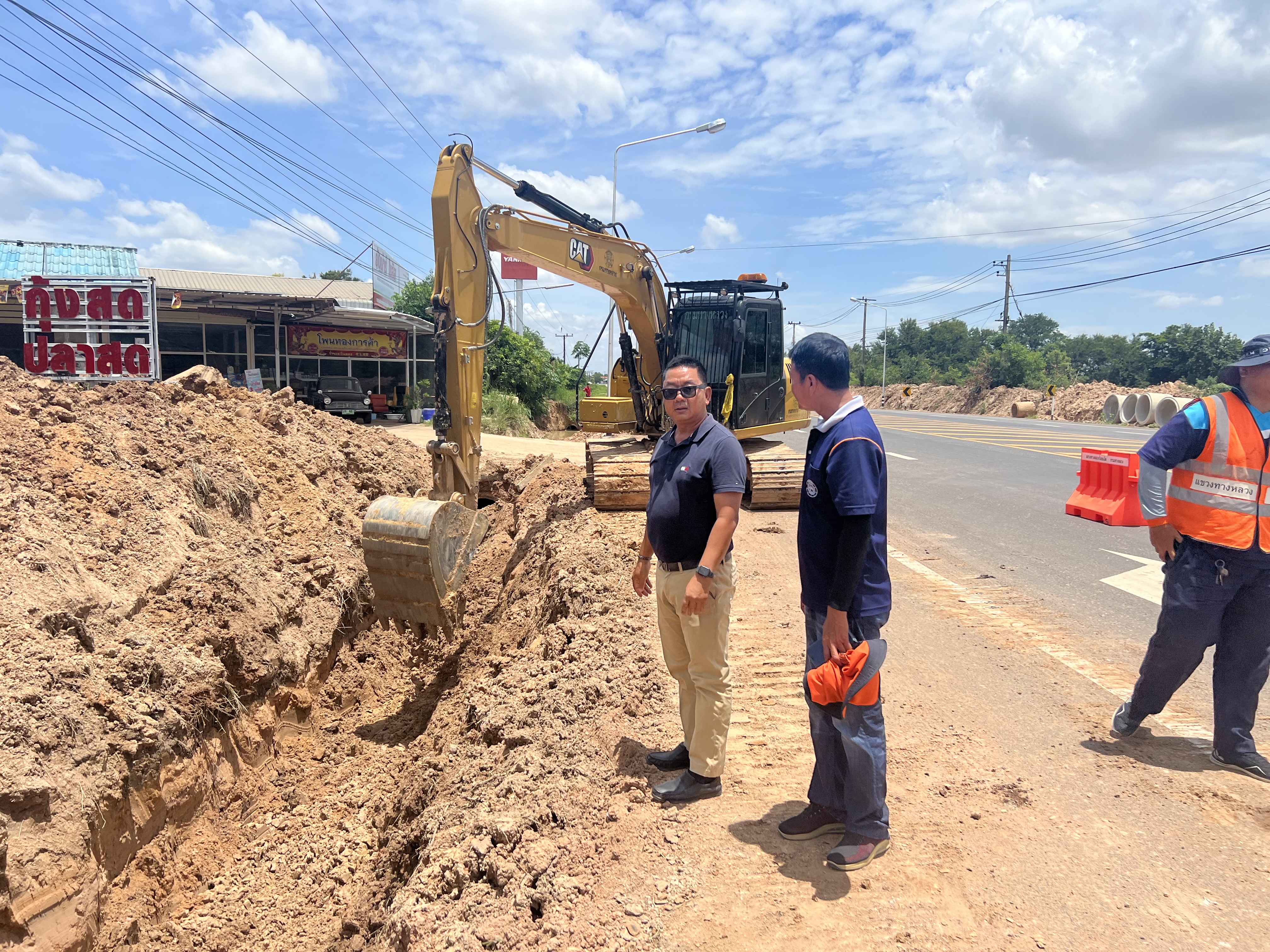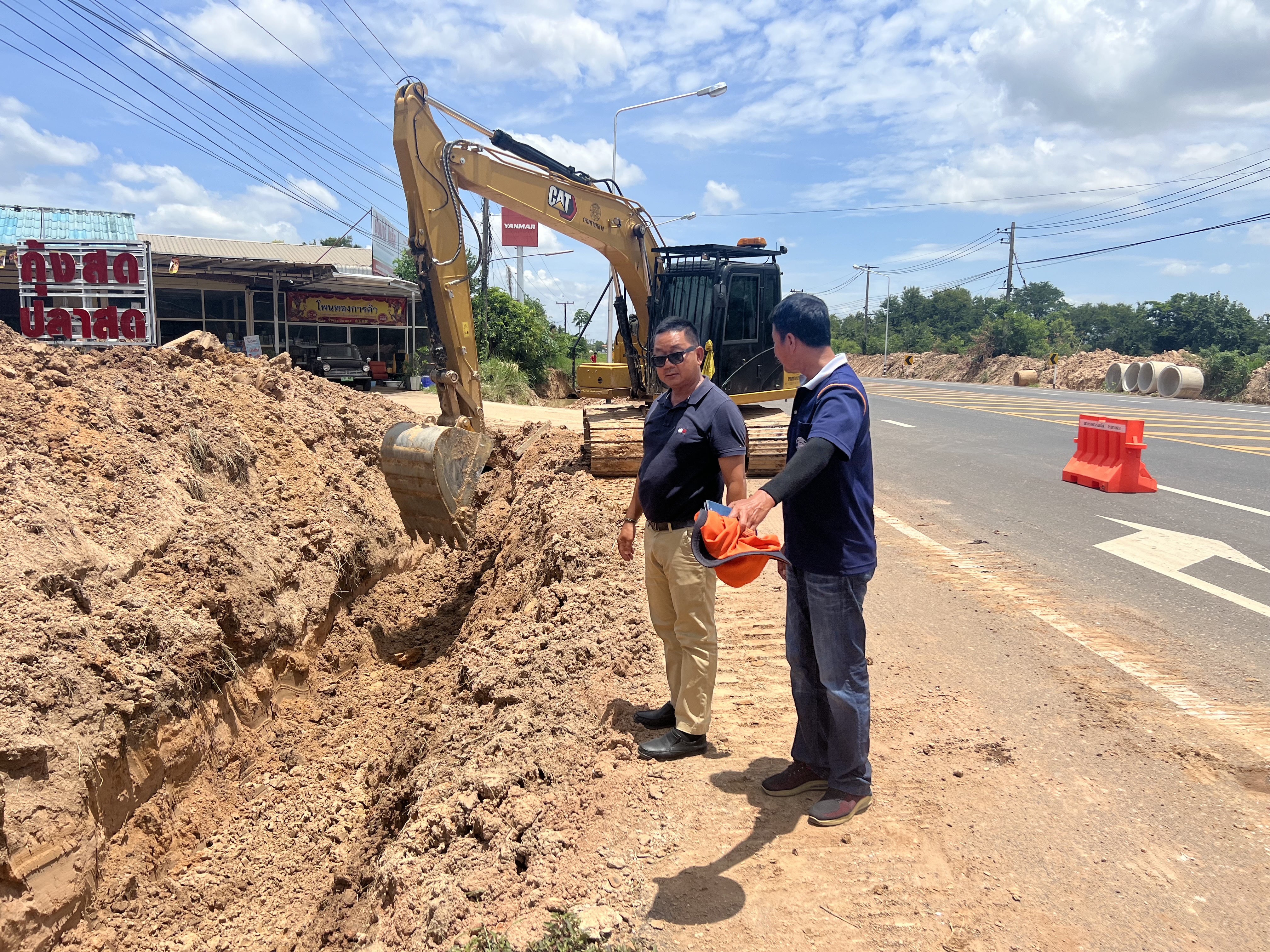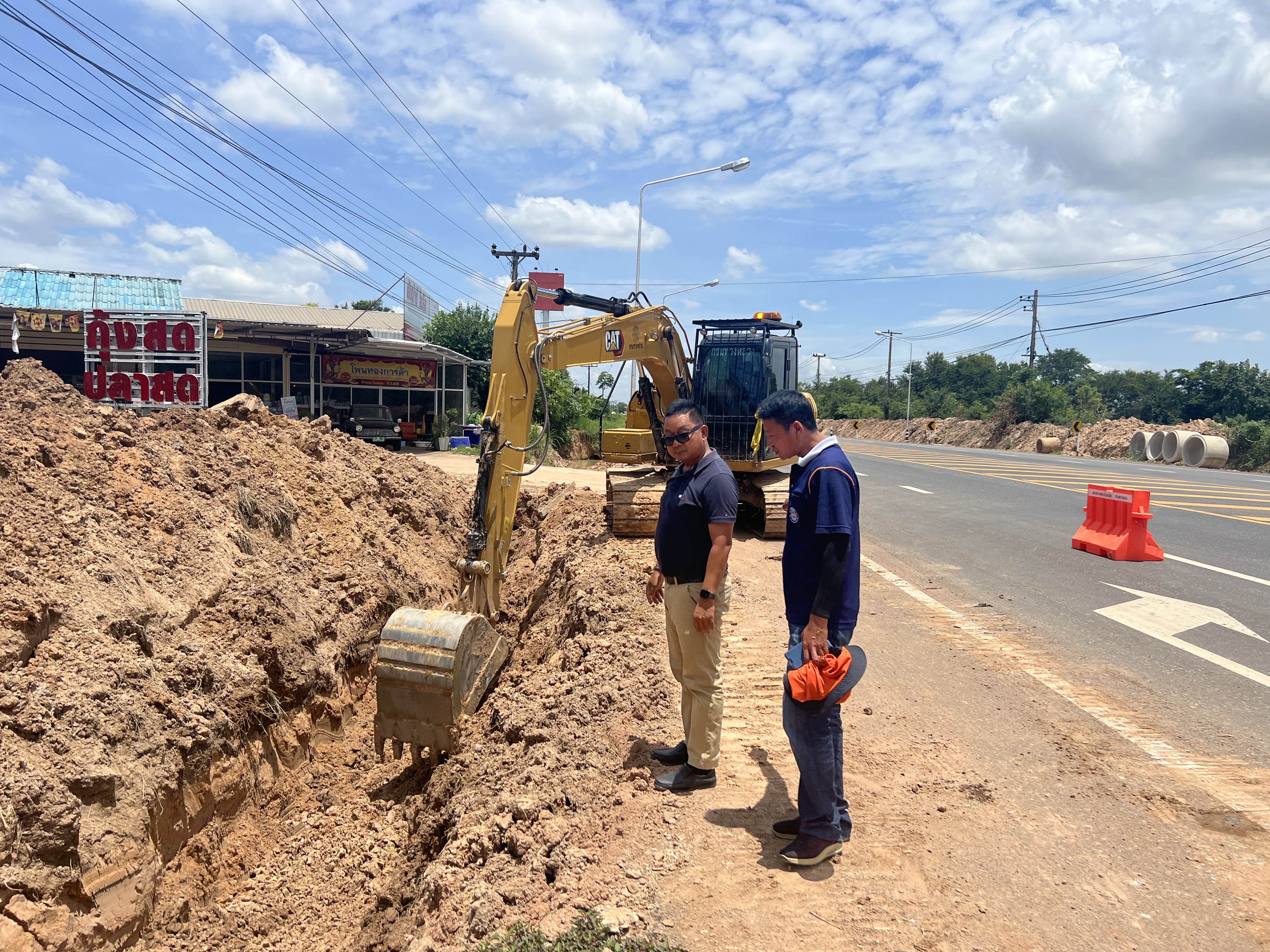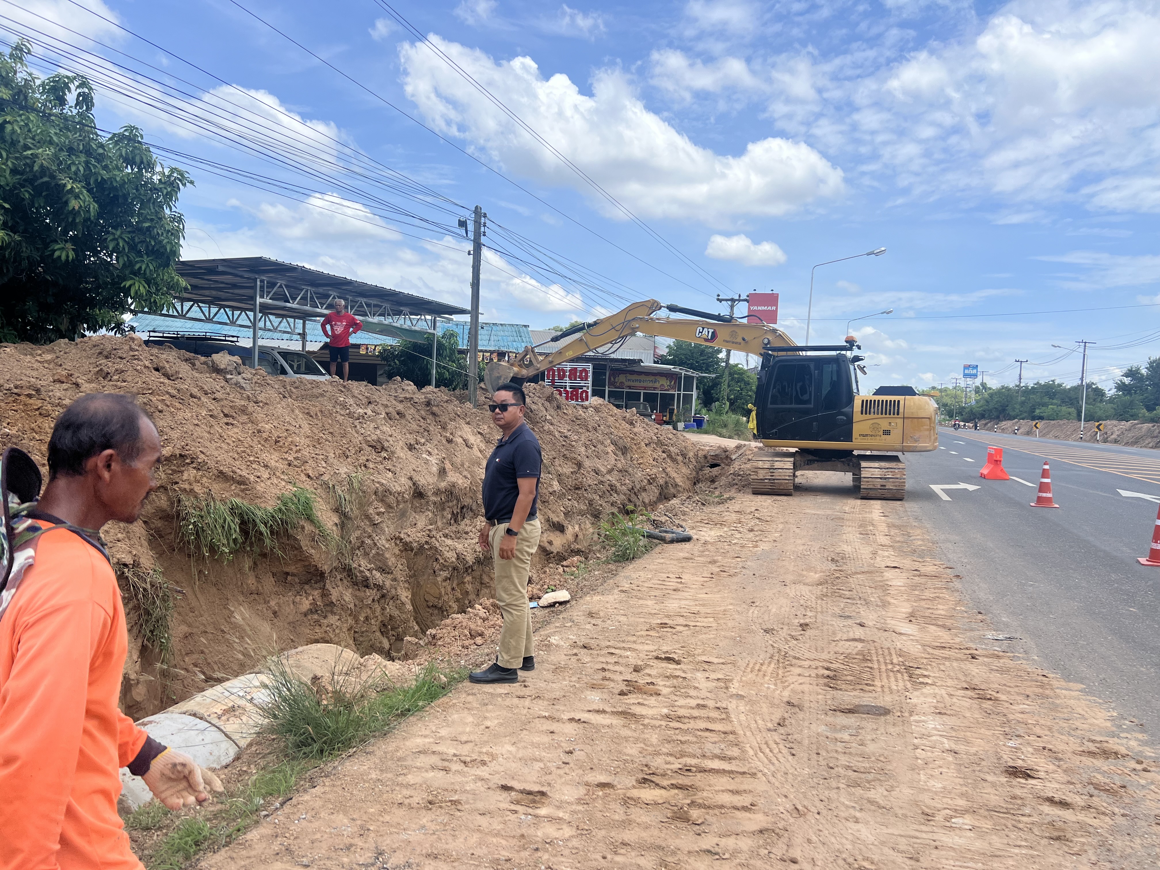 "ร่วมลงพื้นที่ตรวจสอบแนะนำการปฏิบัติงาน แก้ไขปัญหาเรื่องระบบระบายน้ำสองข้างทาง โดยการขุดลอกระบายน้ำและวางท่อระบายน้ำ ทล.2044 ตอน หนองดง - โพนทอง ที่กม.44+200 (ปากทางเข้าบ้านขมิ้น)"