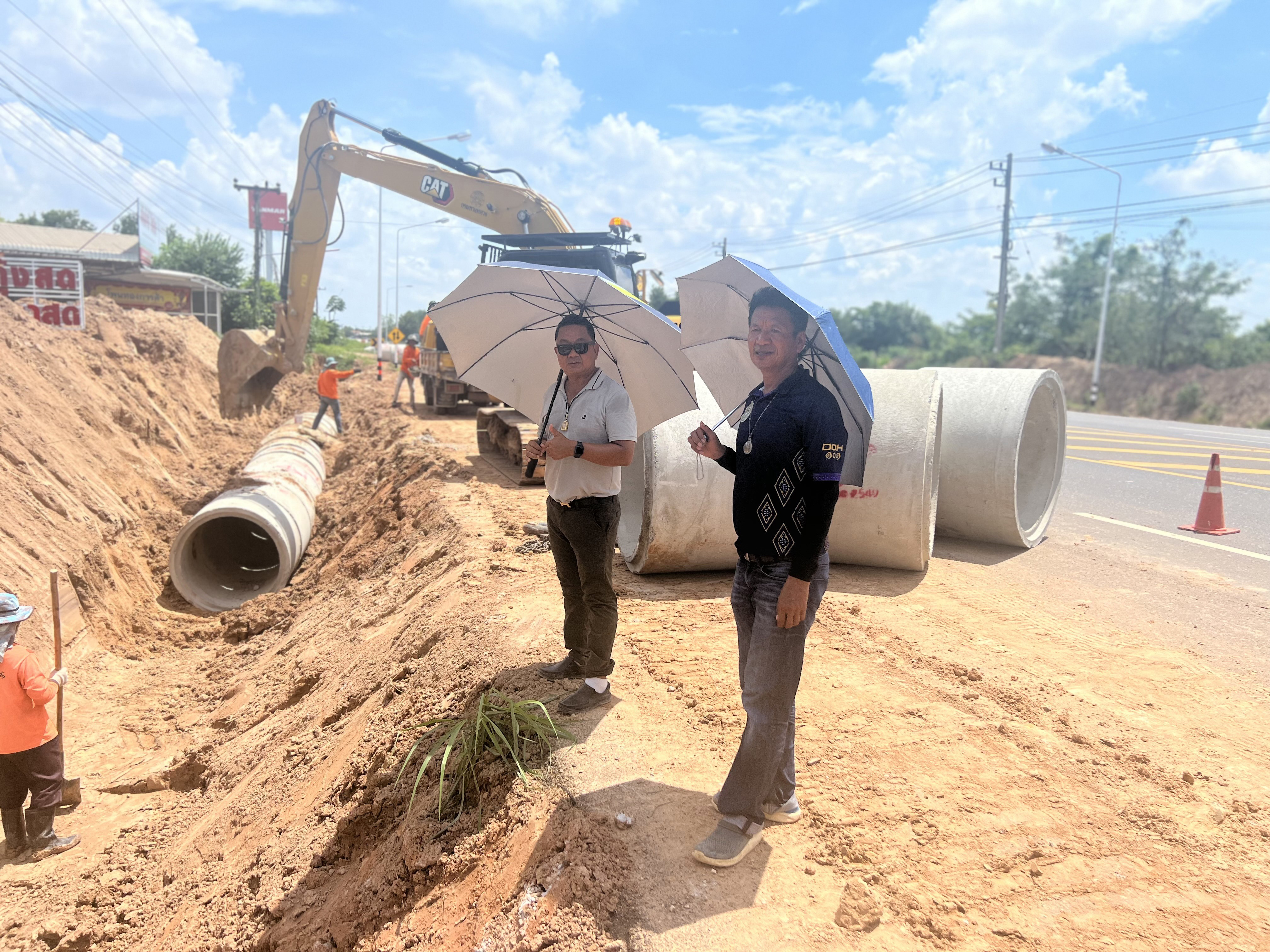 "ร่วมลงพื้นที่ตรวจสอบแนะนำการปฏิบัติงาน แก้ไขปัญหาเรื่องระบบระบายน้ำสองข้างทาง โดยการขุดลอกระบายน้ำและวางท่อระบายน้ำ ทล.2044 ตอน หนองดง - โพนทอง ที่กม.44+100 ด้านขวาทาง (แพปลายน้ำ/ศูนย์ยันมาร์)"
