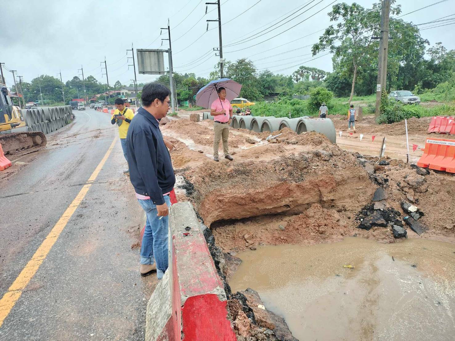 นายมงคล แสนวงษา ผู้อำนวยการแขวงทางหลวงร้อยเอ็ด พร้อมด้วยนายสุขสันต์ ปากวิเศษ หัวหน้าหมวดทางหลวงโพนทอง ได้ร่วมลงพื้นที่ตรวจสอบ แนะนำการปฏิบัติงานขุดลอกคลองในบริเวณพื้นที่ก่อสร้าง และได้ทำการวางท่อจัดทำฝายกั้นเพื่อชะลอความเร็วของน้ำ เพื่อให้สะดวกในการปฏิบัติงาน การวางท่อ Cross Drain ขนาด 3 แถว เส้นผ่าศูนย์กลาง 1.20 เมตร ตามสัญญาที่ รอ.37/2566 ลงวันที่ 16 กุมภาพันธ์ 2566 งานโครงการพัฒนาการค้า การลงทุนอุตสาหกรรมและการท่องเที่ยว กิจกรรมเพิ่มประสิทธิภาพทางหลวง ในทางหลวงหมายเลข 2044 ตอน หนองดง - โพนทอง ระหว่าง กม.46+338 - กม.47+861 โดยมีห้างหุ้นส่วนจำกัด จั่วเซ้งค้าไม้ เป็นผู้รับจ้าง