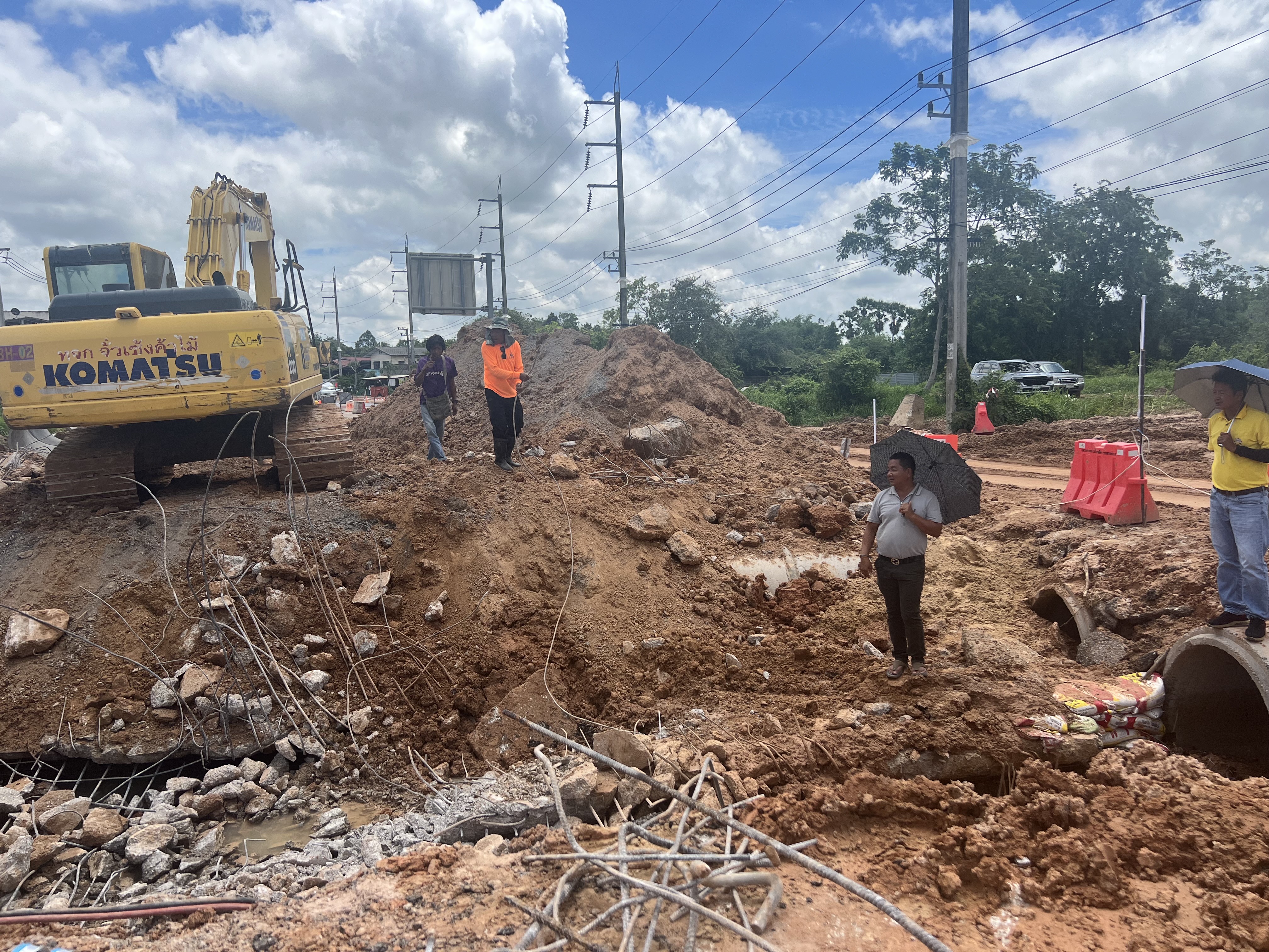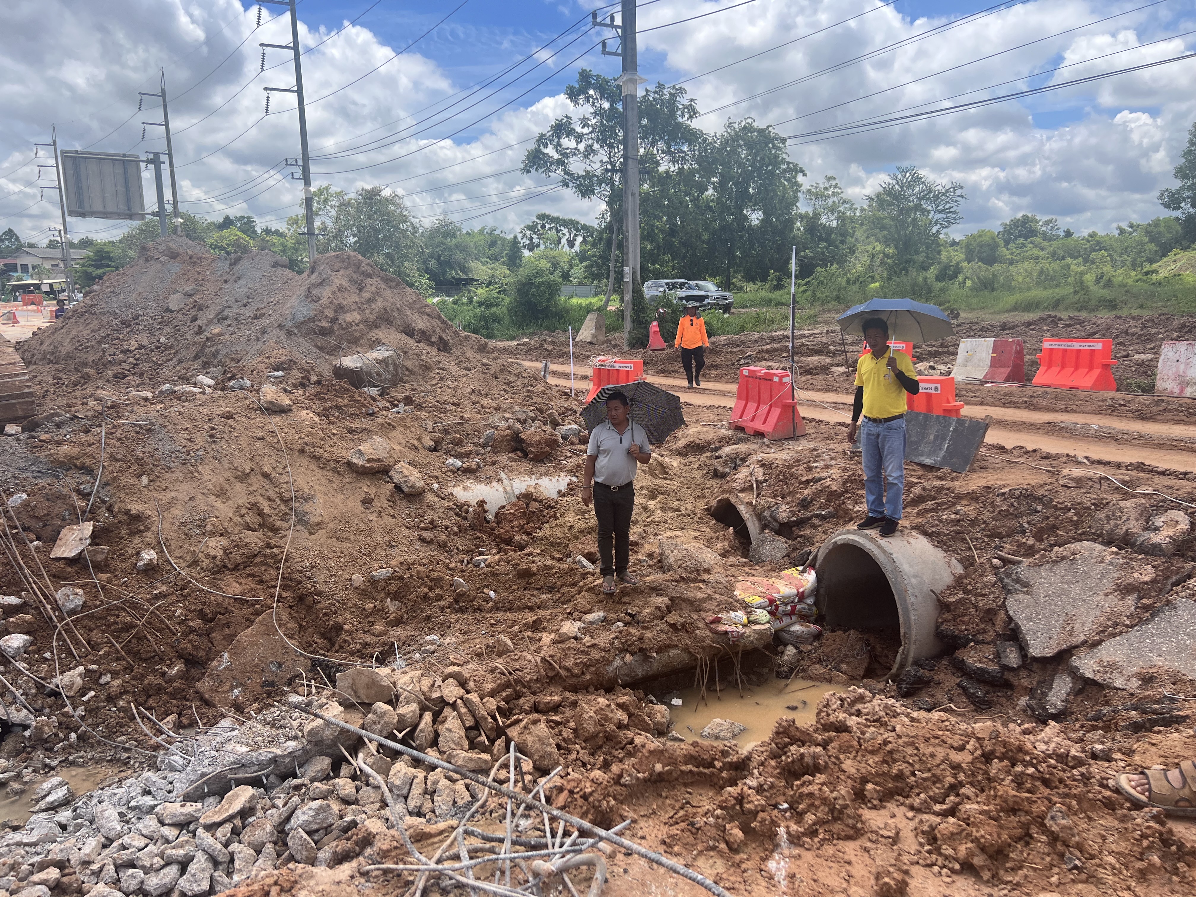 "ร่วมลงพื้นที่ตรวจสอบวางแผนการปฏิบัติงาน แก้ไขปัญหา อุปสรรคระหว่างการดำเนินการวางท่อในบริเวณพื้นที่ก่อสร้าง ตามสัญญาที่ รอ.37/2566 ลงวันที่ 16 กุมภาพันธ์ 2566 งานโครงการพัฒนาการค้า การลงทุนอุตสาหกรรมและการท่องเที่ยว กิจกรรมเพิ่มประสิทธิภาพทางหลวง ในทางหลวงหมายเลข 2044 ตอน หนองดง - โพนทอง ระหว่าง กม.46+338 - กม.47+861"