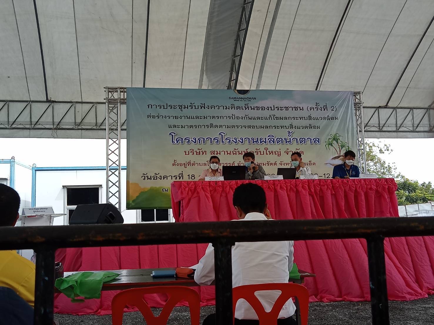 "เข้าร่วมการประชุมรับฟังความคิดเห็นต่อร่างรายงานและมาตรการป้องกันและแก้ไขผลกระทบสิ่งแวดล้อม และมาตรการติดตามตรวจสอบผลกระทบสิ่งแวดล้อม โครงการโรงไฟฟ้าชีวมวล (ชานอ้อย) ของบริษัท สมานฉันท์กรับใหญ่ จำกัด"