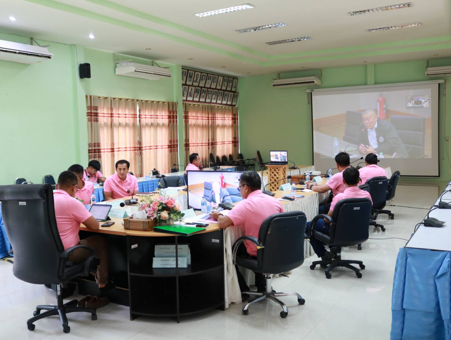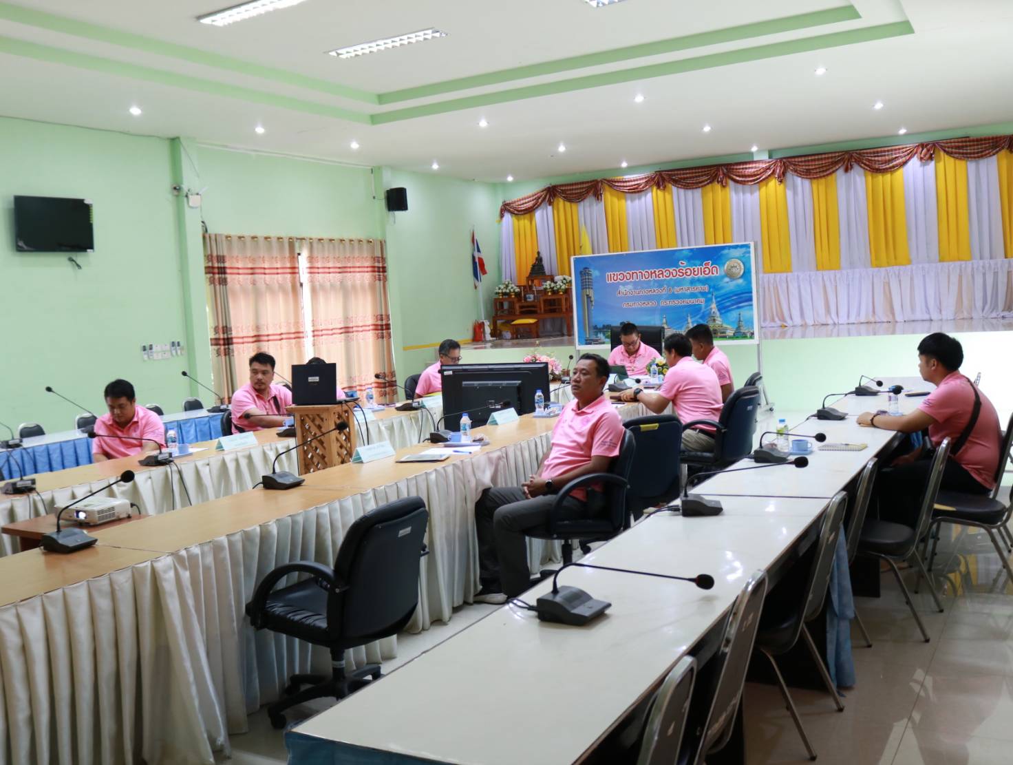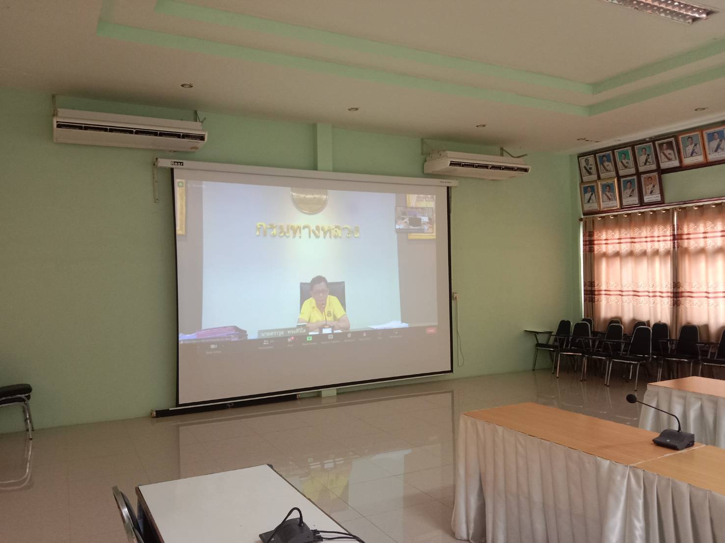 นายมงคล แสนวงษา ผู้อำนวยการแขวงทางหลวงร้อยเอ็ด ,นายสมัย คะนะมะ รองผู้อำนวยการแขวงทางหลวงร้อยเอ็ด ฝ่ายวิศวกรรม ,นายสถิต คำพิชิต รองผู้อำนวยการแขวงทางหลวงร้อยเอ็ด ฝ่ายปฏิบัติการ และเจ้าหน้าที่แขวงทางหลวงร้อยเอ็ด ได้เข้าร่วมประชุมชี้แจง การสำรวจข้อมูล เพื่ออธิบายวิธีการกรอกข้อมูลสำรวจสะพานเบื้องต้น โดย Google Forms ในรูปแบบการประชุมทางไกลผ่านสื่ออิเล็กทรอนิกส์ (Zoom Cloud Meeting) ณ ห้องประชุมจุลละโพธิ แขวงทางหลวงร้อยเอ็ด