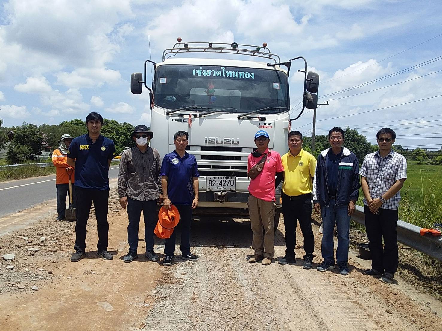 นายมงคล แสนวงษา ผู้อำนวยการแขวงทางหลวงร้อยเอ็ด มอบหมายให้นายศุภชัย สัตยรักษ์ หัวหน้างานปรับซ่อม พร้อมด้วยนายสุขสันต์ ปากวิเศษ หัวหน้าหมวดทางหลวงโพนทอง และคณเจ้าหน้าที่จากสำนักงานทางหลวงที่ 8 เข้าร่วมตรวจสอบเครื่องจักรของ หจก.เซ่งฮวดโพนทอง เพื่อขอต่อทะเบียนผู้รับเหมางานก่อสร้างและบำรุงทางประเภทที่6(งานบูรณะทางแบบ Pavement In-Place Recycling) แปลงทดลอง ในทางหลวงหมายเลข 2418 ตอน โพนทอง - หนองพอก ระหว่าง กม.2+800 - กม.2+900