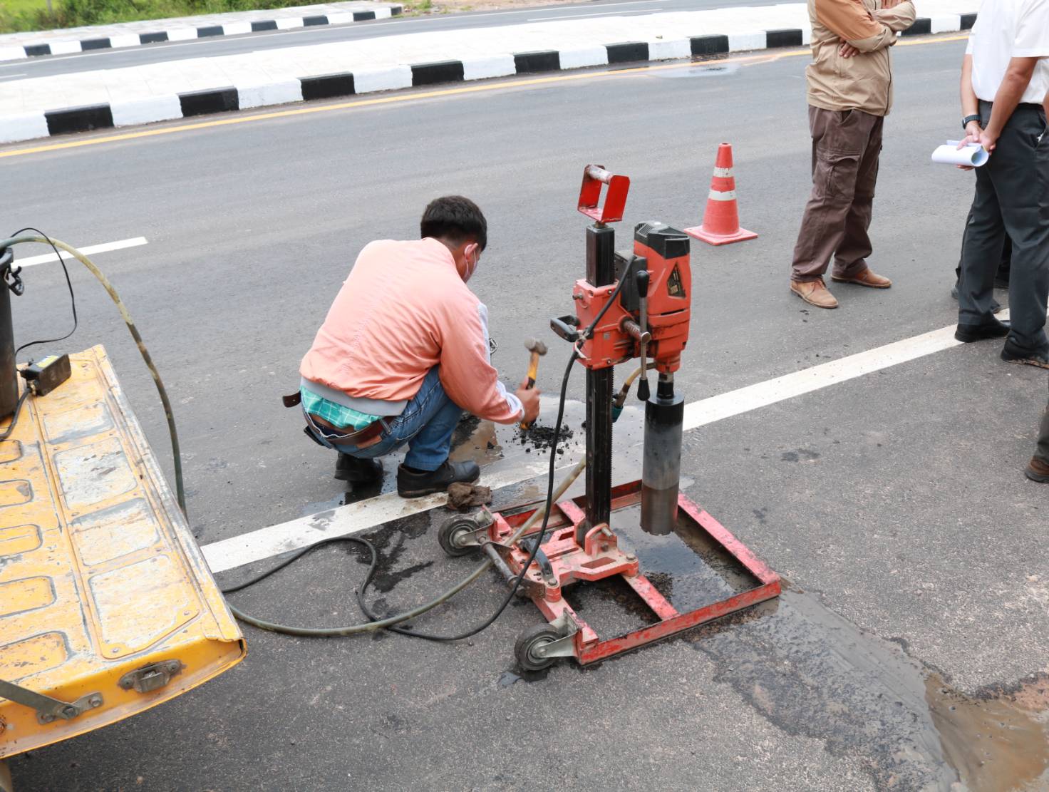 นายชาญพินิจ พินิจศักดิ์ รองผู้อำนวยการสำนักงานทางหลวงที่ 8 ประธานกรรมการตรวจรับพัสดุ ,นายมงคล แสนวงษา ผู้อำนวยการแขวงทางหลวงร้อยเอ็ด กรรมการตรวจรับพัสดุ ,นายชัยธวัช ฉลวยศรี ผุ้อำนวยการส่วนสำรวจและออกแบบ สำนักงานทางหลวงที่ 8 ,นายสถาพร ภาโนมัย ผู้อำนวยการส่วนควบคุมงานก่อสร้าง สำนักงานทางหลวงที่ 8 และนายสถิต คำพิชิต รองผู้อำนวยการแขวงทางหลวงร้อยเอ็ด ฝ่ายปฏิบัติการ ผู้ควบคุมงาน ร่วมลงพื้นที่ตรวจรับงาน ตามสัญญาเลขที่ รอ.19/2566 ลงวันที่ 10 พฤศจิกายน 2565 งานก่อสร้างทางหลวงผ่านย่านชุมชน ในทางหลวงหมายเลข 2043 ตอน ร้อยเอ็ด - ยางเฌอ ระหว่าง กม.2+430 - กม.3+350 โดยมีบริษัท เพชรสมวงศ์การโยธา เป็นผู้รับจ้าง