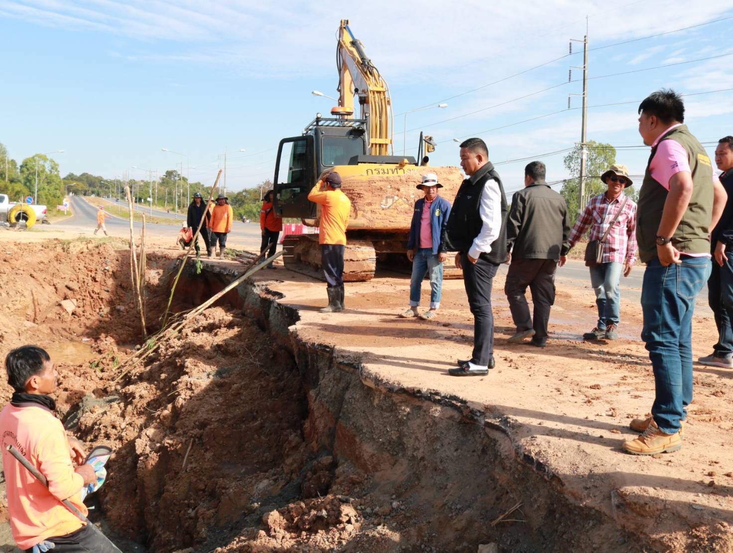 "ร่วมลงพื้นที่ตรวจสอบ แนะนำการปฏิบัติงาน ปรับปรุงแก้ไขท่อระบายน้ำและทางระบายน้ำและทางระบายน้ำ และเพิ่มช่องระบายน้ำเพื่อแก้ไขปัญหาน้ำท่วมขัง คันทางชำรุดจากการกัดเซาะ ทล.23 ตอน ร้อยเอ็ด - เสลภูมิ ที่ กม.139+500"