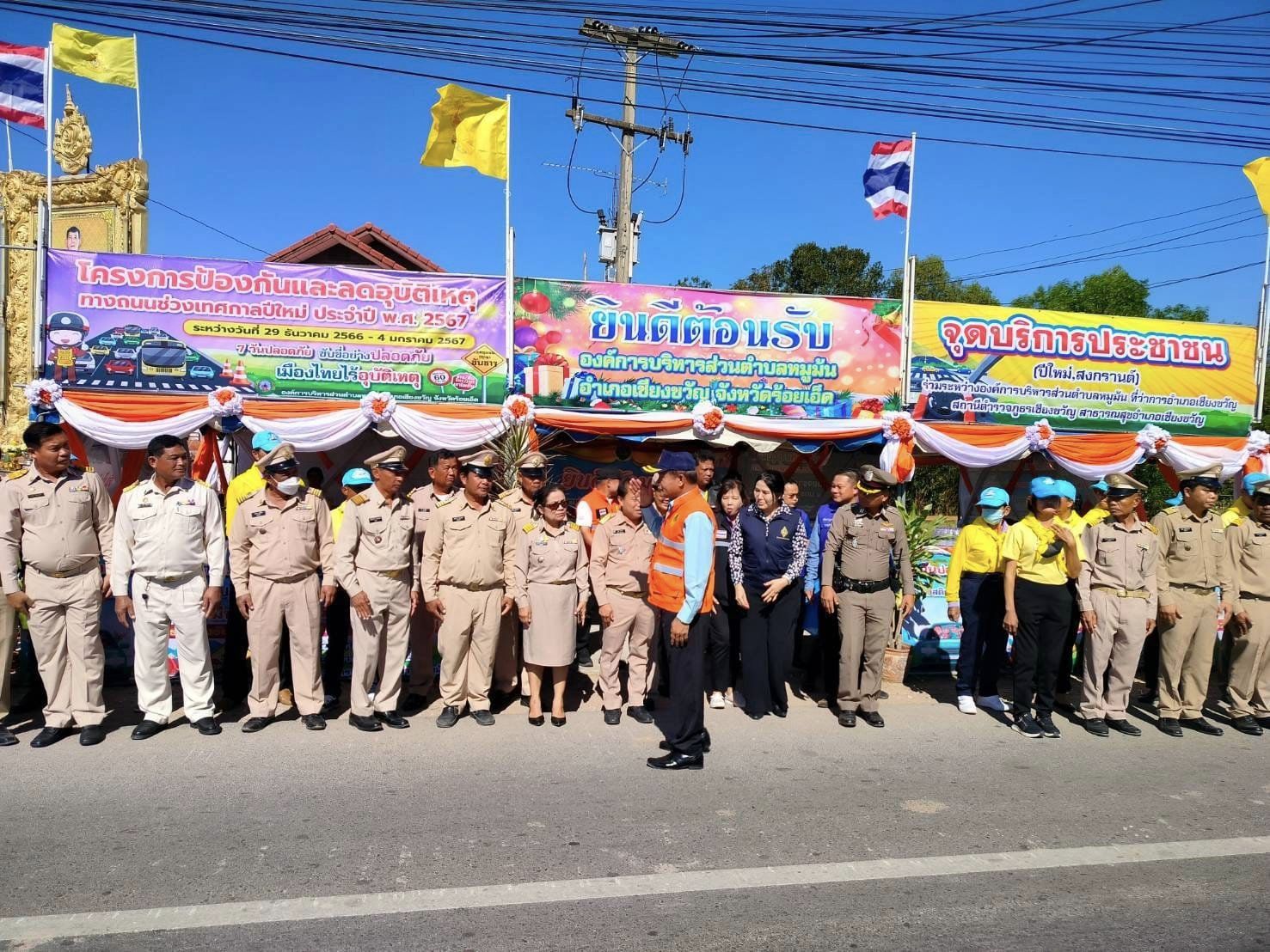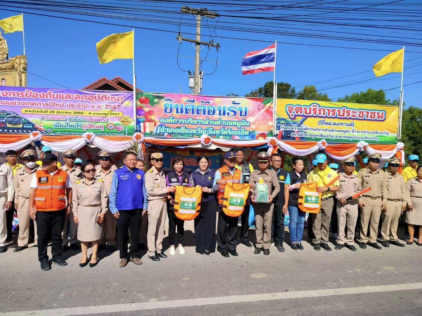 พร้อมกับมอบของเพื่อเป็นขวัญและกำลังใจแก่เจ้าหน้าที่ปฏิบัติงาน ในการอำนวยความสะดวกปลอดภัยให้กับประชาชนผู้ใช้เส้นทางในช่วงเทศกาลปีใหม่ พ.ศ. 2567