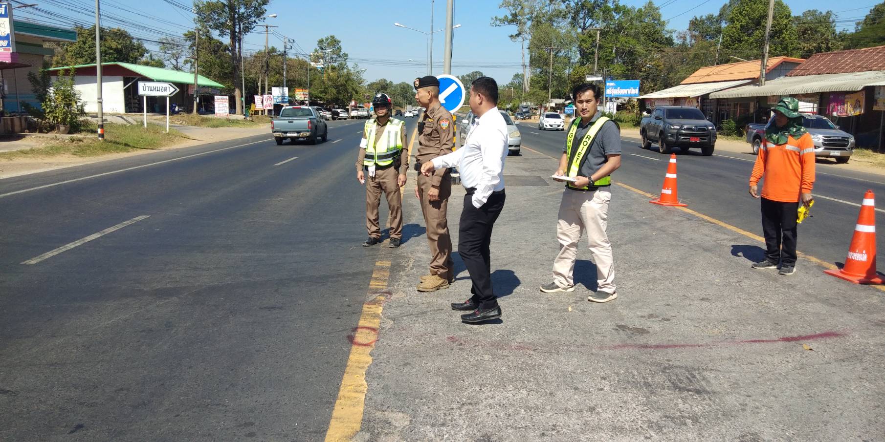 “ร่วมลงพื้นที่ตรวจสอบจุดเสี่ยงบริเวณจุดกลับรถบ้านดอกไม้ เพื่อวางแผนป้องกันและแก้ไขปัญหาอุบัติเหตุ ทล.202 ตอน เกษตรวิสัย - สุวรรณภูมิ ระหว่าง กม.209 + 250 - กม.209 + 602”