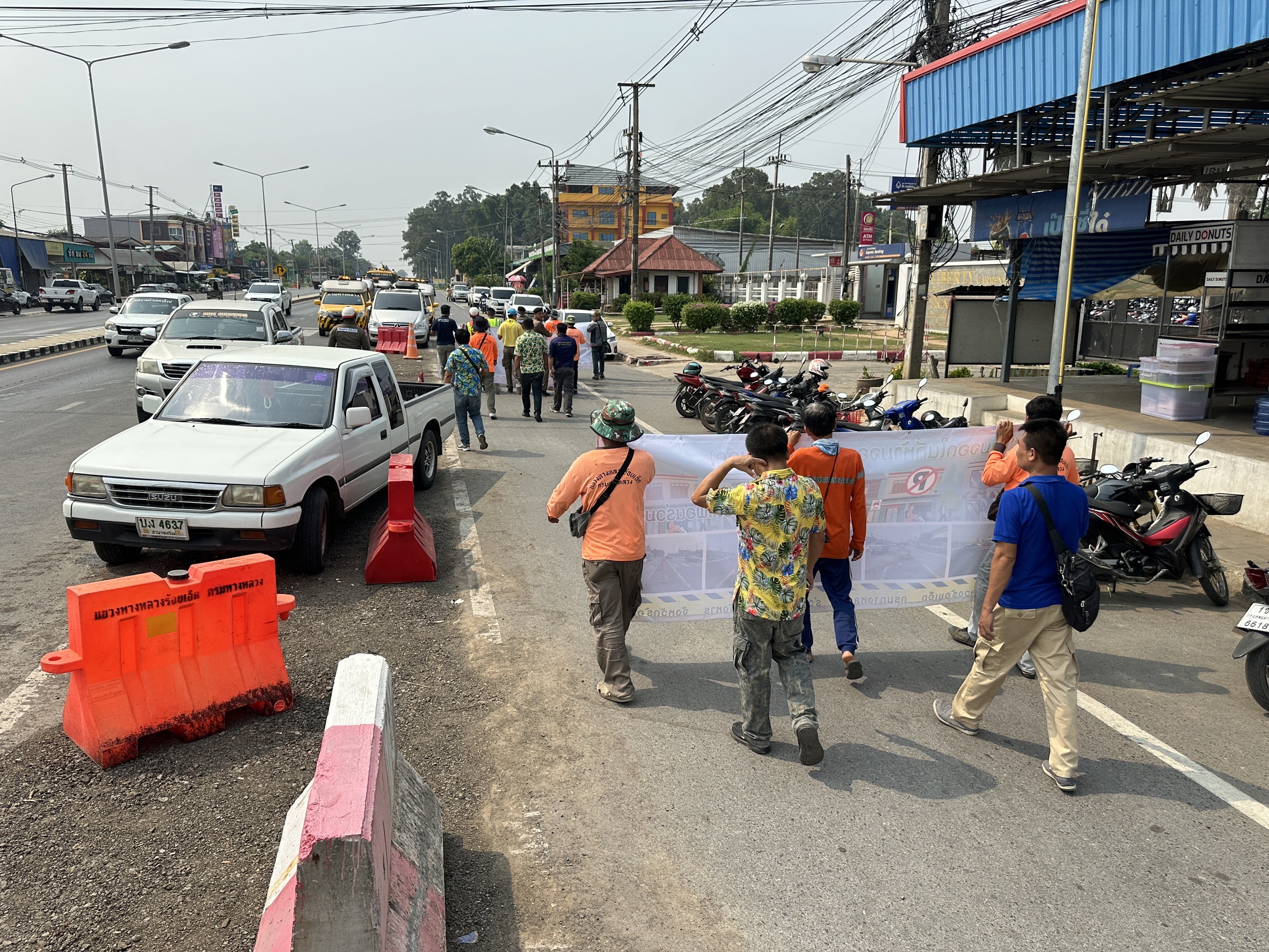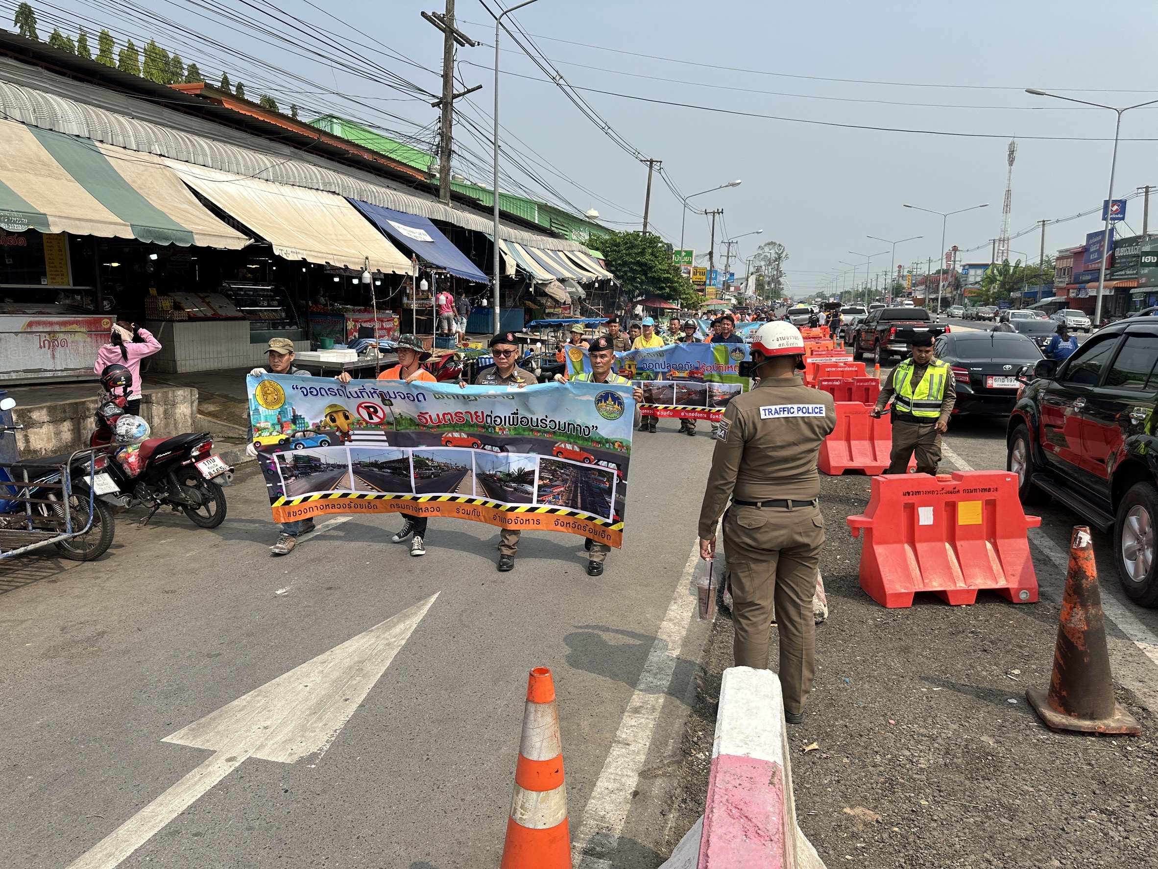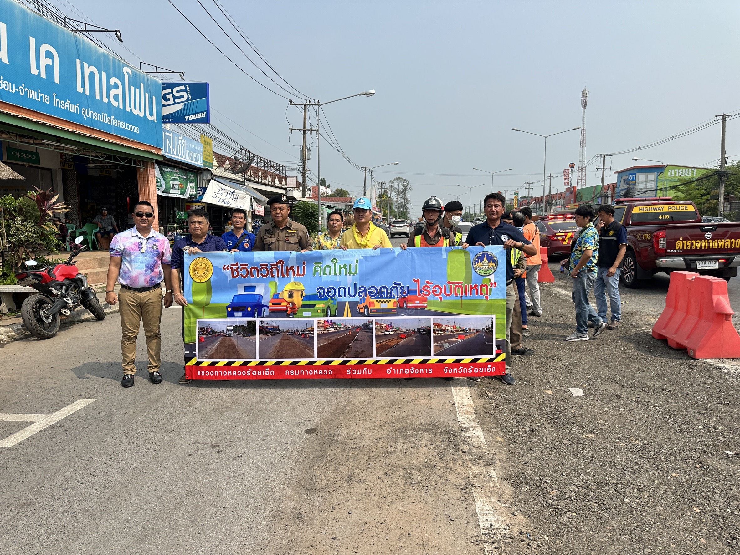 "ร่วมรณรงค์การปฏิบัติตามกฎหมาย ห้ามจอดในที่ห้ามจอด การจัดระเบียบการจราจร หน้าตลาดจังหาร ในทางหลวงหมายเลข 214 ตอน ลำชี – ร้อยเอ็ด ระหว่าง กม.37+500 - กม.38+300 ด้านขวาทาง"