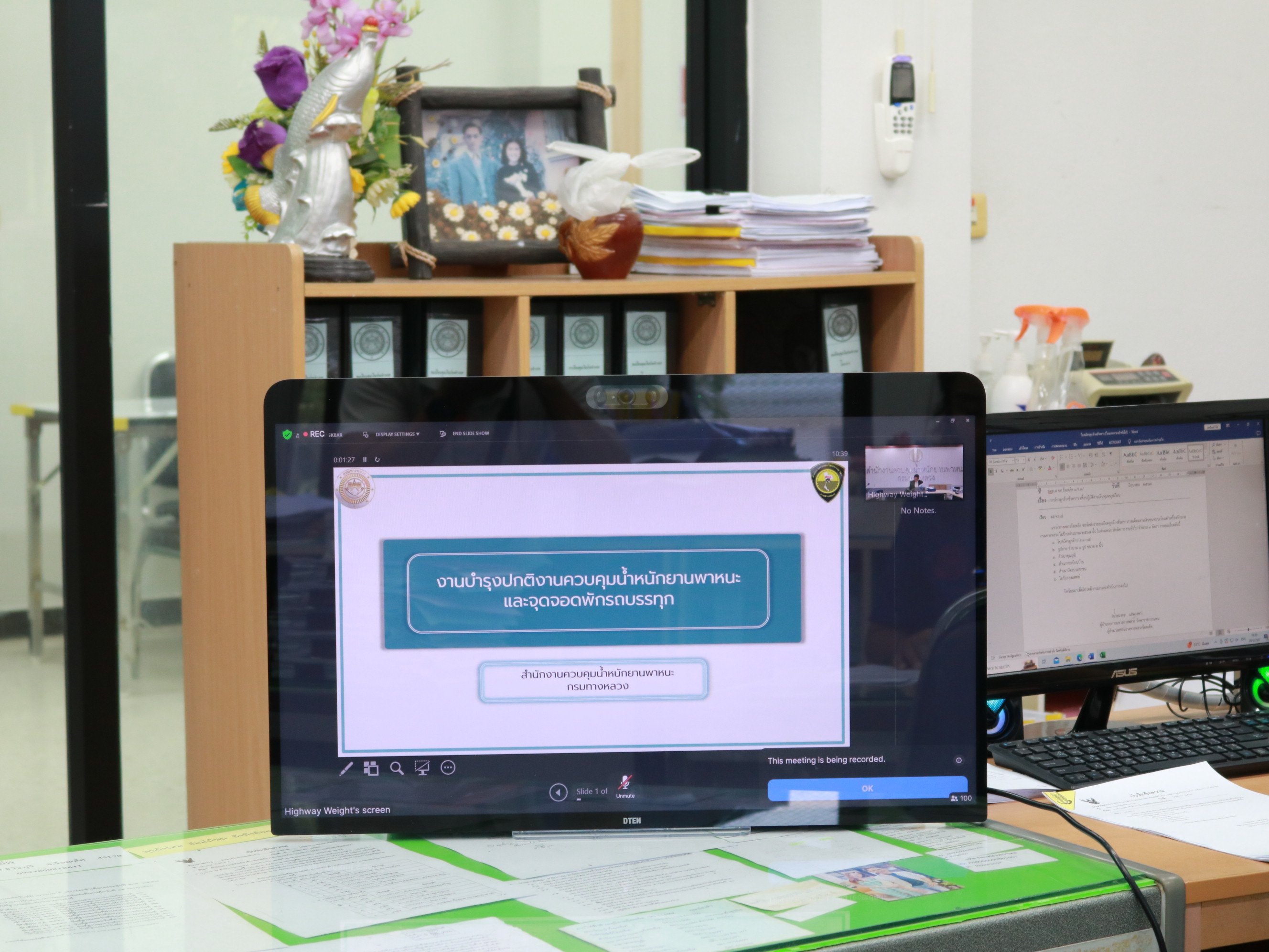 นายมงคล แสนวงษา ผู้อำนวยการแขวงทางหลวงร้อยเอ็ด มอบหมายให้นางรฐา ชำนาญยงค์ รองผู้อำนวยการแขวงทางหลวงร้อยเอ็ด ฝ่ายบริหาร ,นางสาววิภาพร เกตุจังหาร เจ้าพนักงานการเงินและบัญชีชำนาญงาน และเจ้าหน้าที่งานการเงินและบัญชี ได้เข้าร่วมประชุมงานบำรุงปกติงานควบคุมน้ำหนักยานพาหนะและจุดจอดพักรถบรรทุก โดยประชุมผ่านสื่ออิเล็กทรอนิกส์ในระบบ Zoom Cloud Meeting ณ ห้องการเงินและบัญชี แขวงทางหลวงร้อยเอ็ด