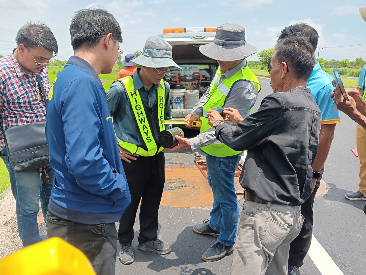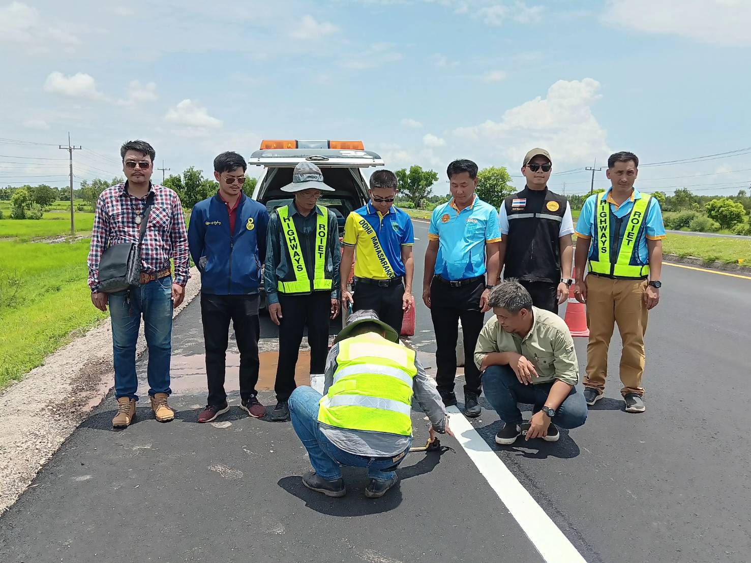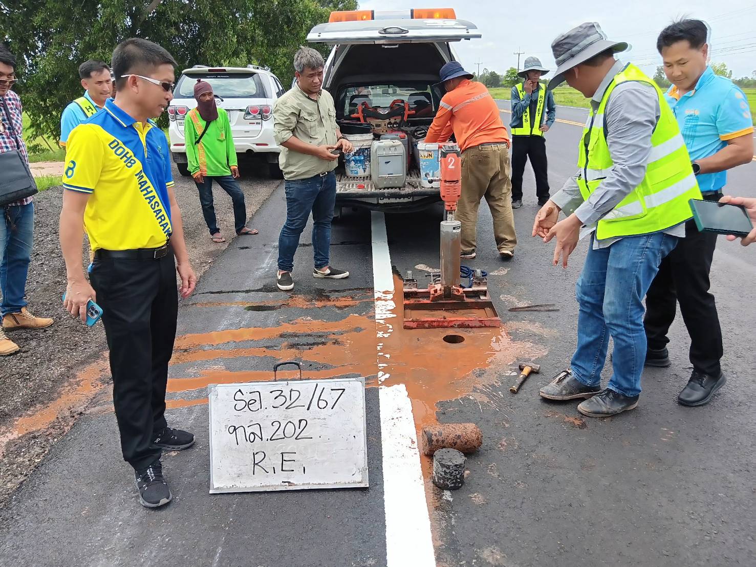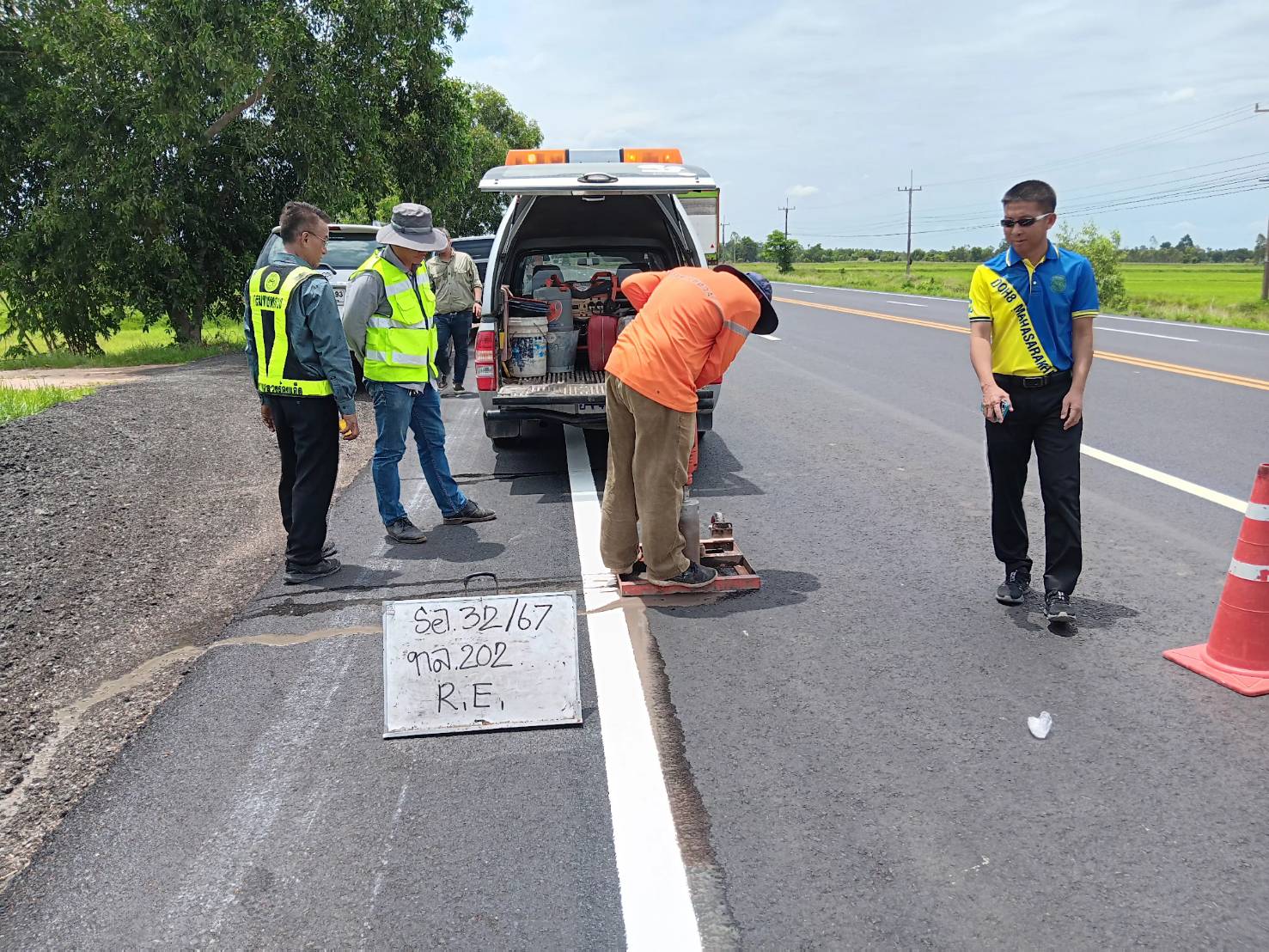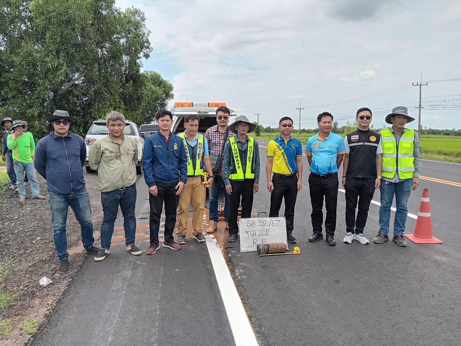 นายชัยธวัช พรหมวิชัย ผู้อำนวยการสำนักงานทางหลวงที่ 8 (มหาสารคาม) ประธานกรรมการตรวจรับพัสดุ ,นายมงคล แสนวงษา ผู้อำนวยการแขวงทางหลวงร้อยเอ็ด กรรมการตรวจรับพัสดุ และคณะกรรมการฯ ร่วมตรวจรับพัสดุ ตามสัญญาที่ รอ.32/2567 ลงวันที่ 9 พฤษภาคม 2567 โครงการสร้างกิจกรรมบำรุงรักษาทางหลวง ปี 2567 รหัสงาน 24100 งานบูรณะทางผิวแอสฟัลต์ ของแขวงทางหลวงร้อยเอ็ด ในทางหลวงหมายเลข 202 ตอน เกษตรวิสัย - สุวรรณภูมิ ระหว่าง กม.199+015 - กม.200+034 และระหว่าง กม.204+700 - กม.205+780 โดยมี บริษัท ทีเอฟซีโรดคอนสตรัคชั่น จำกัด เป็นผู้รับจ้าง