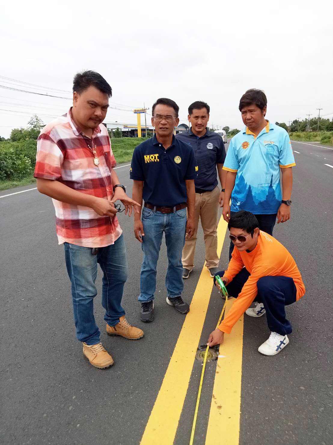 นายสถิต คำพิชิต รองผู้อำนวยการแขวงทางหลวงร้อยเอ็ด ฝ่ายปฏิบัติการ ประธานกรรมการตรวจรับพัสดุ พร้อมด้วยคณะกรรมการฯ นายศุภพรชัย ขามรัตน์ หัวหน้าหมวดทางหลวงเมืองสรวง ,นายยุทธศักดิ์ สอนสุภาพ วิศวกรโยธาปฏิบัติการ ,นายพิทักษ์ ทาตะนาม หัวหน้าหมวดทางหลวงเกษตรวิสัย ผู้ควบคุมงาน โครงการก่อสร้าง ตามใบสั่งจ้าง 635/-/67/155 ลงวันที่ 7 พฤษภาคม 2567 กิจกรรมอำนวยความปลอดภัยทางถนนปี 2567 งานอำนวยความปลอดภัยเพื่อป้องกันและแก้ไขอุบัติเหตุทางถนน รหัสงาน 31300 งานเครื่องหมายนำทาง ในทางหลวงหมายเลข 202 ตอน ห้วยลำเตา - เกษตรวิสัย ระหว่าง กม.183+770 - กม.186+300 ,ทางหลวงหมายเลข 202 ตอน เกษตรวิสัย - สุวรรณภูมิ ระหว่าง กม.190+000 - กม.190+950 และในทางหลวงหมายเลข 214 ตอน จตุรพักตรพิมาน - ห้วยพลับพลา ระหว่าง กม.100+000 - กม.104+020 โดยมี ห้างหุ้นส่วนจำกัด ไทยเวย์โรดไลน์ เป็นผู้รับจ้าง