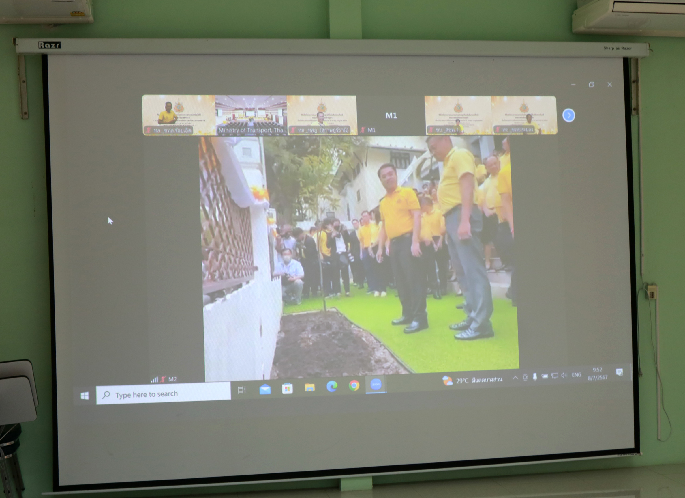 นายสถิต คำพิชิต รองผู้อำนวยการแขวงทางหลวงร้อยเอ็ด ฝ่ายปฏิบัติการ พร้อมด้วยนางรฐา ชำนาญยงค์ รองผู้อำนวยการแขวงทางหลวงร้อยเอ็ด ฝ่ายบริหาร ได้เข้าร่วมพิธีเปิด ”โครงการคมนาคมร่วมใจปลูกต้นไม้ เฉลิมพระเกียรติพระบาทสมเด็จพระเจ้าอยู่หัวเนื่องในโอกาสพระราชพิธีมหามงคลเฉลิมพระชนมพรรษา 6 รอบ 28 กรกฎาคม 2567 และรับมอบกล้าไม้” ในการประชุมผ่านระบบ Zoom Cloud Meeting ณ ห้องประชุมจุลละโพธิ แขวงทางหลวงร้อยเอ็ด โดยมี นายสุริยะ จึงรุ่งเรืองกิจ รองนายกรัฐมนตรี และรัฐมนตรีว่าการกระทรวงคมนาคม เป็นประธานในพิธี ณ หอประชุมราชรถสโมสร อาคารราชรถสโมสร ชั้น 3 กระทรวงคมนาคม