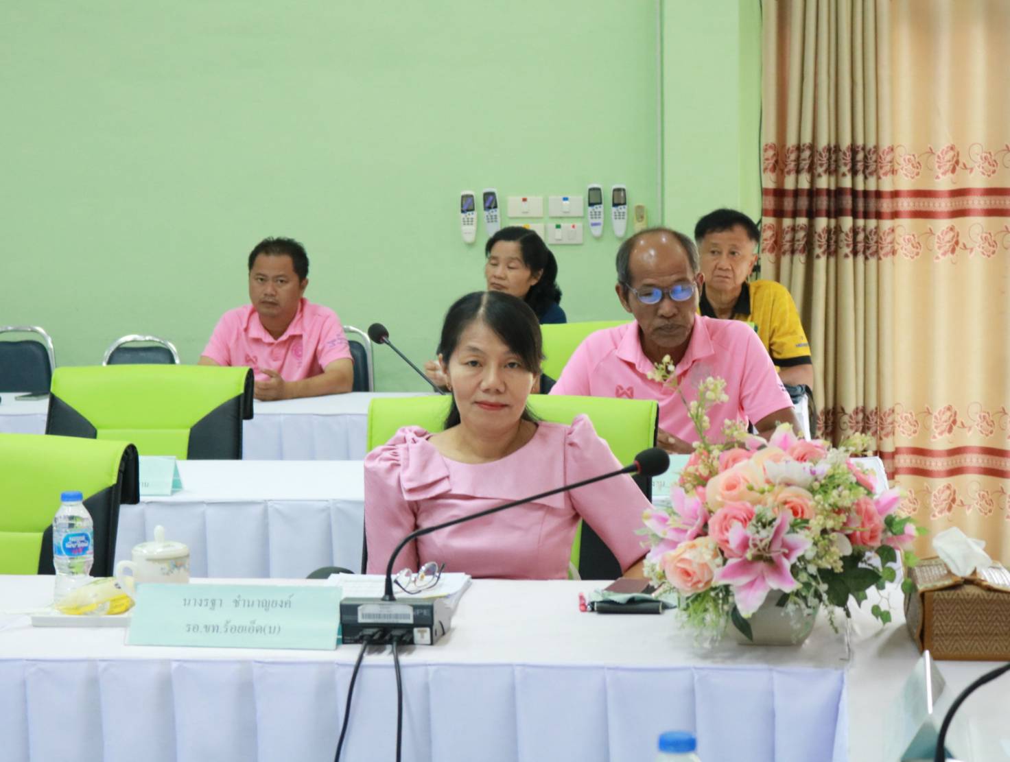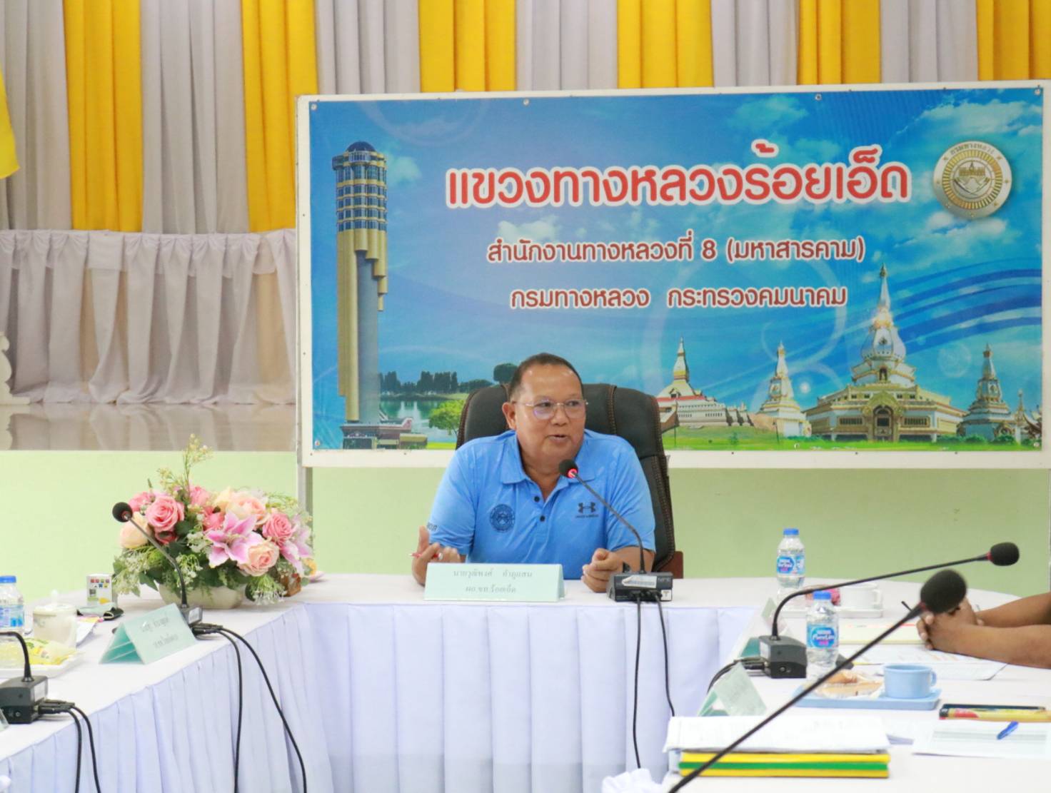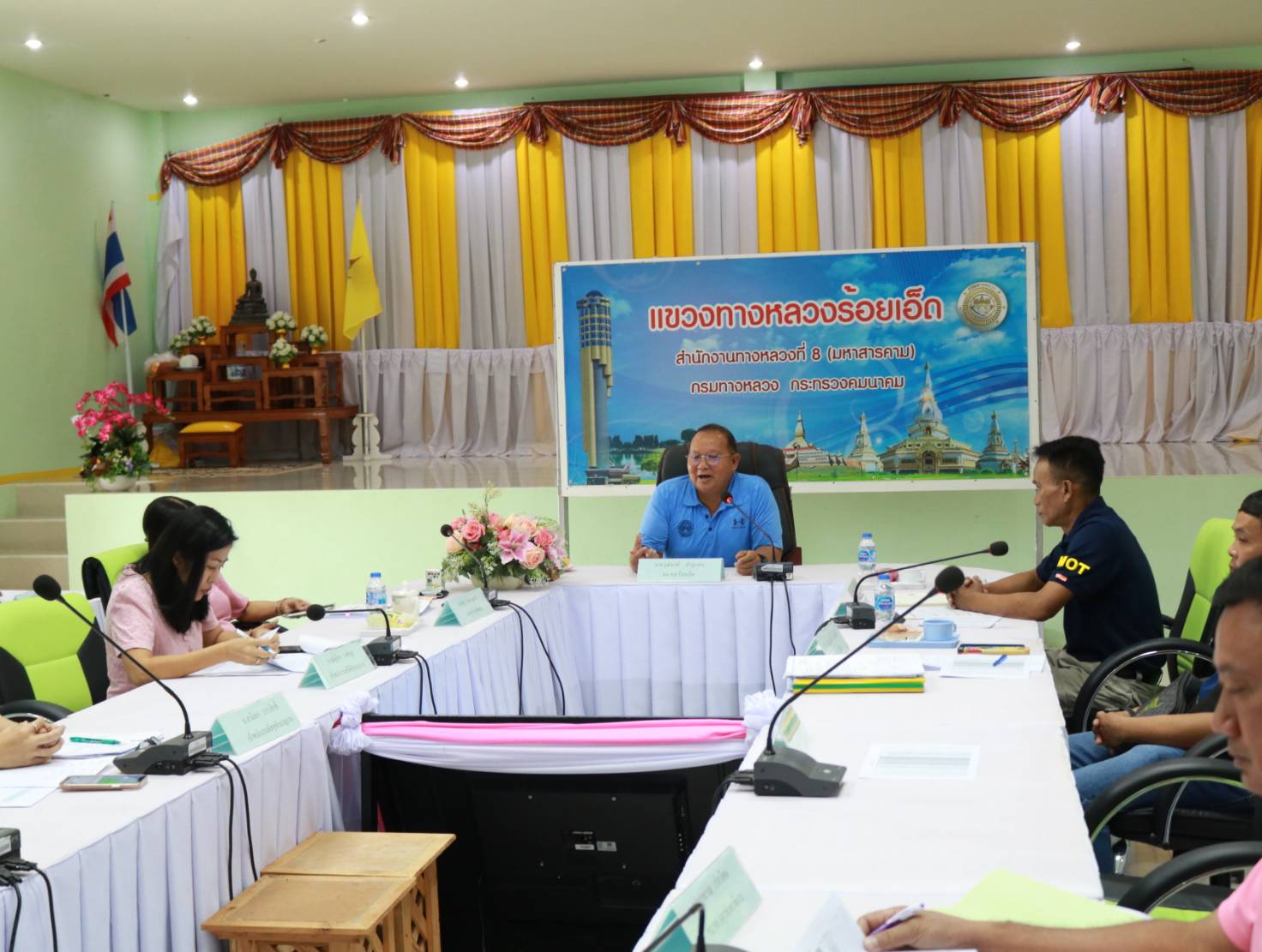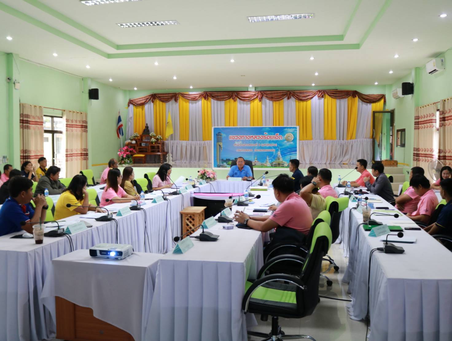 นายวุฒิพงศ์ คำภูแสน ผู้อำนวยการแขวงทางหลวงร้อยเอ็ด ,นายสถิต คำพิชิต รองผู้อำนวยการแขวงทางหลวงร้อยเอ็ด ฝ่ายปฏิบัติการ ,นางรฐา ชำนาญยงค์ รองผู้อำนวยการแขวงทางหลวงร้อยเอ็ด ฝ่ายบริหาร พร้อมคณะเจ้าหน้าที่ ทุกส่วน/ฝ่าย ร่วมประชุมเพื่อมอบนโยบายในการปฏิบัติงานในโอกาสเข้ารับตำแหน่งใหม่ ณ ห้องประชุมจุลละโพธิ แขวงทางหลวงร้อยเอ็ด