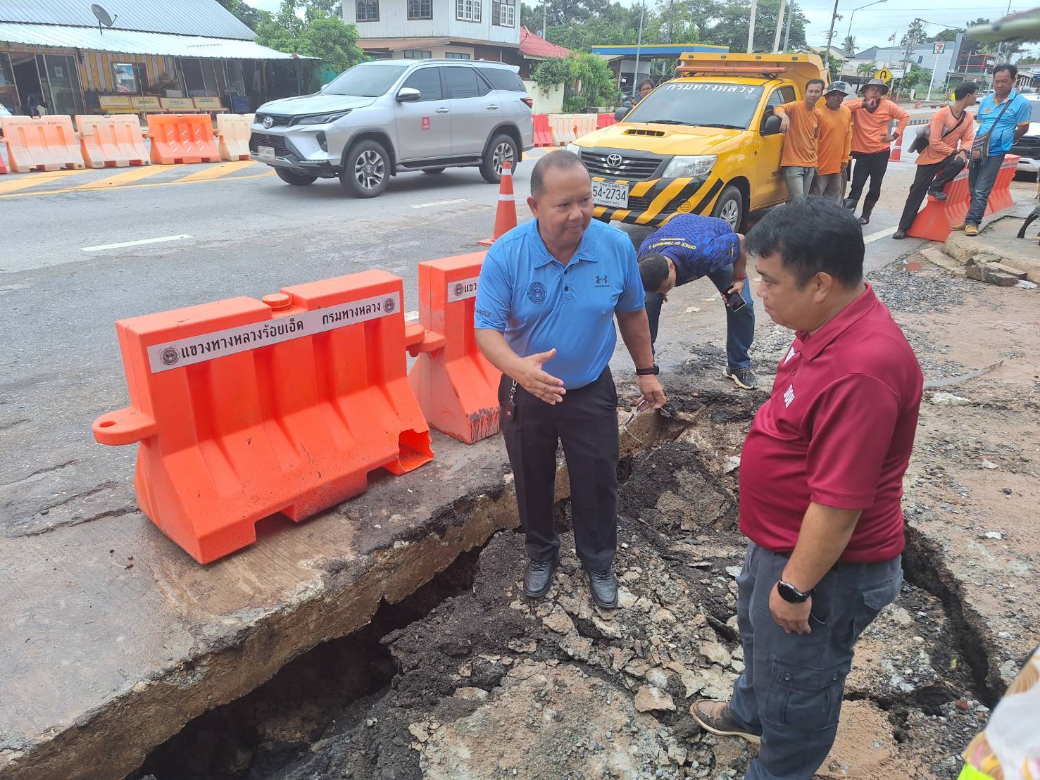 นายวุฒิพงศ์ คำภูแสน ผู้อำนวยการแขวงทางหลวงร้อยเอ็ด พร้อมด้วยนายณัฐพล เยี่ยมชัยภูมิ หัวหน้าหมวดทางหลวงเสลภูมิ ได้ร่วมลงพื้นที่ตรวจสอบแนะนำแก้ไขปัญหา น้ำจากท่อระบายไหลกัดเซาะคอสะพานแม่น้ำชีเกิดทรุดตัว ในทางหลวงหมายเลข 2044 ตอน ร้อยเอ็ด – หนองดง ที่ กม.21+500 ด้านซ้ายทาง