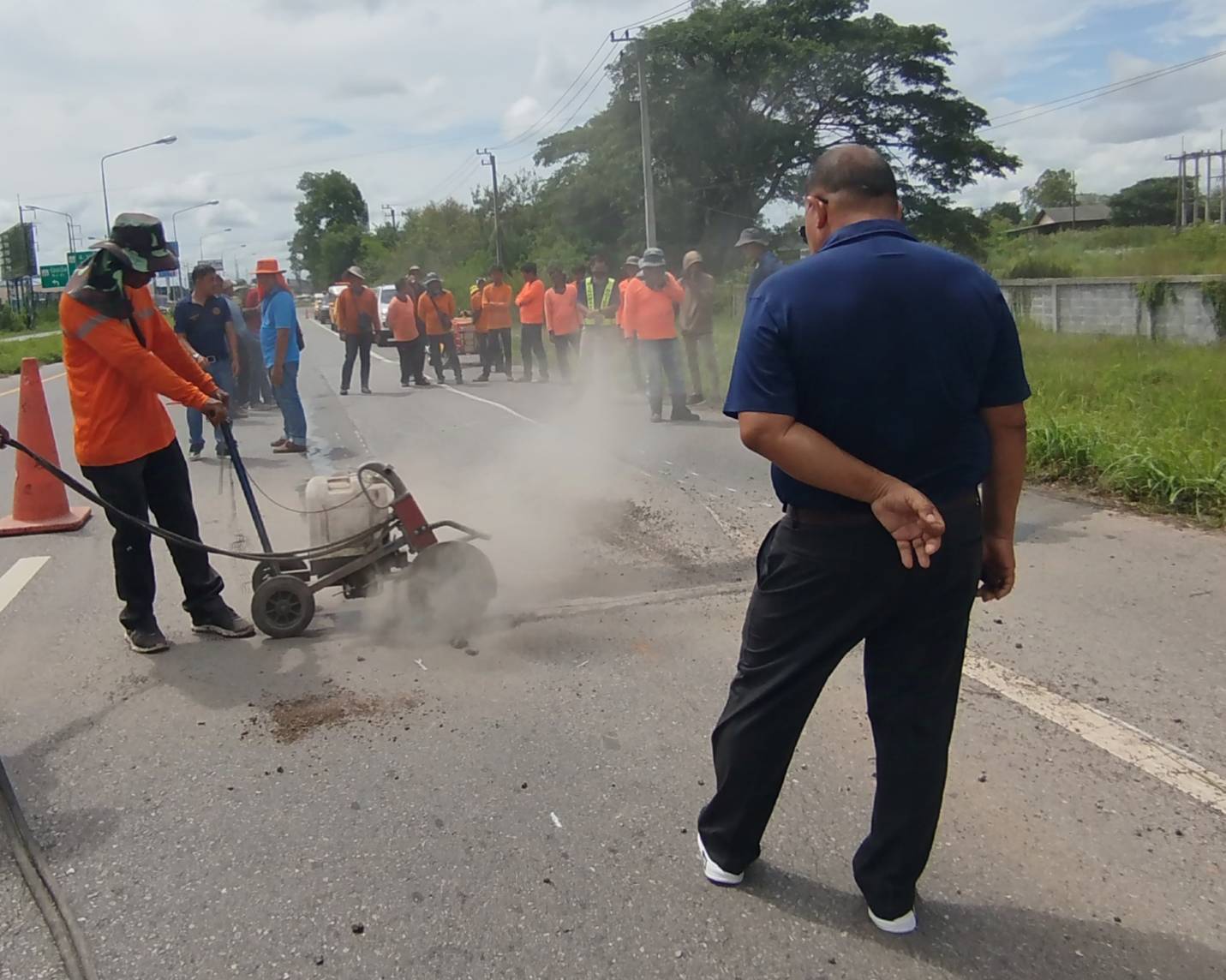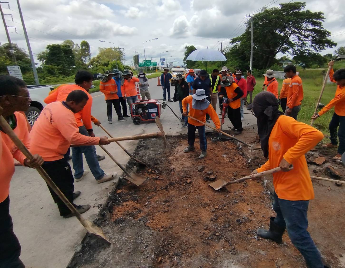 นายวุฒิพงศ์ คำภูแสน ผู้อำนวยการแขวงทางหลวงร้อยเอ็ด พร้อมด้วยนายสถิต คำพิชิต รองผู้อำนวยการแขวงทางหลวงร้อยเอ็ด ฝ่ายปฏิบัติการ และหัวหน้าหมวดทางหลวงในสังกัดแขวงทางหลวงร้อยเอ็ด ได้ร่วมลงพื้นที่จัดโครงการชุมชนนักปฏิบัติ (COP) สำนักงานทางหลวงที่ 8 แขวงทางหลวงร้อยเอ็ด งานบำรุงรักษาทางหลวง ด้วยวิธีการขุดซ่อมผิวทาง (Deep Patching) ครั้งที่ 1 ในทางหลวงหมายเลข 232 ตอน ถนนวงแหวนรอบเมืองร้อยเอ็ด ที่ กม.0+200 เพื่อร่วมกันเรียนรู้รูปแบบและวิธีการที่ดีที่สุด สามารถนำไปถ่ายทอดสู่ผู้ปฏิบัติ เพื่อเพิ่มประสิทธิภาพในการบำรุงทาง