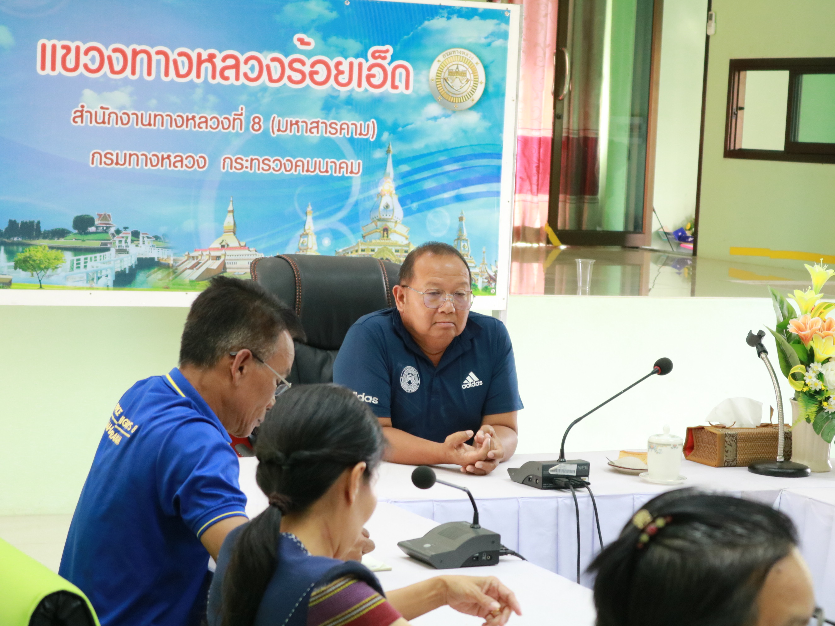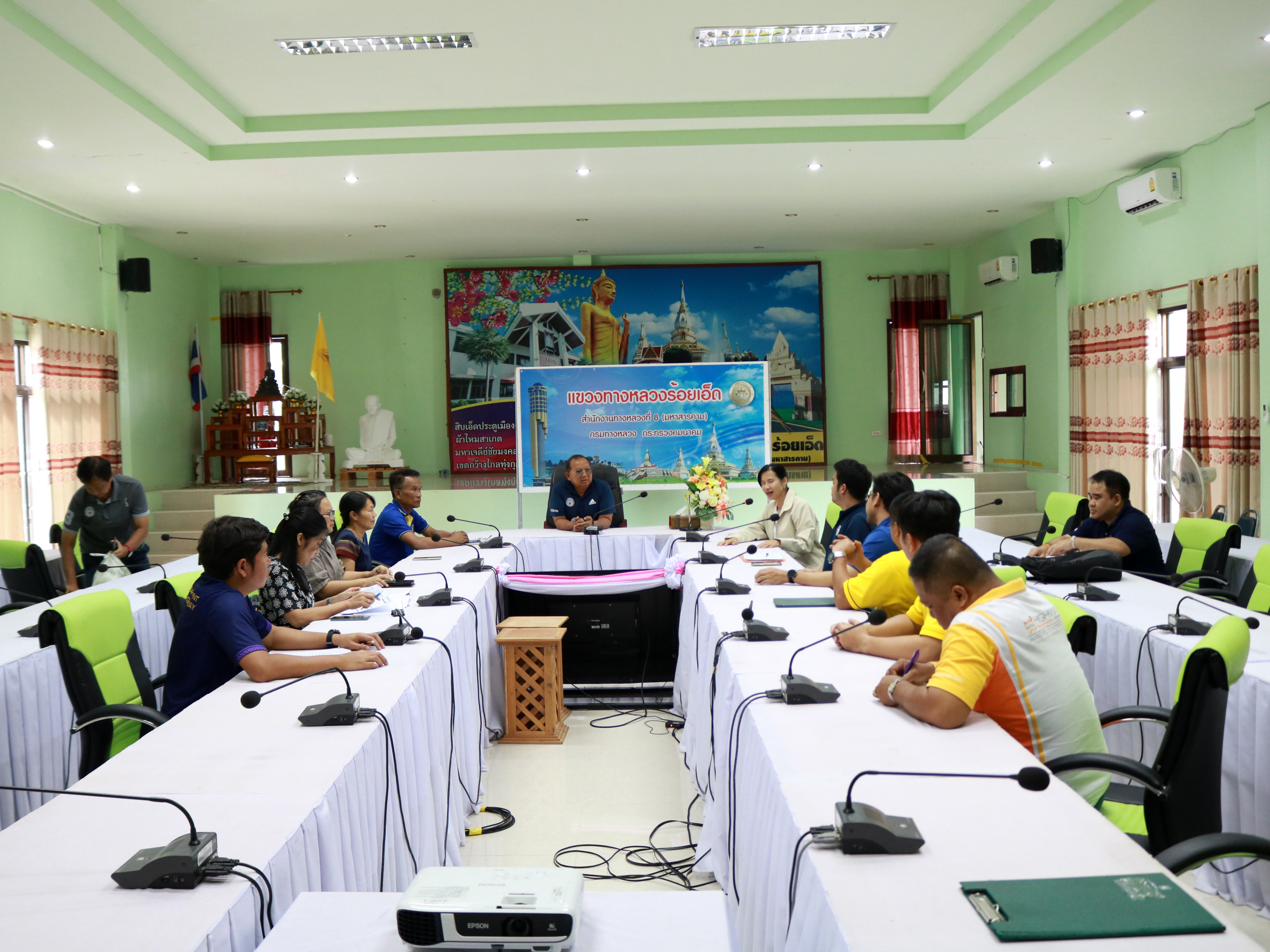 นายวุฒิพงศ์ คำภูแสน ผู้อำนวยการแขวงทางหลวงร้อยเอ็ด ,นายสถิต คำพิชิต รองผู้อำนวยแขวงทางหลวงร้อยเอ็ด ฝ่ายปฏิบัติการ ,นางสาวศิวพร เหมือนสีเลา รองผู้อำนวยการแขวงทางหลวงร้อยเอ็ด ฝ่ายวิศวกรรม ,นางรฐา ชำนาญยงค์ รองผู้อำนวยการแขวงทางหลวงร้อยเอ็ด ฝ่ายบริหาร และเจ้าหน้าที่แขวงทางหลวงร้อยเอ็ด ได้ร่วมให้การต้อนรับเจ้าหน้าที่จากสำนักแผนงาน กรมทางหลวง พร้อมให้ข้อมูลเพื่อประกอบการประเมินผล โครงการของกรมทางหลวง ประจำปีงบประมา พ.ศ. 2568 ณ ห้องประชุมจุลละโพธิ แขวงทางหลวงร้อยเอ็ด