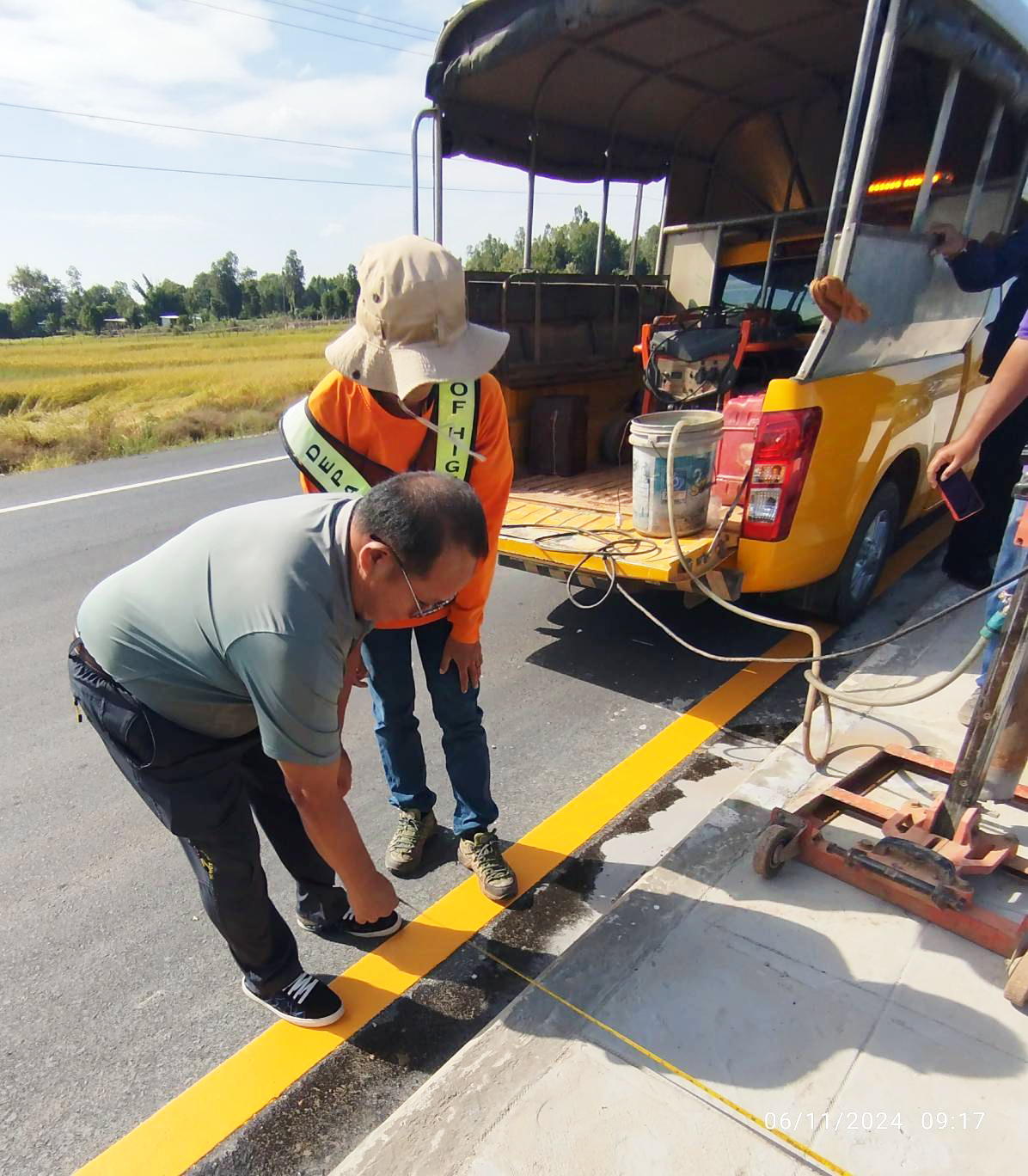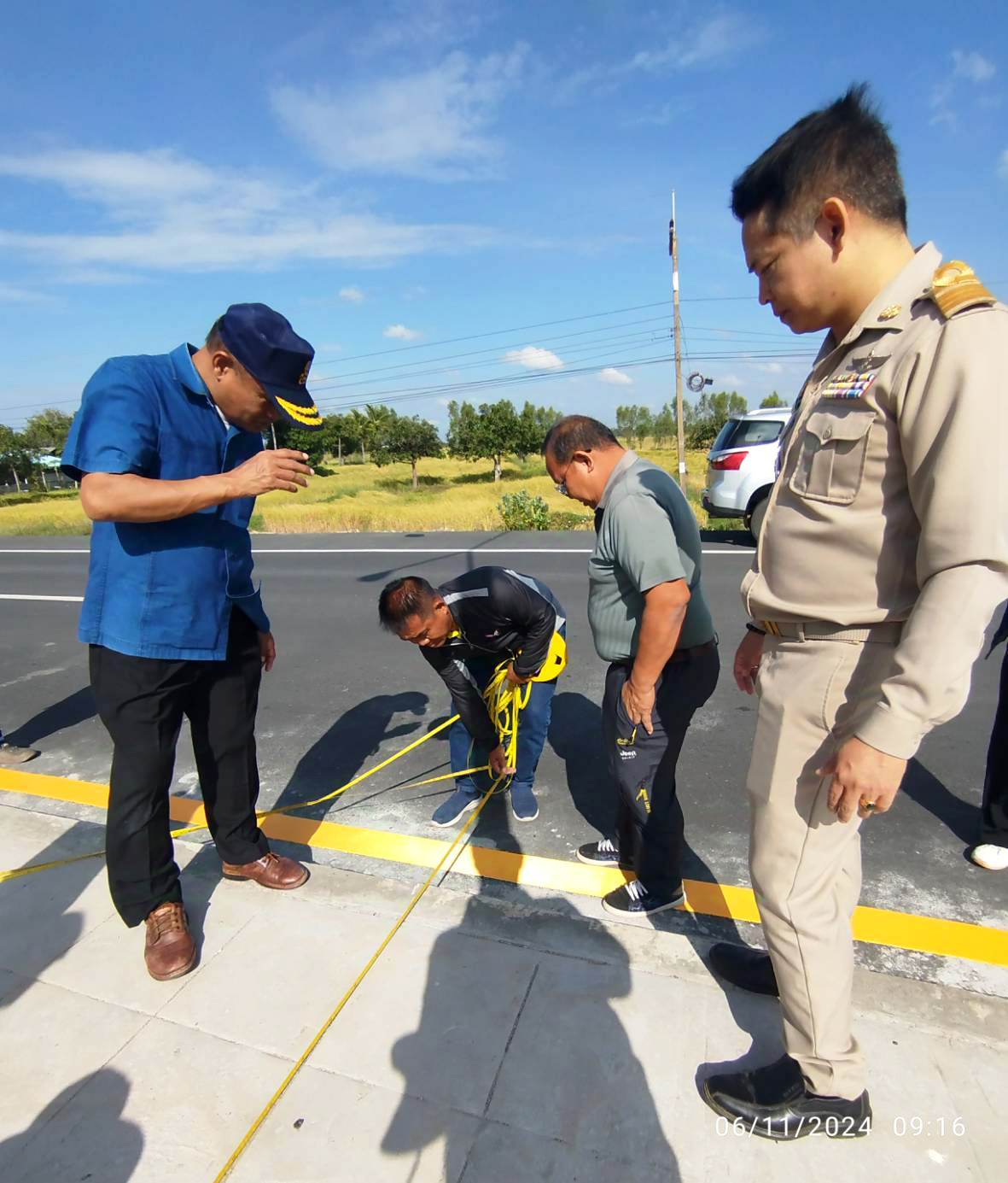 นายชูศักดิ์ ราชบุรี รองผู้ว่าราชการจังหวัดร้อยเอ็ด ประธานกรรมการตรวจรับพัสดุ พร้อมด้วยคณะกรรมการตรวจรับพัสดุ นายวุฒิพงศ์ คำภูแสน ผู้อำนวยการแขวงทางหลวงร้อยเอ็ด ,นายชวมินทร์ ตรีเนตร ผู้อำนวยการกลุ่มงานยุทธศาสตร์และข้อมูลเพื่อการพัฒนาจังหวัด ,นายสถิต คำพิชิต รองผู้อำนวยการแขวงทางหลวงร้อยเอ็ด ฝ่ายปฏิบัติการ และนายธวัช บุรำสูงเนิน นายช่างโยธาชำนาญงาน ผู้ควบคุมงาน ร่วมตรวจรับงานก่อสร้าง ตามสัญญา ที่ รอ.51/2567 ลงวันที่ 31 พฤษภาคม 2567 โครงการพัฒนาโครงข่ายคมนาคมกลุ่มจังหวัดอย่างเป็นระบบเพื่อสนับสนุนการค้า การลงทุน การอุตสาหกรรมและการท่องเที่ยว เชื่อมโยงจังหวัด กลุ่มจังหวัด และภูมิภาค กิจกรรมเพิ่มประสิทธิภาพทางหลวง ในทางหลวงหมายเลข 2116 ตอน ร่องคำ - โพนทอง ระหว่าง กม.51+600 - กม.52+600 โดยมี ห้างหุ้นส่วนจำกัด เพชรสมวงศ์การโยธา เป็นผู้รับจ้าง