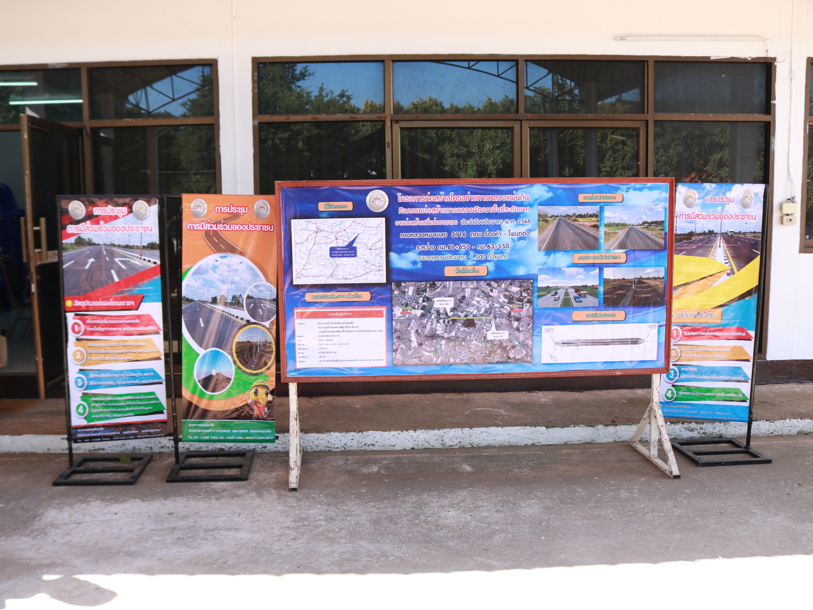 “ร่วมประชุมการมีส่วนร่วมของประชาชน โครงการก่อสร้างโครงข่ายทางหลวงแผ่นดิน กิจกรรมก่อสร้างเพิ่มช่องจราจรระดับภาค ทล.2116 ตอน ร่องคำ - โพนทอง ระหว่าง กม.7+360 - กม.14+400”