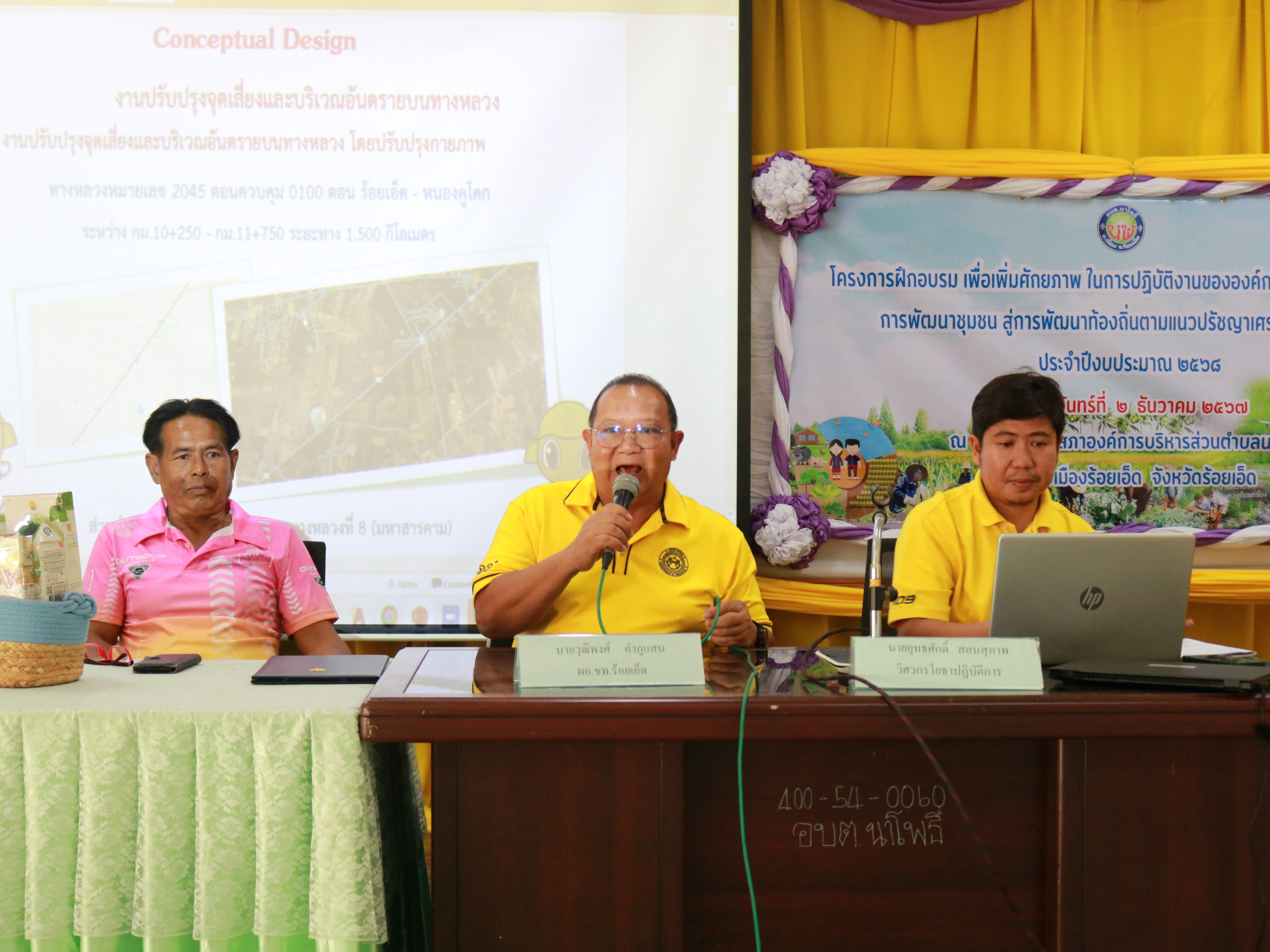 นายวุฒิพงศ์ คำภูแสน ผู้อำนวยการแขวงทางหลวงร้อยเอ็ด ,นายสถิต คำพิชิต รองผู้อำนวยการแขวงทางหลวงร้อยเอ็ด ฝ่ายปฏิบัติการ ,นางสาวศิวพร เหมือนสีเลา รองผู้อำนวยการแขวงทางหลวงร้อยเอ็ด ฝ่ายวิศวกรรม , นายยุทธศักดิ์ สอนสุภาพ วิศวกรโยธาปฏิบัติการ ,นายสุพรรณ ปากวิเศษ หัวหน้าหมวดทางหลวงจตุรพักตรพิมาน และเจ้าหน้าที่แขวงทางหลวงร้อยเอ็ด ได้ร่วมประชุมการมีส่วนร่วมของประชาชน เพื่อรับฟังความคิดเห็นของทุกภาคส่วน ในการดำเนินงานก่อสร้าง โครงการก่อสร้างปรับปรุงจุดเสี่ยงและบริเวณอันตรายบนทางหลวง ในทางหลวงหมายเลข 2045 ตอน ร้อยเอ็ด - หนองคูโคก ระหว่าง กม.10+250 - กม.11+750 โดยมีนายดุสิต คอนมะลา รองนายกองค์การบริหารส่วนตำบลนาโพธิ์ เป็นประธานในการประชุม ณ ห้องประชุมองค์การบริหารส่วนตำบลนาโพธิ์ ตำบลนาโพธิ์ อำเภอเมืองร้อยเอ็ด จังหวัดร้อยเอ็ด