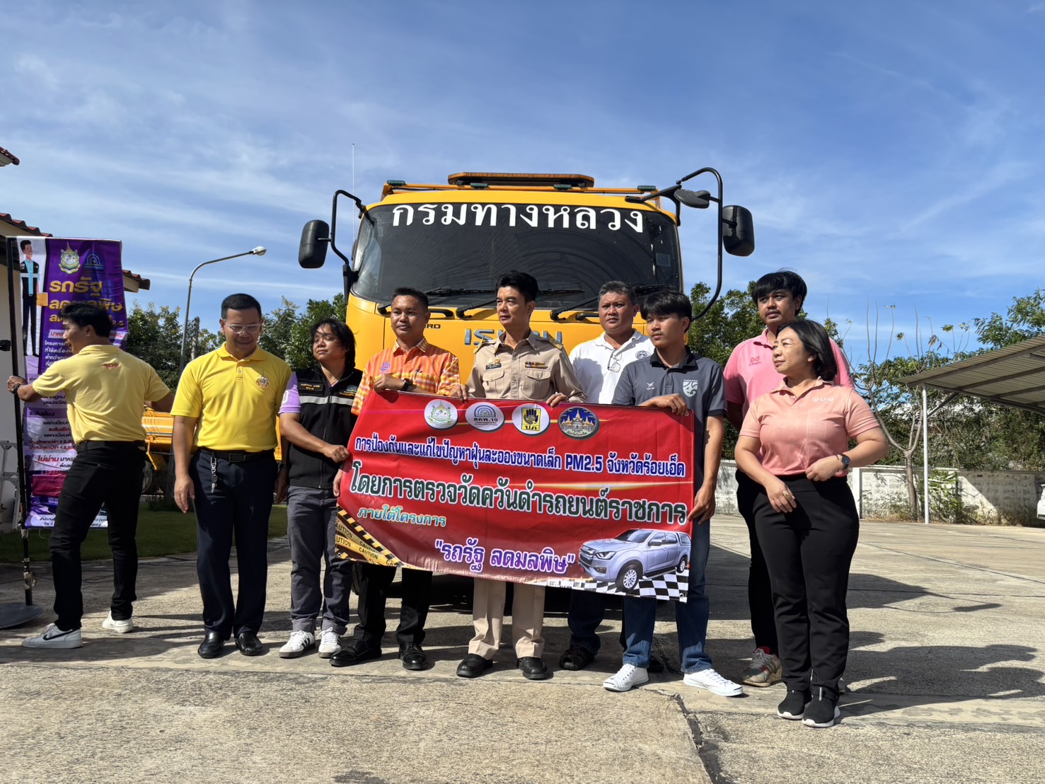 “เข้าร่วมโครงการ "รถรัฐ ลดมลพิษ" ตรวจวัดควันดำของเครื่องจักรยานพาหนะของแขวงทางหลวงร้อยเอ็ด เพื่อป้องกันและแก้ไขปัญหาฝุ่นละอองขนาดเล็ก PM 2.5”