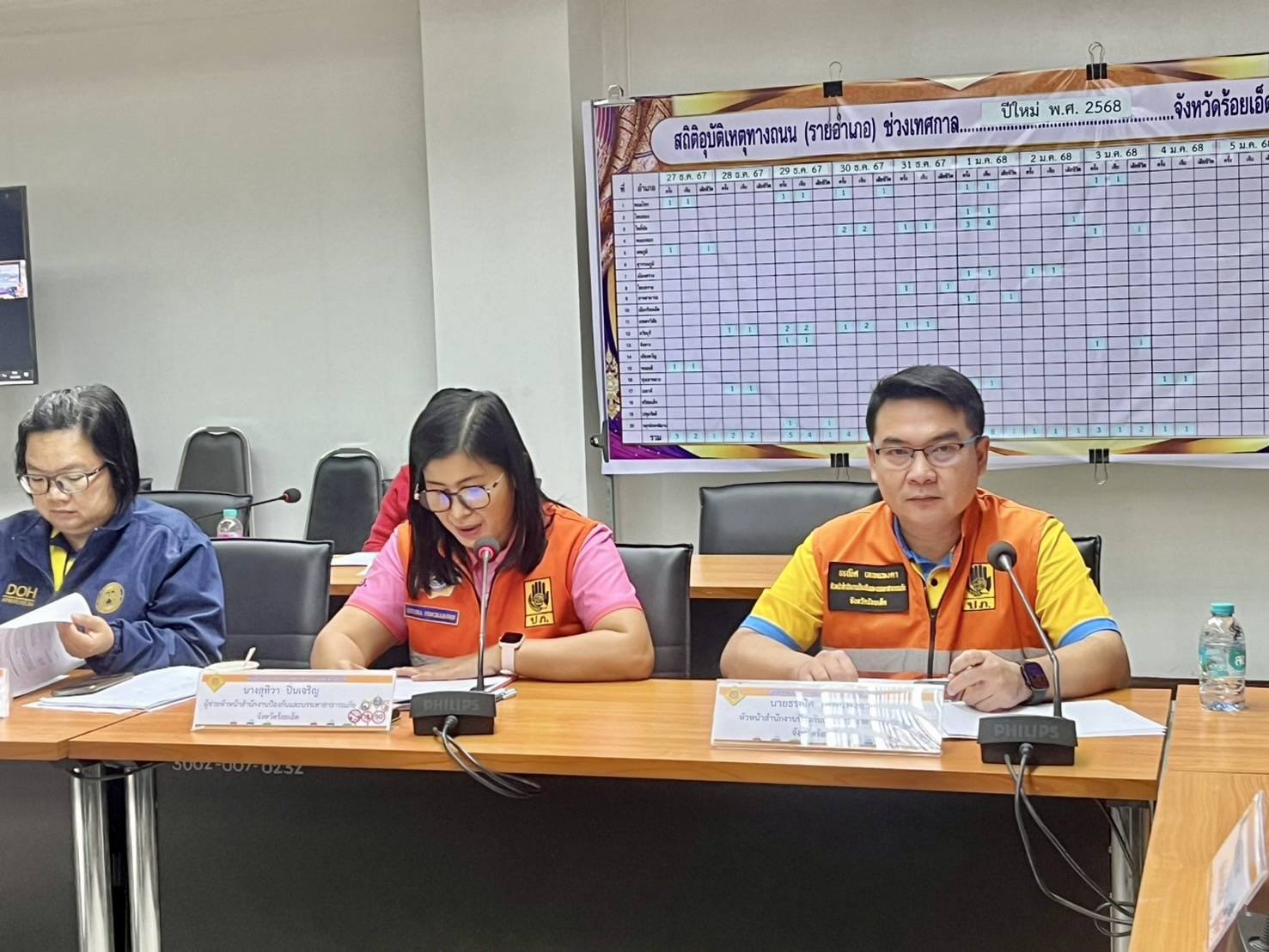 นายวุฒิพงศ์ คำภูแสน ผู้อำนวยการแขวงทางหลวงร้อยเอ็ด มอบหมายให้นางสาวศิวพร เหมือนสีเลา รองผู้อำนวยการแขวงทางหลวงร้อยเอ็ด ฝ่ายวิศวรรม เข้าร่วมประชุมและแถลงข่าวสรุปผลการดำเนินการป้องกันและลดอุบัติเหตุทางถนนช่วงเทศกาลปีใหม่ พ.ศ. 2568 ร่วมกับหัวหน้าส่วนราชการในจังหวัดร้อยเอ็ด โดยมีนายไพโรจน์ จิตจักร์ ปลัดจังหวัดร้อยเอ็ด เป็นประธานในการแถลงข่าวฯ และผู้แทนขนส่งจังหวัด เป็นผู้แถลงข่าวร่วม ณ ห้องประชุมพระเวสสันดร ชั้น 3 ศาลากลางจังหวัดร้อยเอ็ด