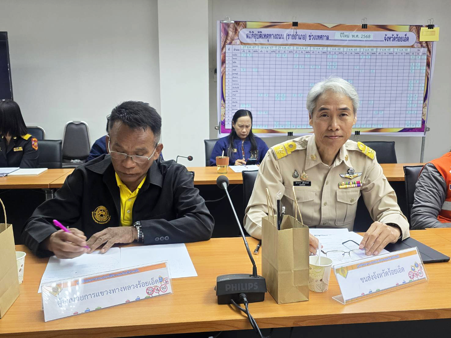 นายวุฒิพงศ์ คำภูแสน ผู้อำนวยการแขวงทางหลวงร้อยเอ็ด มอบหมายให้นายสถิต คำพิชิต รองผู้อำนวยการแขวงทางหลวงร้อยเอ็ด ฝ่ายปฏิบัติการ พร้อมด้วย นางสาวศิวพร เหมือนสีเลา รองผู้อำนวยการแขวงทางหลวงร้อยเอ็ด ฝ่ายวิศวรรม เข้าร่วมประชุมและแถลงข่าวสรุปผลการดำเนินการป้องกันและลดอุบัติเหตุทางถนนช่วงเทศกาลปีใหม่ พ.ศ. 2568 ร่วมกับหัวหน้าส่วนราชการในจังหวัดร้อยเอ็ด โดยมีนายชัชวาลย์ เบญจศิริวงศ์ ผู้ว่าราชการจังหวัดร้อยเอ็ด เป็นประธานในการแถลงข่าวฯ ณ ห้องประชุมพระเวสสันดร ชั้น 3 ศาลากลางจังหวัดร้อยเอ็ด
