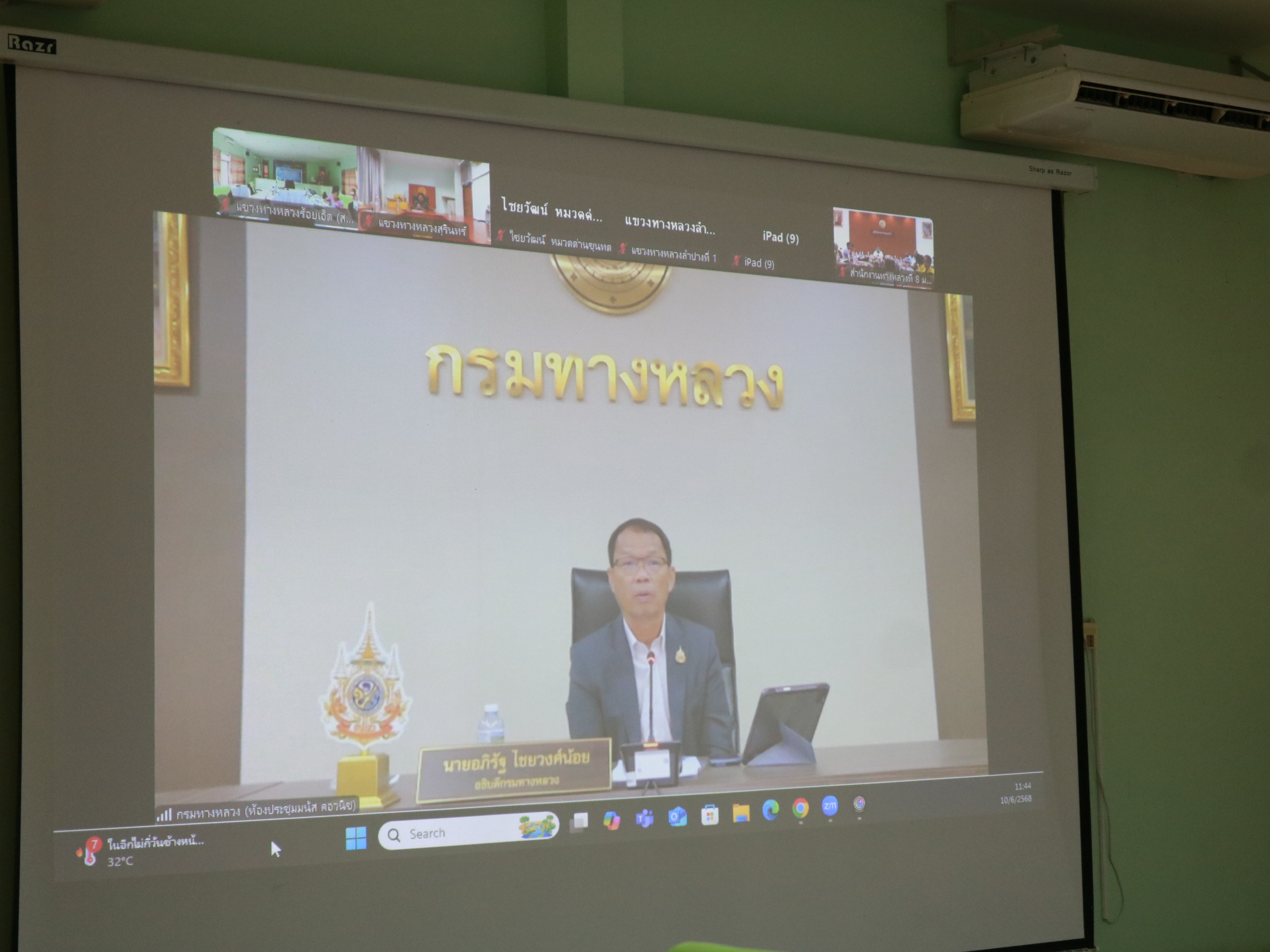 นายวุฒิพงศ์ คำภูแสน ผู้อำนวยการแขวงทางหลวงร้อยเอ็ด มอบหมายให้ นายสถิต คำพิชิต รองผู้อำนวยแขวงทางหลวงร้อยเอ็ด ฝ่ายปฏิบัติการ ,นางสาวศิวพร เหมือนสีเลา รองผู้อำนวยการแขวงทางหลวงร้อยเอ็ด ฝ่ายวิศวกรรม ,นางรฐา ชำนาญยงค์ รองผู้อำนวยการแขวงทางหลวงร้อยเอ็ด ฝ่ายบริหาร พร้อมเจ้าหน้าที่แขวงทางหลวงร้อยเอ็ด ได้เข้าร่วมประชุมผู้บริหารกรมทางหลวง ประจำเดือนมิถุนายน 2568 ครั้งที่ 6/2568 โดยมี นายอภิรัฐ ไชยวงศ์น้อย อธิบดีกรมทางหลวง เป็นประธานในการประชุม ณ ห้องประชุมมนัส คอวนิช กรมทางหลวง ผ่านสื่ออิเล็กทรอนิกส์แอปพลิเคชั่น Zoom Cloud Meeting ณ ห้องประชุมจุลละโพธิ แขวงทางหลวงร้อยเอ็ด