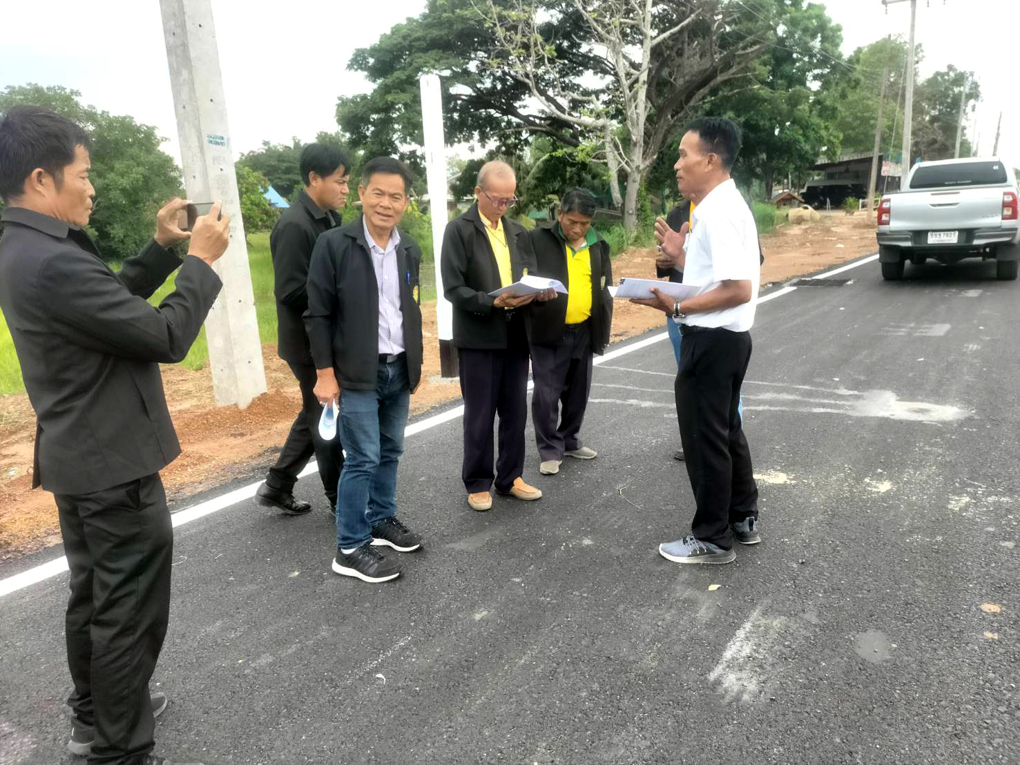 นายสถิต คำพิชิต รองผู้อำนวยการแขวงทางหลวงร้อยเอ็ด ฝ่ายปฏิบัติการ ให้การต้อนรับคณะกรรมการธรรมาภิบาลจังหวัดร้อยเอ็ด ลงพื้นที่สอดส่องโครงการตามแผนปฏิบัติราชการกลุ่มจังหวัดภาคตะวันออกเฉียงเหนือตอนกลาง ประจำปีงบประมาณ พ.ศ. 2568 โครงการพัฒนาโครงข่ายคมนาคมทางบกเชื่อมโยงกลุ่มจังหวัดและภูมิภาค กิจกรรมเพิ่มประสิทธิภาพทางหลวงหมายเลข 2044 ตอน หนองดง - โพนทอง ระหว่าง กม.42+800 - กม.44+198 ตำบลสระนกแก้ว อำเภอโพนทอง จังหวัดร้อยเอ็ด