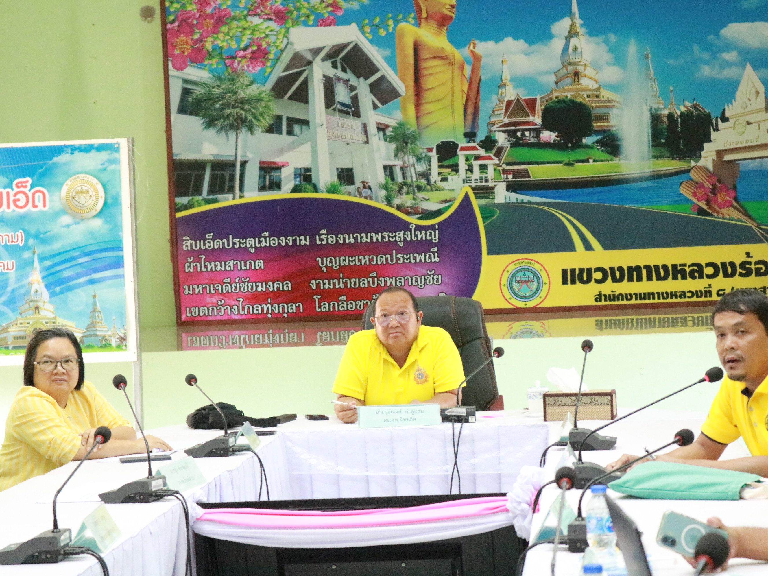นายวุฒิพงศ์ คำภูแสน ผู้อำนวยการแขวงทางหลวงร้อยเอ็ด พร้อมด้วย นายสถิต คำพิชิต รองผู้อำนวยการแขวงทางหลวงร้อยเอ็ด ฝ่ายปฏิบัติการ ,นางสาวศิวพร เหมือนสีเลา รองผู้อำนวยการแขวงทางหลวงร้อยเอ็ด ฝ่ายวิศวกรรม ,นางรฐา ชำนาญยงค์ รองผู้อำนวยการแขวงทางหลวงร้อยเอ็ด ฝ่ายบริหาร และคณะเจ้าหน้าที่แขวงทางหลวงร้อยเอ็ด ได้ร่วมประชุมประจำเดือนกันยายน 2568 เพื่อสรุปผลการเบิกจ่ายงบประมาณปี 2568 ,สรุปความก้าวหน้างานโครงการฯ ปี 2568 และสรุปผลการดำเนินงาน ปัญหาและอุปสรรคในการดำเนินงาน ณ ห้องประชุมจุลละโพธิ แขวงทางหลวงร้อยเอ็ด